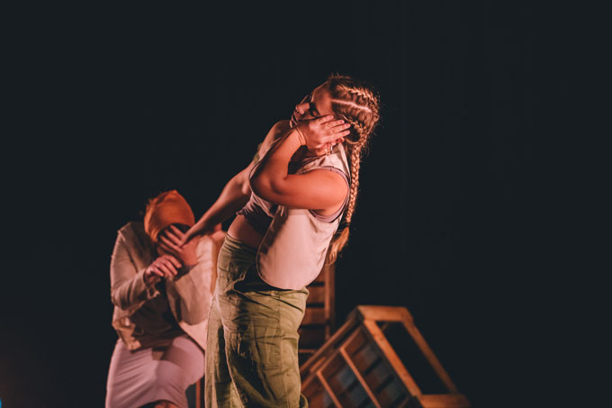 No nosso percurso temos uma mão cheia de criações colectivas! (risos) A escola onde nos conhecemos (Carolina e Ulima), a École Jacques Lecoq em Paris, potencia a ideia de um actor-criador, com ferramentas físicas e interpretativas que lhe permitem trabalhar em colaboração e não apenas ser dirigidos pela figura de um encenador ou director de actores. Claro que é processo com mais questionamentos e talvez mais demorado, porque são várias cabeças a pensar e a decidir em conjunto, mas o resultado é de uma entrega e generosidade inquestionáveis. Já para a Letícia foi a primeira co-criação… e podemos dizer que “primeiro estranha-se, depois entranha-se…!”.