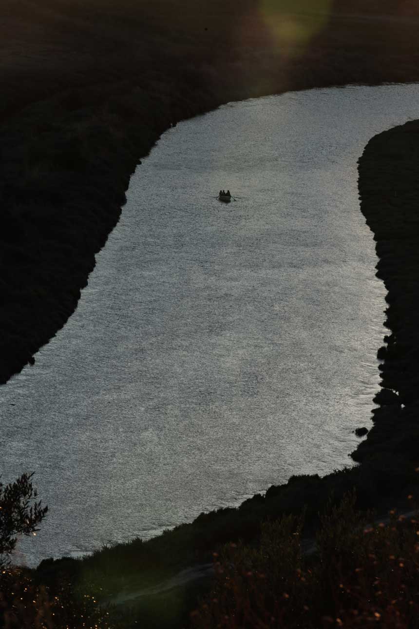 O meu avô tinha um barco velho guardado. A Catarina e eu restauramo-lo, arrancámos parte do fundo que estava podre, substituímos várias madeiras e protegemo-las com camadas de fibra para poder abarcar os actores e actrizes e, aguentar o tempo; a água, as cordas e os arrastões.