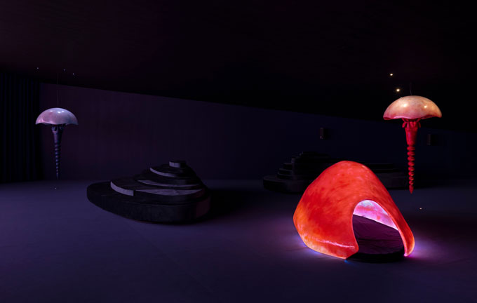 Numa grande tela, uma longa animação dá-nos a ver espécies encantadas e encantadoras. O negro, a luminescência; cores e tentáculos vão dançando. Tudo oscila, desliza. Dois grandes sofás que antes do toque se aparentam a sólidas rochas estratificadas, permitem que o corpo relaxe e descanse, e desfrute da faixa sonora para ir deslizando para esta realidade paralela, de onde são soprados feitiços. De quando em vez uma voz, muito baixa e incompreensível, acentua a sensação de que estamos a ser enfeitiçados ou de que, não sendo sobre nós aplicada, uma força maior e mais antiga se manifesta por ali.