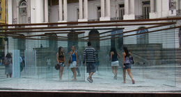 O LUGAR DA ARTE: O CASTELO, O LABIRINTO E A SOLEIRAJULIANA MORAES2013-08-12O labirinto translúcido causa estranheza e curiosidade nas pessoas que ali transitam diariamente. Fora dos museus e galerias, não é o espectador que vai ao encontro da obra, mas sim, o contrário. Neste movimento inverso, é a obra, com toda sua singularidade, que convoca quem quer que cruze com ela a experenciar os seus limites, a tocá-la e, para questionar o estatuto museológico das obras, a fazer uso dela. Ao longo do século XX, o cenário artístico ocidental foi atravessado por uma série de experiências que convocaram a Filosofia da Arte para novas prerrogativas a fim de entender a obra de arte e suas implicações para o nosso tempo. Neste sentido, proponho uma análise da obra Labirinto de Vidro do artista minimalista Robert Morris, instalada em meados de 2012 numa das praças mais movimentadas do Rio de Janeiro por ocasião do evento OIR (Outras Ideias para o Rio), uma bienal internacional de arte pública, para falar de temas como o lugar da arte na contemporaneidade, as instituições e o mercado das obras e os pressupostos da Estética enquanto uma disciplina destinada à meditação da arte. Desde sempre, a arte se constituiu como um dos modos possíveis do homem, enquanto um vivente que produz, realizar uma atividade no mundo. Para se compreender como nas diferentes épocas históricas este processo sofreu alterações, Giorgio Agamben, no seu primeiro livro intitulado O homem sem conteúdo, fornece um vasto manancial teórico para entender como se coloca a questão do destino da arte ocidental e do subsequente lugar da arte na contemporaneidade. Ao dialogar com algumas das correntes filosóficas mais importantes do século XX, Agamben nos põe frente a frente com a tarefa – que se mostra cada vez mais urgente – de entender o sentido do projeto estético ocidental. Neste contexto de quebra de paradigmas engendrado pela arte moderna e contemporânea, delineiam-se dois caminhos possíveis para a retomada do estatuto original da arte no contemporâneo: o primeiro no que diz respeito a um resgate do autêntico sentido da obra, há muito obscurecido; e outro cujo presságio é um esgotamento de qualquer possibilidade de compreensão da mesma, abismo de onde só uma virada radical poderia nos redimir. Ao enveredar pela primeira via, vemos eclodir as mais inovadoras formas de arte, dentre as quais Labirinto de Vidro é certamente um dos melhores exemplares. Neste objeto, se desdobra, efetivamente, o modo como o valor de fruição estética das obras de arte se retrai para ceder lugar a um outro tipo de compreensão, a qual o homem de gosto, que passeia e julga no interior dos museus, ainda não conseguiu assimilar. O que esta obra nos devolve é a possibilidade latente de se recuperar um mundo. Mundo não é simplesmente um espaço dado, mas uma cadeia significante que articula as nossas compreensões mais essenciais. Questiona-se, aceita-se ou rejeita-se o que se mostra mais decisivo para o homem. A obra de arte abre um mundo. Ao contrário, na aparente organização dos museus e galerias, está em voga a perda de um Mundo. O que se observa no agrupamento de objetos artísticos não é a abertura propiciada pela obra à experiência, disposta numa trama singular de espaço e de tempo, mas sim a completa perda de transmissibilidade, em que o homem, cindido num tempo sem passado ou futuro, observa um presente em ruínas. Este esfacelamento do processo de transmissão ressoa na articulação entre arte e capitalismo que vai se delineando a partir da modernidade. Assim, a relação entre o espectador e a obra passa a ser norteada por uma impossibilidade de uso e pelo consumo que acaba por destruir a própria coisa. E, por esse motivo, as obras expostas à visitação nos museus – não por acaso, tendo surgido no mesmo momento histórico que o capitalismo, ao fim da Idade Média − deixam de ser obras de arte, mantendo com ela apenas uma relação mediada por uma exibição que as divide de si mesmas e por um ato de consumo que só se consolida no momento de seu desaparecimento. Como adverte o próprio Agamben no seu primeiro livro, o museu não quer dizer apenas um espaço físico determinado, como os destinados à exposição de obras de arte, mas se refere a uma dimensão caracterizada por uma impossibilidade de usar e pelo consumo. Apesar disso, não deixa de ser notável o facto de, a partir da modernidade e do advento do capitalismo, estas construções designarem, de forma específica, o lugar reservado à arte. Assim, a pergunta que deve ser colocada de imediato é: qual deve ser então o lugar da arte? Em que espaço as obras poderiam pertencer a um mundo? Como vimos até aqui, a relação com a tradição e com a transmissibilidade de uma experiência propiciada pela obra de arte dava ao homem um regime de sentido e de crenças que nela encontrava-se fundamentado. A dissolução irrevogável desse ato transmissor é posta explicitamente por Heidegger nesta sentença: “a perda e a destruição do mundo não se podem mais reconstituir” [1]. Neste sentido, pensar o estado da arte atual é especular a partir de uma precariedade “entre o que não é mais e o que não é ainda” [2], entre uma impossibilidade de se transmitir algo e uma conciliação com o tempo presente. A assunção de uma perda e o pisar num solo desértico de onde tudo pode brotar são faces da mesma questão com a qual a arte contemporânea deve travar seu embate. Deste modo, ao abraçar esta responsabilidade, exercemos a nossa contemporaneidade. Neste corpo a corpo com o próprio tempo, destaco a obra Labirinto de Vidro, de Robert Morris, já citada anteriormente. O escultor americano, ao ser convidado pelo evento OIR, escolheu a movimentada praça Cinelândia para construção da sua obra. Instalada no período de 7 de setembro a 2 novembro de 2012, Labirinto de Vidro, cuja importância para a arte contemporânea