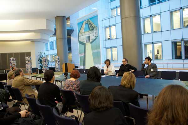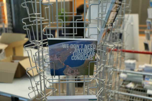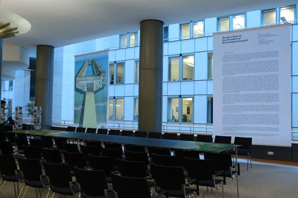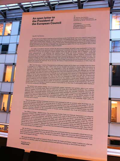 PROJECT HERáCLES, QUANDO ARTE E POLíTICA SE ENCONTRAM NO PARLAMENTO EUROPEUANA CATARINO2014-06-28Em Maio de 2011, a revista italiana Domus, abriu um concurso de ideias aos seus leitores tendo por título “Projecto Herácles, uma Ponte Euro-Africana”. O projecto foi concebido a partir de uma troca de emails entre dois filósofos belgas, Lieven de Cauter e Dieter Lesage, e publicado em 2005 e na revista Hunch, (Instituto Berlage Roterdão). Aquilo que na troca de correspondência se discute é a ausência de qualquer espécie de infra-estrutura perene que faça a ligação entre as duas margens do mar Mediterrâneo. Sabendo à partida da situação delicada que se coloca em tal empreitada, e optando por um certo olhar irónico, propõem que a ponte seja pensada para ligar Gibraltar (na margem norte) e Ceuta (na margem sul). Assim, na verdade, estaríamos sempre a falar de solo europeu, quer de um lado ou do outro, levantando eles a hipótese de que talvez desta forma, a ponte possa ser construída. A ironia é evidente e mostra-se em várias formas: não só existe conflito em ambas as cidades por serem na realidade enclaves em solo de outro país (num caso Espanha, no outro Marrocos), como se torna também evidente que a existência de tal infra-estrutura será sempre vista como uma porta de entrada em ambos os continentes. A inexistência de vontade política em que os dois continentes se unam por uma ponte é também evidente tanto mais quando se pensa em programas europeus como o Frontex ou a delimitação do território que representa o tratado de Schengen. Pensar numa ponte representa antes de mais desafiar aquilo que comummente se designa por “Europa fortaleza”. Uma Europa que se fecha no seu território acreditando ainda que pode simplesmente controlar fluxos migratórios mas, mais ainda, que controla ainda uma relação com o outro (o seu exterior), assumindo que alguma vez o fez por completo. Como disse, a equipa da revista Domus, à época liderada por Joseph Grima, partindo deste texto em forma de cartas, lança um concurso de ideias aos seus leitores e pede-lhes apenas que imaginem uma ponte. Ou melhor, que jogando com a palavra ponte nos seus múltiplos significados e implicações apresentassem ideias de como navegar pelas águas que separam aquelas duas cidades. A escolha prende-se também por ser ali que o ponto de contacto entre os dois continentes é mais estreito, variando de 14 a 20 kms. Ou seja, pouco ou pouco mais do que ponte Vasco da Gama que atravessa o rio Tejo ligando Lisboa a Alcochete. Mas voltando ao concurso de ideias: Como se poderá materializar esta ponte? Importava pouco, ou mesmo nada, que as propostas representassem ideias fazíveis ou que pelo contrário escolhessem navegar por um universo mais especulativo. Resultado, por entre as 200 propostas apresentadas, e todas elas consideradas, existe um pouco de tudo: exercícios especulativos onde o conceito de ponte enquanto infra-estrutura material é o ponto de partida e chega para a resposta, mas também casos onde a ponte na realidade é materializada através de uma simples encenação como é o caso da proposta que apresenta um simples estendal de roupa. Peças de roupa indistintas, neutras quanto a qualquer possível origem do seu dono. O resultado deste concurso é publicado no número Julho/Agosto de 2011 da revista, acompanhado por uma carta escrita por Joseph Grima endereçada a Herman Von Rompuy, Presidente do Conselho Europeu, desafiando-o a entrar neste debate. Desafiando-o, em última análise, a partilhar o seu ponto de vista, e do orgão do qual é presidente, sobre a necessidade ou não desta ponte, deste diálogo, da posição que a Europa deverá assumir ou não neste debate. Ao que se sabe resposta foi um muito sonoro silêncio da outra parte. Em Julho do mesmo ano, pela primeira vez, o resultado do concurso é apresentado numa exposição em Londres na galeria The Gopher Hole. No Parlamento Europeu, no grupo parlamentar do Bloco de Esquerda, em finais de 2011, começámos a pensar num possível convite à equipa da revista para que o projecto seja ali exposto. Muito se passou, incluindo na equipa, entre o momento em que primeiro se considerou essa hipótese e o dia em que exposição inaugurou. Foram quase 2 anos, na verdade, até que, em Dezembro do ano passado, depois de vários meses de preparação, a exposição inaugura num dos espaços previstos dentro edifício do Parlamento Europeu. É sobretudo desses meses de preparação que pretendo falar. O processo de diálogo dá-se entre três partes que testam mutuamente a sua plasticidade e adaptabilidade a cada passo. Foram elas: a equipa da revista Domus, a equipa da delegação do Bloco de Esquerda (onde me incluía) e os serviços do Parlamento Europeu (da segurança aos serviços responsáveis pela calendarização das exposições, alocução de espaços e responsável pelo material expositivo que eventualmente poderíamos usar). Antes de mais há que saber quando e onde. A resposta é dada pelo serviço do parlamento e convém que o pedido seja feito com alguns meses de antecedência. No caso, a resposta veio em Junho de 2013 para a exposição que planeámos para Dezembro. É-nos dado um espaço e a semana do calendário disponível: 16 a 20 de Dezembro. No Parlamento Europeu é sempre assim, as exposições só podem durar no máximo 5 dias (de 2a a 6a) incluindo montagem e desmontagem. A meio de Julho tudo pára para férias e na verdade já só voltamos ao assunto em Setembro. A partir daqui tudo começa realmente e é uma corrida contra o tempo. A exposição será composta de dois painéis (um com a imagem de capa da Domus dedicada ao projecto e um outro com a carta endereçado ao presidente do Conselho Europeu) e vários expositores onde serão colocados os postais, em vários formatos, representando as 200 propostas/respostas. Numa primeira fase começamos (equipa do Bloco de Esquerda e da revista Domus) a tr