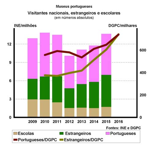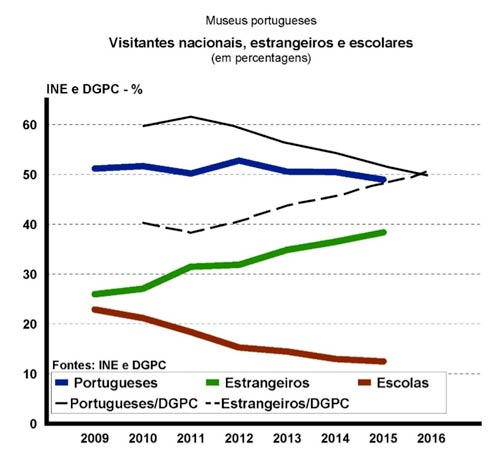 Perguntava-me no texto anterior se existem medidas no plano restrito das políticas museológicas que possam combater o elitismo social que continua a existir, e feitas as devidas correções resultantes da massificação da educação, talvez se tenha acentuado, no universo dos visitantes dos museus de arte, mormente os mais tradicionais, como são os de estatuto nacional. Penso que existem, de facto: ampliação das margens de gratuitidade, reconsideração das programações (e planeamento de oferta expositiva conjunta, nomeadamente nos grandes centros urbanos, permitindo a apresentação em Portugal de exposições internacionais), aprofundamento dos estudos de públicos, para melhor os caracterizar e chegar aos rebarbativamente chamados “não-públicos”. A primeira destas medidas é certamente a que reveste maior intencionalidade política, como se viu recentemente entre nós. Pela chamada “porta do cavalo”, ou seja, em sede de orçamento de Estado para 2017, foi aprovada mais uma reversão das políticas do Governo anterior, retomando-se a gratuitidade dos museus públicos em todos os domingos e dias feriados, até às 14 horas. Curiosamente, PSD e CDS votaram a favor desta proposta do PCP, que o BE acompanhou, ficando o PS isolado na sua rejeição. Parece que esta medida causa engulhos, uns de natureza “técnica”, outros de índole “filosófica” (termo usado pudicamente para não dizer ideológica). Quanto aos primeiros, dizem-nos que talvez a gratuitidade tenha de ser alargada a todos os cidadãos da EU – no que terá como consequência uma significativa perda de receita, somada a um porventura excessiva carga de visitantes em certos locais. Julgo que nenhuma destas objeções é verdadeiramente atendível: a receita perdida não é assim tão relevante e poderia ser compensada de outras formas (lojas, serviços adicionais pagos, etc… e, claro, maiores transferência do OE para os museus); o excesso de visitas, que somente terá significado em reduzido número de locais, pelo estabelecimento de limites e marcação prévia, como já acontece em muitos monumentos e museus no estrangeiro. Quanto aos segundos, diz-se que o pagamento é condição de valorização das coisas (“só se dá valor ao que se paga”) e sobretudo seria muito ingénuo pensar que só por tornar as coisas mais baratas, mesmo gratuitas, elas passam a ser melhor apreciadas. Discordo em absoluto da primeira destas objecções, que releva basicamente de ideologia liberal ultra-mercantilista (também as bibliotecas não são pagas e nem por isso lhes atribuímos menos valor). Mas considero pertinente a segunda, aliás como já o faziam Bourdieu e Derbal, depois de defenderem maiores incentivos à visita dos museus: “Nada seria mais ingénuo, em todo o caso, do que esperar que da mera redução dos preços de entrada um crescimento da frequentação por parte de classes populares.” Parece-me, pois, que para além da gratuitidade universal em certos períodos e porventura a somente alguns espaços (exposições permanentes, por exemplo) deveria sobretudo existir uma política esclarecida de promoção da visita pelos portugueses, através de medidas mais estruturantes, na escolas e na vida em geral, políticas essas servidas por instrumentos simples e eficazes, para o que bastaria talvez apenas pensar estas matérias “fora da caixa” e ouvir quem “anda no terreno”. Por exemplo: o “cartão + cultura”, algo enigmático e potencialmente inútil que o programa deste governo contempla, poderia realmente ser tornado vantajoso (e não mera promoção de entidades patronais e agentes do mercado das chamadas “indústrias culturais”) se fosse usado para estabelecer discriminações positivas em função do IRS (desde a gratuitidade total até reduções variáveis de preços), sendo atribuído sob pedido dos cidadãos em repartições de finanças e/ou autarquias locais. Não haveria aqui conflito com a legislação europeia porque não se trataria de medida universal; e alcançar-se-ia o principal objetivo de democratização que realmente se torna absolutamente imperioso e urgente. Com efeito, os dados do INE sobre estatísticas culturais relativas a 2015 (vejam os três gráficos em anexo), publicados no final do ano, acrescidos dos que a DGPC divulgou no início de Janeiro, referentes a 2016, vieram confirmar, no curto prazo, o que os elementos do longo prazo referidos no meu anterior texto já tinham amplamente demonstrado. Como já pensávamos, e mesmo para o conjunto de todos os museus, ou seja, incluindo a grande maioria dos que se relacionam com comunidades locais e por isso resistem melhor à “crise”, as percentagens de visitantes nacionais têm vindo a decrescer, com o contraponto do aumento dos estrangeiros, realidade que surge extremada no subconjunto dos “grandes museus”. Neste caso, em 2016 pela primeira vez desde que há estatísticas, os museus nacionais foram visitados por mais estrangeiros do que portugueses – ocorrência que deveria fazer soar todas as campainhas e não ser quase ignorada, submergida pelo clima de “sempre em festa” em que as chamadas chefias se comprazem no ritual de mostrarem bons desempenhos. A isto acresce a situação verdadeiramente catastrófica ocorrida com os públicos escolares: segundo os dados do INE (infelizmente a DGPC deixou se sentir-se obrigada a fornecer estatísticas detalhadas e por isso este valor não é conhecido), uma queda percentual a pique, apenas com ligeira recuperação em valores absolutos nos dois últimos anos. É certo que existe alguma retoma de visitantes portugueses, mesmo escolares, nos últimos anos – mais ainda longe, quer em valores absolutos, quer sobretudo quanto à estrutura de visitantes, medida em percentagens, do que apesar de tudo existia “antes da crise” – sendo que esta era já de si altamente desapontadora, pelo elitismo que representava. E claro que a ampliação das margens d