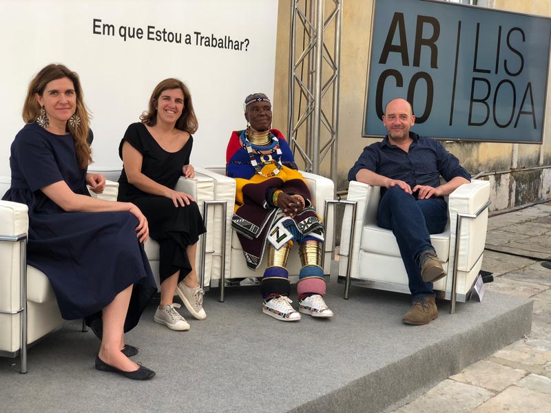 Alexandra Cadaval, directora ÉvoraAfrica; Filipa Oliveira, curadora ‘Em que estou a trabalhar’; Esther Mahlangu, Artista; Philippe Boutté, curador da exposição