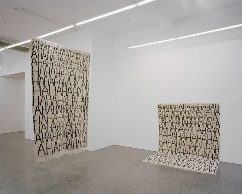 J.M. Há muitas camadas acerca da criação das tapeçarias... é um projeto com comunidades berberes e que surgiu de uma forma inesperada, revelando-se uma grande experiência. Para começar, posso dizer-te que eu tinha um tapete na minha habitação de quando era criança e era nele que eu desenhava, lia, estudava... Eu adorava aquele tapete, era como uma ilha dentro da casa - um espaço reservado para a criatividade, para a imaginação - um espaço para onde me podia atirar, brincar ou dormir.