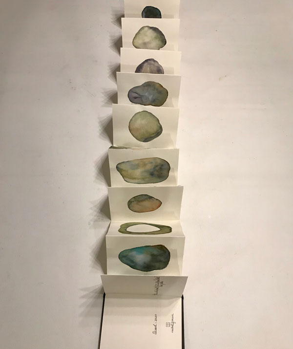 É assim que, em tempos e em contextos de produção diferentes, as artes visuais nunca deixaram de problematizar e sensibilizar, incitando à mudança de mentalidades e comportamentos. No caso de SEED/SEMENTE de Isabel Garcia, as suas pinturas e pequenas esculturas despertam, pela força das imagens, empatia e emoção. A ideia de «Seed» que opera como matriz no processo de trabalho da artista é um convite urgente a pensar a negociação entre natureza e ambiente. Os belíssimos objectos em bronze patinado são, simultaneamente, pequenos cofres e sementes. Guardam, protegem, multiplicam-se e serviram à artista para, por decalque dos seus perfis, construir muitos dos desenhos aguarelados (que não são agora apresentados), bem como as figuras das suas «Floating seeds», pinturas que foi desenvolvendo durante o confinamento e cujas imagens me foi enviando.