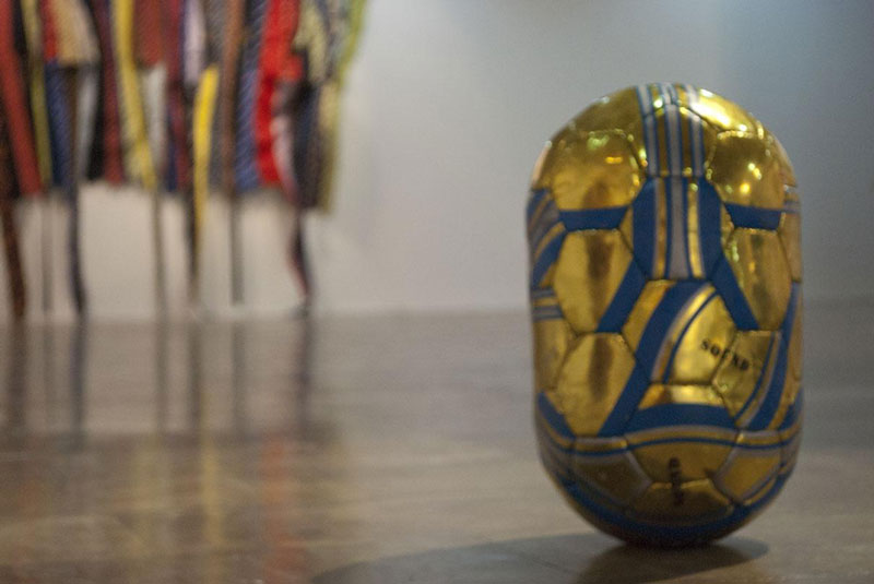 O Trabalho de Felipe Barbosa Como já anunciei desde o início, me deterei aos trabalhos com bolas feitos por Felipe. O seu procedimento durante algum tempo parece ter sido o de persistir no uso dos materiais das bolas de futebol. Mas por quê elas? O Brasil tem como, possivelmente, sua maior movimentação cultural tudo o que gira em torno dele, o futebol - no centro, ela, a bola. A bola é vista em ruas mais vazias das periferias das grandes cidades, rolando enquanto carros não passam, são vistas uma vez por semana por maridos que recebem concessão das mulheres para jogar com os amigos (junto à cervejinha, é claro). Em suma, o futebol com muita facilidade pode ser visto como elemento de maior movimentação da cultura brasileira (pra não me soltar demais no balançado da bola e dizer “brazuca”). Quando esse material é trabalhado por Barbosa, uma linguagem estrangeira é inseminada, é articulada, é estratificada junto ao nosso objecto mágico. Passa a ter muitas formas, ocupa alguns lugares que poucos frequentam, mas não rola num campinho de terra batida nas veredas dos sertões brasileiros, onde elas seriam vistas com estranheza. Felipe, por seu trabalho, desvela essa diferença, assim como Macunaíma revela oposições entre o cenário europeu e o brasileiro. Farei agora mesmo uma pergunta com cara de fim de texto (mas não será): será que Felipe faz a mesma escolha que Macunaíma? Voltemos ao desenvolvimento do texto. Entenderemos o processo utilizado por Felipe como uma transcriação da bola de futebol (língua, ou dizendo melhor, linguagem nacional) para um objeto de arte. Como estávamos dizendo quando falamos sobre o enfoque no Plano da Expressão: “A arte pressupõe a essência física e espiritual do homem, não a sua atenção.” Ao “distrair” a atenção do tradutor do “significado” (que é assim desvalorizado do valor de culto que lhe tributa a teoria tradicional da tradução servil), Benjamin muda a ênfase do processo translatício para o “modo de formar”, o “modo de intencionar” essencial à obra. Nesse sentido, a “recepção distraída”, “disseminada”, do tradutor quanto ao significado prefigura aquela do espectador de cinema, enquanto “examinador distraído.” Por outro lado, o efeito de choque por meio do qual o filme propicia essa modalidade de recepção, encontra, num outro nível, um paralelo no tratamento “chocante” que o tradutor benjaminiano deve dar à sua língua." Sendo assim, só temos mais algumas coisas a dizer: o que teria sido de Macunaíma se escolhesse uma das filhas indígenas ao invés da portuguesa? O que teria sido da obra de arte se ela fosse jogada em um campinho de barro em um bairro suburbano de São Paulo? Por que não piratear os parangolés e fazer trios-eléctricos pelas ruas, micaretas espalhando puro verbivocovisual Oiticica. Veremos os rumos e as interacções entre expressão, ou seja, fluxos e devires, e estratificações aprisionantes, com suas visíveis instituições mutiladoras de nossos corpos em órgãos, na obra de Felipe Barbosa - que sim, pretendo acompanhar de perto e não pode deixar de empolgar ou causar alguma inquietação em quem a depare.