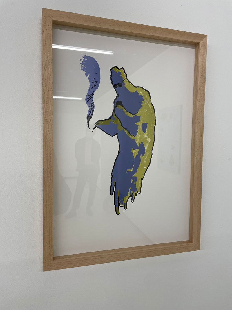 Catarina Real - Talvez possam começar por referir algumas coisas relevantes quanto à vossa prática e percursos. [Inicia-se a conversa sem SM] Carlos Gaspar - Já desenhava quando tinha cinco anos... [riso] CR - Mas há sempre uma narrativa. CG - Sim, sempre uma tentativa de narrativa, mesmo nos mais geométricos, que podem ser vistos como abstractos. Nalguns casos torna-se mais concreta e visível e noutros deixo-a para mim, sem a desvendar. Essa narrativa é o que me leva à construção da imagem. O que as pessoas compreendem depende delas, não faço questão de o controlar. CR- Revês-te na figura do pintor? CG - Sim, de forma um pouco arrogante até: estou só a pintar, não quero mais saber de nada. Estou a criar imagens e é isso que eu gosto. Não me preocupo com o que as pessoas percebem ou não, tenho só prazer ao fazê-las. Na residência que fizemos juntos não tinha um caminho definido, fui de espírito aberto à procura do que fazer. Levei várias hipóteses, esboços que poderiam ter outro lugar no meu trabalho e a partir daí escolhi um desenho e esse desenho criou um caminho. Ou melhor, abriu uma porta para um caminho, e dessa porta vieram os fantasmas. CR - Queres falar um pouco mais dos fantasmas? Pedro O Novo - Eu também estou a fazer fantasmas! CG - O fantasma para mim é um personagem que vem de há algum tempo, mas não é aquele fantasma que ficou encalhado entre a vida e a morte e tem coisas para resolver. É um fantasma mais contemporâneo, mais presente. Tem a ver com a ideia do ser virtual, que está por aí, por cá, tem influência, assusta, vinga... Que faz essas coisas todas e existe mas não o vemos. Nunca sabemos quem é, quem é a pessoa por detrás da máscara, mas ela está lá. Existe e faz coisas! PON - O nome que escolhi é Pedro O Novo e é por aí que devo começar a apresentar-me. Pedro O Novo está ligado à figura do Peter Pan, com a vontade de querer ser jovem para sempre e de não querer crescer. Posso dizer que tenho duas grandes linhas de trabalho; o meu percurso cruza-se com o hip hop, o rap, o graffiti, e continuo a fazer trabalho nesse sentido. Interesso-me agora sobretudo pelas letras de rap. Muitas das que escrevi em cadernos, agora também apaguei para se tornarem fantasmas. Apaguei mas elas ainda lá estão, tornaram-se uma coisa fantasmagórica. CR - E porquê a necessidade de ter esse cenário? PON - Acho que tenho um certo horror ao vazio. A paisagem sem personagem está vazia, e a personagem sem paisagem está num vazio. O meu trabalho, tal como o do [Carlos] Gaspar, é muito autobiográfico. São metáforas de cenas com que me identifico, daquilo que vou lendo e de novas referências, que romantizo. CR - Em criança qual era a tua relação com o estares sozinho? PON - Não sei bem, estava sempre a fazer desenhos. CR - E vês-te na figura do pintor? PON - Sim, a pintura é uma obsessão. CR - E como se dá a passagem para outra técnica como, no caso desta residência, a serigrafia e gravura? PON - Talvez tanto eu como o Gaspar sejamos, antes de pintores, sobretudo desenhadores. CG - Começa tudo no desenho. E só depois vai para a pintura. PON - Tu ainda tens alguma pintura abstracta... CG - Sabes que não considero as minhas pinturas sem objectos, abstractas. Na minha cabeça, elas estão a representar uma coisa qualquer. Uma relação entre objectos, ou até na ligação com a música... Vejo-as como figurativas. CR - E porque não ganham no território do desenho? CG - Para mim o desenho é uma ferramenta de pensamento. Não é tanto uma forma de expressão, é mais uma forma de sedimentar as ideias e começar a pensar certa imagem. PON - Comigo também o desenho serve para registar imagens e ideias que me surgem. Lido com ele como um registo e não como um fim. CR - E foi assim que abordaram a gravura e a serigrafia; com um início no desenho que passa para uma outra fase? PON - Sim. Tu não, Catarina. Eu e o Gaspar esquematizamos as ideias através do desenho. CG - No meu caso não foi um processo muito experimental. Acabou por ser um exercício linear de usar a técnica da melhor maneira possível. CR - Como um substituto da pintura? CG - Não da mesma maneira. Quando chego à pintura é o tal espaço da experimentação. Tenho as ideias e as imagens na cabeça, mas há espaço para o erro e para outras coisas aparecerem. Cores, texturas... PON - Também eu partilho dessa relação de experimentação com a pintura. No caso da serigrafia, houve um processo de experimentação de cor, para que todas as impressões dos tijolos, por exemplo, fossem diferentes cromaticamente e com espaço para o acaso. Foi experimental a relação com a serigrafia, mas não na gravura. Foi primeiro o desenho e depois monotipias... Colori as gravuras. CR - O que acham que esta experiência pode trazer ao trabalho que farão a partir de agora? PON - As notas falsas que imprimi e os muros falsos feitos a partir das impressões dos tijolos... Estou a gostar de fazer coisas falsas. Queria agora fazer uma série a partir disso. Antes de querer ser pintor queria ser rapper e fazer graffiti. Tinha muitas letras escritas à mão e agora apaguei com corrector e parecem desenhos abstractos. Estou a gostar de fazer limpeza, sem ser para deitar fora. Voltar ao passado. Pensando bem, talvez me devesse chamar Pedro De Novo. Também apaguei diários gráficos, com tags e projectos para graffitis. Em vez de deitar fora, apaguei-os. E isso vai abrir possibilidades para outras coisas. CR - São as tuas primeiras abstracções. PON - Talvez, e em desenho. CR - E tu, Gaspar, continuações? CG - Não sei se haverá continuação. Os fantasmas vão aparecendo de vez em quando, mas não os vejo como uma série. PON - Catarina, fala também do teu trabalho connosco. CR - Em cada uma das semanas de trabalhos abriram-se caminhos diferentes para mim e não acho que vão acabar tão cedo. Tenho processos longos, entre o começar e o chegarem a um qualquer momento 