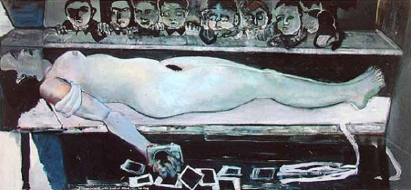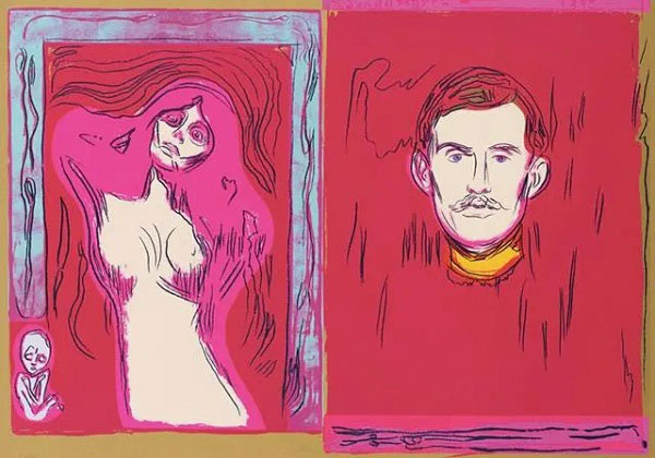 Na parte consagrada a Munch, metade das obras são quadros posteriores à sua viragem de 1908, momento onde, após a sua passagem por uma clínica psiquiátrica para "tratar os seus nervos", evoluiu para um estilo e temas diferentes: ainda que a maioria dos críticos (e dos amadores) se interessa apenas pelas telas mais trágicas e expressionistas do período 1890-1908, e negligencia, em alguns casos despreza, os últimos 36 anos do seu trabalho, a escolha de colocar aqui a ênfase sobre estas paisagens, estes trabalhadores, estes camponeses, nesta pintura mais colorida, mais fluida, que caracteriza este período, é extremamente sensata. Para o primeiro período (1895-1907), metade (16 em 30) das obras aqui apresentadas são gravuras, principalmente sobre madeira, um suporte no qual Munch se destacou e inovou; se algumas das telas deste primeiro período são bem conhecidas (O Beijo, Madona, A Criança Doente, Ciúmes), outras são menos como a Chuva de Outono de 1892. As obras não são acompanhadas de uma nota individual, só podemos lamentar a ausência de contexto. Os temas principais que sobressaem aqui, e que são os que inspiraram os artistas contemporâneos, estão simultaneamente associados ao assunto (as emoções, as angústias, o amor, o desejo e a morte, mas também a natureza) e à execução das obras (inventividade, criatividade, trabalho sobre a gravura, pintura ténue, deixando aparecer a tela). Se quiser saber mais sobre Munch, este provavelmente não é o livro mais adequado (nem a exposição o era), mas não é esse o seu propósito. Cada um dos artistas contemporâneos apresentados aqui foi influenciado pelos temas e pelo estilo de Munch em graus diversos. A influência mais formal diz respeito certamente a Jasper Johns e Andy Warhol. Johns parte de um motivo num dos últimos autorretratos de Munch (1940-43) onde ele se representa velho, de uma rigidez quase cadavérica, entre um pêndulo sem ponteiro e a sua cama, esperando a morte. Johns, recusando todo o pathos, desdobra, multiplica e recolora o padrão geométrico branco, vermelho e bronze da colcha da cama. Separando-se da leitura habitual que privilegia emoção e tragédia, ele presta homenagem ao talento do pintor, à sua composição e, sobretudo, ao flirt incerto com a abstração que Munch, pintor figurativo mas experimental, manteve toda a sua vida. Andy Warhol foi fascinado pelas gravuras sobre madeira de Munch, pela sua capacidade para compor e montar blocos coloridos, pela forma como a própria matéria da madeira aparece na gravura, onde os veios e os nós da madeira se tornam as linhas do desenho, e pelo seu interesse pelo múltiplo. Warhol desenvolveu então em serigrafia quatro das grandes gravuras emblemáticas de Munch: Madonna, Eva Mudocci com Broche, O Grito e o autorretrato com braço de esqueleto. Essa escolha não é evidentemente inocente: uma mulher ideal durante o amor, uma mulher real, desejada, amada mas (mais ou menos) inatingível (Eva Mudocci era lésbica), uma angústia absoluta, e o artista sério e sereno, já marcado pela morte. Reinterpretando estes ícones, conservando as suas linhas mas transpondo-as para um outro suporte, transformando-as em outras cores, Warhol parece devolver-lhes um novo vigor. O que mais interessou a Peter Doig, ao que parece, são as paisagens de Munch, a métrica vertical das árvores e a luz lunar que as banha: aí também uma inspiração bastante formal, mas que vai a par com a dimensão meditativa, silenciosa, melancólica dessas paisagens. Isso é tanto mais verdade quando a paisagem está quase vazia, despovoada, à excepção de uma personagem solitária e desamparada, como em As Cinzas de Munch (que não estava na exposição) onde, ao lado do homem abatido após o amor, a mulher exprime o seu desespero ambíguo numa pose semelhante. A influência formal sobre Georg Baselitz é menos evidente, mas ele recupera à sua maneira alguns dos autorretratos de Munch, sublinhando a tensão trágica (assim como os quadros de árvores). Os numerosos autorretratos de Munch (onde quase sempre se representa mais envelhecido do que ele era na verdade) estão todos imbuídos de melancolia, de angústia, em alguns casos de desespero. Nesse quadro dos Amantes, Baselitz reproduz na verdade uma série de telas (algumas na exposição) que Munch pintou depois de, durante uma disputa com a sua amante Tulla Larsen, um tiro ter disparado e uma bala de revólver destroçou-lhe um dedo (quem atirou? ela ou ele? não sabemos). Essas telas de Munch têm por título A Morte de Marat e representam (sem grande relação com o próprio revolucionário) um homem ferido, sangrento, deitado e, ao lado da sua cama, uma mulher triunfante, às vezes nua, a sua assassina. É essa cena traumática (mas cuja representação foi catártica para Munch) que Baselitz inverte e transpõe. Para Tracey Emin, é a dimensão trágica e autobiográfica da pintura de Munch que é fonte de inspiração: melancolia e medo são os seus temas principais. A sua maneira de pintar não é tão diferente da de Munch em certos quadros onde a linha se torna incerta e onde a cor deixa ver partes da tela deixadas cruas, virgens. Na exposição no Albertina, Emin apresentou também um filme, Tribute to Edvard Munch and all my dead children, uma alusão muito clara aos seus abortos, onde, sobre um pontão à borda da água diante da casa de Munch em Åsgårdstrand, um grito longo e trágico sai do corpo nu e prostrado da artista, uma evidente citação. Em Marlene Dumas, é também a intensidade emocional de Munch que se impõe: trata-se de amor e de dor, de identidade e de morte. A sua obra mais próxima de Munch não está presente nesta exposição no Albertina: Dumas transpôs em em Vénus e Adonis a série gráfica de Munch Alpha e Omega. Mas há várias telas aqui que, sem serem citações literais, evocam muito bem o universo de Munch. Snow White and the broken arm ao mesmo tempo que retoma o tema da