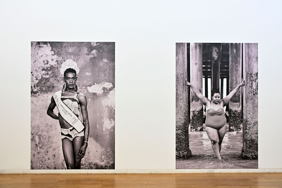 Entre composições, retratos, fotografias e escultura, abrangendo um corpo de trabalho que se estende desde o início da sua carreira artística até aos dias de hoje, a exposição antológica Zanele Muholi em Serralves, promove a inclusão e a representação justa da comunidade negra LGBTQIA+ no espaço museológico, reafirmando-o enquanto centro de discussão, de questionamento, de transformação e resistência. A este propósito, Muholi sublinha que: a História é muito, muito importante e os museus são lugares para as pessoas aprenderem e entenderem o que está a acontecer. Isto [a exposição] é apenas um pequeno pedaço do que partilhamos sobre o mundo, sobre os nossos ancestrais. Quebrando estereótipos e preconceitos a sua obra, qual manifesto visual, retrata a existência, a confiança e a resistência de corpos queer e trans em imagens que trazidas para o museu, desafiam a invisibilidade nos arquivos visuais de evidências históricas, despertando consciências. Organizada pela Tate Modern em colaboração com a Fundação de Serralves a mostra, com curadoria de Inês Grosso e Filipa Loureiro, foi adaptada ao contexto português num projeto radical de intervenção, transformação e desconstrução do espaço museológico, assinado pelo atelier de arquitetura Ventura Trindade, ao incluir novas imagens e a expansão de alguns núcleos de séries mais antigas e menos conhecidas como Being (2006-07) e Only Half of the Picture (2002-06). Marcando o momento de encontro com a obra de Muholi, a série Being incita à reflexão, à pausa e ao tempo do visitante na leitura de imagens que, a cores e a preto e branco, pedem para serem olhadas. Captando momentos de intimidade quotidiana, não de uma perspetiva voyeurista, mas como alguém que faz parte da comunidade LGBTQIA+, Zanele oferece-nos momentos de amor e cumplicidade numa série que, não obstante o gesto político, nos atrai pela celebração da afetividade e do toque de pele com pele entre casais do mesmo sexo. Da beleza poética e inocente de Being, somos conduzidos para série intimista Only Half the Picture, fotografias documentais a preto e branco de mulheres lésbicas, bissexuais e transgéneros negras vítimas de crimes de ódio, em exibição num espaço cuja luz natural lhe confere uma aura espiritual. Acompanhando a rampa que dá acesso ao segundo momento expositivo, apresenta-se a série Brave Beauties (2014-presente) composta por retratos de mulheres transgénero, antigas rainhas de beleza, que inspirados em fotografias editorias e capas de revistas de moda desafiam estereótipos. Da África do Sul para o mundo, em destaque na exposição, o projeto Faces&Phases, iniciado no ano 2000 e formalizado em 2006, impõem-se como arquivo vivo em constante crescimento. Retrato biográfico coletivo a p/b, a série homenageia e preserva as vidas de pessoas negras lésbicas, trans e não-conformes com o género. Entre artistas, ativistas, estudantes, desconhecidos e amigos de Muholi, são vários os retratos que, captados ao longo do tempo, traduzem rostos que falam sobre a progressão, o desenvolvimento e o crescimento de cada participante do projeto. Para a exposição no Museu de Serralves, à semelhança do que aconteceu noutros países [3], foram incluídos novos retratos realizados em colaboração com instituições locais (ILGA e Casa Odara) para que assim, de acordo com Muholi as pessoas LGBTQIA+, principalmente os negros, tenham uma razão para vir ao museu (...) a estratégia é garantir que todos sejam bem-vindos e que sintam que o museu é para todos, não só para alguns. À medida que observamos a instalação, confrontamo-nos com algumas lacunas, numa representação simbólica de pessoas que perdemos ao longo do caminho desde o início do projeto, seja por doença ou violência. Ocupando uma posição de destaque, observamos a fotografia horizontal na qual figura o retrato da ativista e poetisa Busi Sigasa (1981-2007), símbolo de Faces&Phases, que morreu com 25 anos, vítima de complicações associadas ao VIH/sida na sequência de uma violação corretiva. Próxima, aproveitando a fluidez da arquitetura que possibilita a circulação do visitante e o contacto com as diferentes séries, apresenta-se Queering in the Public Space, conjunto de fotografias em que elementos da comunidade negra queer foram fotografados em lugares que lhes eram vedados durante o apartheid. Desafiando normas e transgredindo ideias hétero-normativas de beleza branca, observamos imagens coloridas e vibrantes como as de Mellisa Mbambo, vencedora do concurso Miss Gay, fotografada na praia de Durban – antigo local de segregação- e Miss D’vine que, envergando acessórios de missangas sul-africanas, desconstrói a imagem de princesa zulu. Antecedendo o último núcleo dedicado à mostra, a extensa cronologia presente em Trancing Contexts, evidencia a história política da África do Sul com referências ao apartheid e à emergência do ativismo queer, que numa versão alargada e adaptada ao contexto nacional, inclui a história de Portugal, o nosso passado colonial e momentos cruciais das comunidades LGBTQIA+ no país.