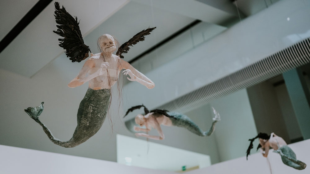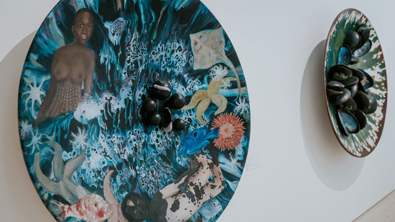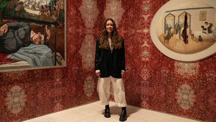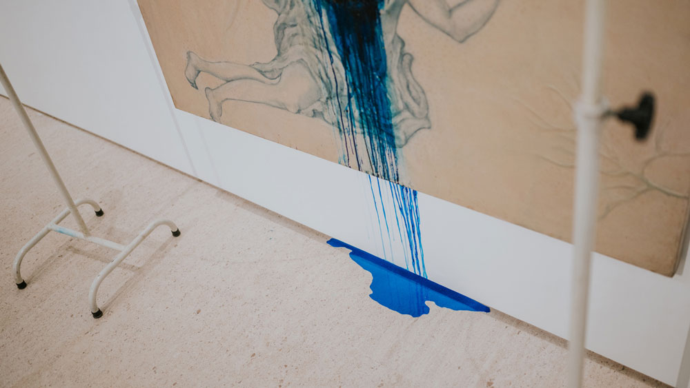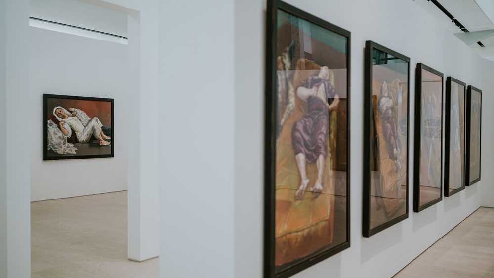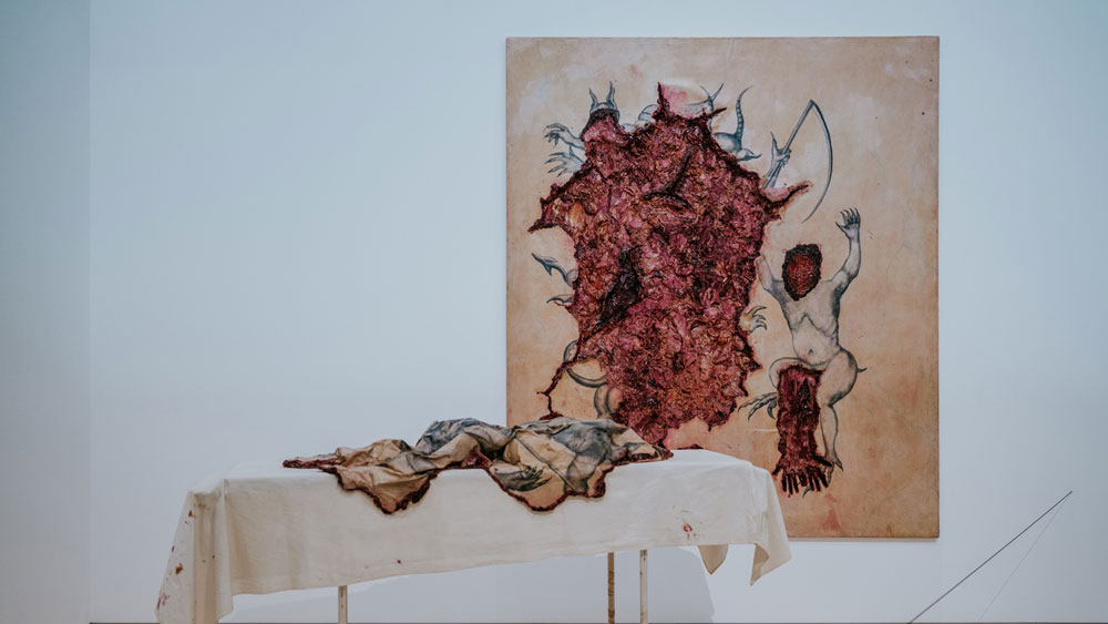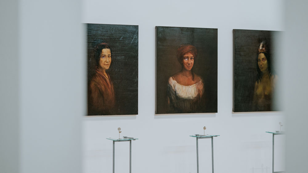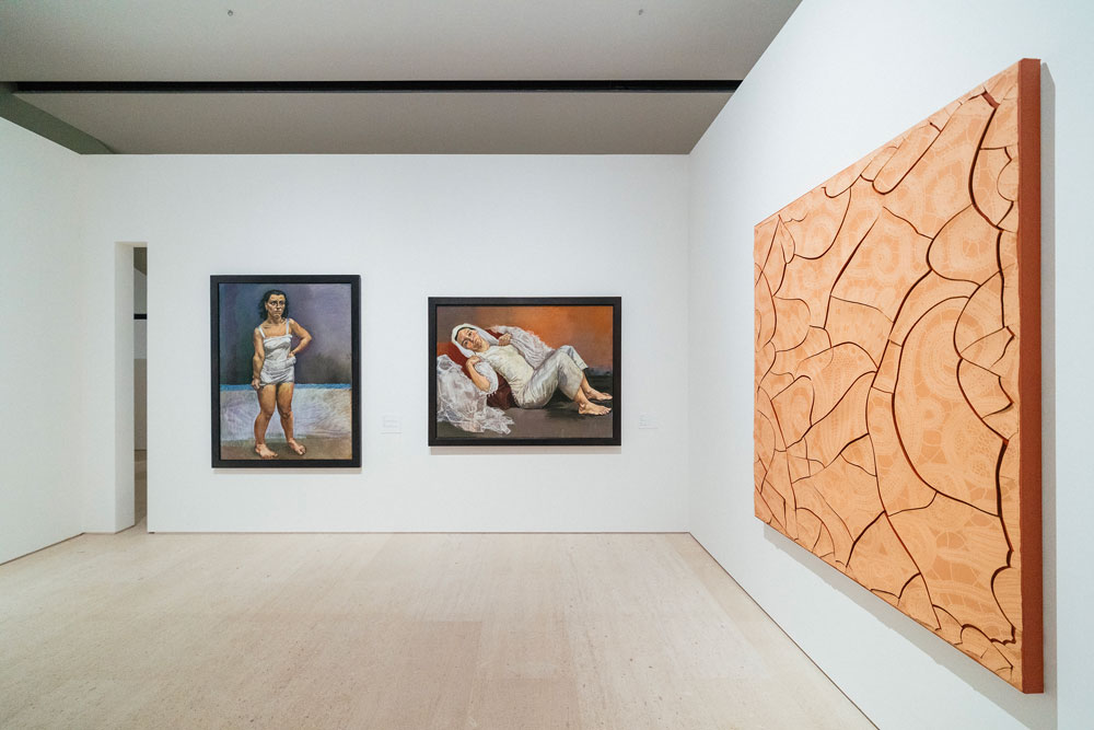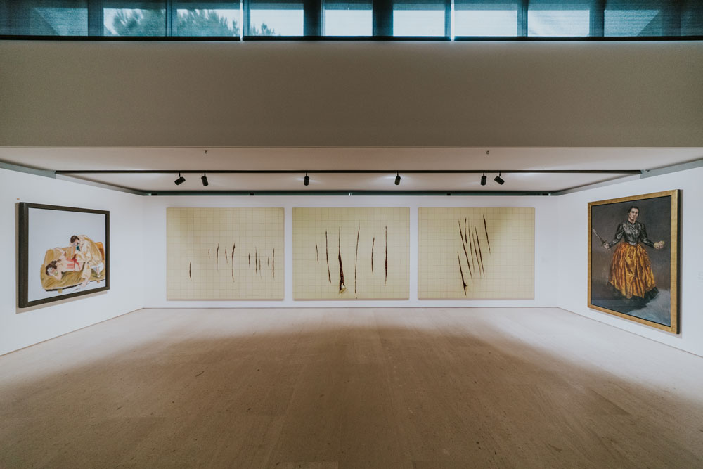 Os quadros de Rego na exposição são exemplares da vastidão da sua obra, indo de quadros mais realistas e figurativos até quadros mais abstratos. Sem importar a forma, a pintora não deixa pedra sobre pedra no que diz respeito à questão da violência. Se quadros como “Branca de Neve e a Madrasta (1995)” ou “A Mãe (1997)” aparecem como exemplos de uma fase mais figurativa, outros, mais abstratos, convocam o vidente para, na confusão das cores, encontrar nos títulos a clareza do assunto: ”Quando tínhamos uma Casa de Campo dávamos festas e depois matávamos os pretos” (1961) ou “Salazar vomitando a Pátria” (1960). Nesses quadros dotados de uma abstração quase infantil, que chegam próximos do pesadelo, a pintora revela, talvez pela desconfiguração das formas, a violência mais brutal. Porque é da natureza da violência esse rasgar das formas, talvez seja precisamente aquém da linguagem e da figuração - na incapacidade de figurar - que se expressam as violências mais absurdas. Os limites da minha linguagem são os limites do meu mundo, dizia Wittgenstein. E há mesmo qualquer coisa de fora-do-humano nessas obras, algo que escapa à linguagem porque excede em violência e brutalidade, excede como ficção a realidade. É sobre esse excesso e essa violência, precisamente, que a exposição se debruça. É claro que o ponto incontornável, a chaga principal desse encontro é o colonialismo. Mas ao mergulhar no colonialismo, encontramos ainda muita coisa. O salazarismo, a violência crua, a conjunção pátria-família, a animalidade e a construção do feminino são algumas delas. São esses, talvez pudéssemos dizer, os temas responsáveis por reunir essas duas artistas na Fundação Gulbenkian. Usando mais do que o pincel, a artista plástica brasileira Adriana Varejão dá forma, figura, e contorno a outras chagas, contando outras histórias. Varejão produz obras de médio e grande porte, à exceção de alguns trabalhos de menor escala no início da exposição, como testemunhas-oculares. A própria artista está figurada nessa obra, ora como índia, ora como Moura. E sem um dos olhos – eventualmente precisamente por causa disso – aparece como aquela que vê e testemunha a história. O aparecimento dessas figuras historicamente marginais não é banal – nem poderia. Não é só pela própria imagem da artista, que figura ora como índia, ora como moura, e pelo seu olhar – mas pelo quê de profético ou ameaçador que essas figuras revelam. Índias ou mouras, extirpadas e feridas – é por meio do seu olhar que podemos alcançar uma outra versão dos factos, contar uma outra história.