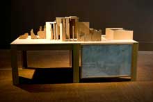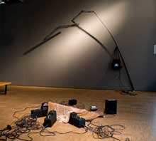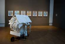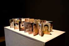 IOWA: UMA SELECÇÃO IMPROVÁVEL, NUM LUGAR INVULGARPEDRO DOS REIS2008-04-04Where are you from? Contemporary Art from Portugal / De onde vens? Arte Contemporânea de Portugal LOCAL Faulconer Gallery Grinnell College Bucksbaum Center for the Arts Sixth Avenue and Park Street Grinnell, Iowa 50112 DATA 1 de Fevereiro – 20 Abril Inaugurada no passado dia 1 de Fevereiro na Faulconer Gallery, em Grinnell, Iowa, a exposição juntou 21 artistas portugueses que procuraram responder, com o seu trabalho, à pergunta “Where are you from?/De onde vens?”. A variedade de trabalhos e artistas – uns já conhecidos do público e outros algo esquecidos ou mesmo desconhecidos criou uma selecção improvável, visto que dificilmente seriam reunidos numa exposição, em qualquer outro lugar do mundo. Este aspecto torna esta exposição inédita e curiosa, sendo merecedora de atenção. A explicação para a concepção da exposição justifica-se após uma bolsa Fullbright, onde uma das mentoras do projecto e também artista, Jane Gilmor, passou uma temporada em Évora a partilhar a sua experiência artística na fábrica Leões pertencente à Universidade de Évora. O contacto que esta artista teve com artistas portugueses motivou-a a falar com Lesley Wright, da Faulconer Gallery para que se fizesse uma exposição reunindo artistas do nosso país, no Iowa (um estado norte-americano aproximadamente uma vez e meia maior que o Indiana). A Faulconer Gallery tem vindo a desenvolver um programa com artistas internacionais desde 1999 e a escolha de artistas portugueses apareceu como mais uma oferta, que a galeria poderia apresentar ao seu público. Na sala que antecede a sala principal de exposições, uma bancada com livros sobre Portugal (desde arte, política, economia a guias turísticos) encontra-se disponível ao visitante que quiser consultar mais informação sobre o nosso país oferecendo uma perspectiva mais didáctica sobre o que é o Portugal de hoje: Onde fica? Quais as suas fontes de rendimento? Que oportunidades existem para os seus jovens artistas (dada a presença de vários catálogos de diversas edições de prémios dirigidos aos mesmos, como o Anteciparte, por exemplo)? Que tipo de arte se produz (através de vários catálogos dos artistas presentes)? Qual é o contexto, que preocupações existem, que questões se discutem (notavelmente através de edições de arte, como as do Project Room do CCB)? O visitante é também convidado a partilhar a resposta à pergunta – Where are you from? / De onde vens? - podendo colocar um alfinete na cidade de onde é, ou se sente, originário. Incrível ou nem por isso, vários eram os alfinetes colocados no Porto, Lisboa e Évora – maioritariamente dos artistas participantes e que foram convidados a ir até Grinnell para partilhar localmente a sua experiência artística e conhecer um pouco a realidade do local que os juntou. Entrando na galeria, a vista geral apresenta um espaço aparentemente adormecido, onde as paredes cinza escuro contrariam o esperado white cube, numa opção que visa facilitar a separação entre a localização das obras em suporte vídeo e as realizadas com outros meios, aqui iluminadas de forma precisa. Porém, este cenário em suspensão vai sendo quebrado por acordes de guitarras eléctricas e sons mecânicos que fazem adivinhar que, por detrás da reduzida luz, há algo mais por descobrir. Logo à entrada, o visitante é surpreendido por um carro de mão carregado de diversos objectos, conferidos de uma certa ausência de referências, devido à sua cor branca. Associado a esta escultura, existem ainda vários mapas que olhando em detalhe se apresentam como uma desconstrução geográfica do mapa-mundo. Trata-se de “No man’s land”, uma instalação mixed-media, de Pedro Valdez Cardoso. A resposta deste artista à questão colocada caracteriza-se pelo ser nómada (que faz também parte da memória colectiva portuguesa), que não se encontra propriamente confinado à sua geografia, mas que no fundo é um cidadão do mundo. Não pertence a lado algum, embora pertença a todo o lado, tal qual um vendedor ambulante; o que acaba por pôr em causa a questão da identidade cultural - se é parte de uma herança baseada na naturalidade ou se radica na sua opção enquanto individuo (como é também referido pelo artista). Relativamente ainda aos mapas construídos numa amálgama apropriada de outros mapas, habilmente ligados através de costuras e linha, estes encontram-se dentro de uma moldura com passepartoutoval, numa alusão a um “novo atlas” ou ainda a um espelho antigo reflectindo um mundo centrado nas referências geopolíticas do indivíduo (como é referido na folha de sala). Em oposição cromatográfica, encontramos outra instalação – uma casa de bonecas, “Dollhouse”, construída a uma escala mais “adulta”. Teresa Furtado convida-nos a entrar, a fechar janelas, portadas e a porta, e a assistir a um vídeo que nos faz regressar à infância. A história é que parece diferente – “The loveliest girl in the world”, desconstrói a visão paternalista e moralista da mulher perfeita presente nos contos de fadas, (re)escritos a partir do século XIX, mostrando em certa medida a existência da própria mulher portuguesa, instituída por um forte moralismo durante várias décadas. O vídeo inúmera as várias características da mulher (que se quer perfeita) e apresenta uma estética que é coerente com a casa onde está inserido. Bonecas e brinquedos, que se situam num cenário também ele quase infantil, servem para contar a história da rapariga perfeita - umas vezes uma boneca, outras vezes um esqueleto sem vida própria. Avançando pelo espaço aparece uma mensagem mais pessoal. João Leonardo responde com o seu “Calendar to Jane” (Gilmor, como se imagina quando uma pessoa responde a alguém que lhe faz uma pergunta directa). Um journal, terminado com uma frase atribuída a Confúci