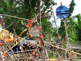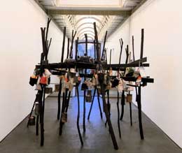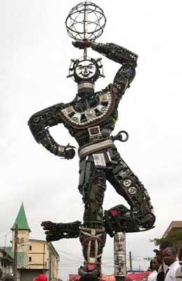 ARTE CONTEMPORÂNEA NOS CAMARÕESMARTA MESTRE2009-03-24FUI LÁ VISITAR ARTISTAS... Viajar pelos Camarões é arquivar imagens que simultaneamente deslumbram e crispam o olhar, porque jamais a “justa medida” da nossa moldura europeia, aquela que Winckelmann encontrou na simplicidade e na nobreza das ruínas gregas (passando a circunscrever os limites futuros da apreciação estética), se ajusta aos quadros que temos pela frente. Localizado no Golfo da Guiné, mesmo no centro de África, entre o Congo e o Gabão, a Sul, e a Nigéria, a Norte, o país é marcado pelo mar, o deserto, e o clima equatorial, o que contribui para aquilo que os roteiros turísticos caracterizam como: “uma África em concentrado”, onde 280 línguas correspondem ao mesmo número de etnias. Considerado o país mais corrupto do mundo, explorado intensamente pelas multinacionais, delapidado nos seus recursos naturais, detentor de uma taxa de HIV alarmante, e uma descredibilização generalizada no poder político, não deixamos, no entanto, de sentir o frenesim necessário para a mudança. Apesar da contribuição que os Camarões deu para o fim dos colonialismos nos anos 60 (lideres, grupos políticos, lutas, mártires, etc.) os camaroneses têm ainda pela frente a segunda etapa da independência, contra o governo ditador de Paul Biya. UM PÉ DENTRO E UM PÉ FORA Uma característica recente na prática profissional dos artistas em África é a reunião simultânea das competências dos artesãos com o novo vocabulário da arte contemporânea. As competências profissionais aplicam-se em simultâneo nas fronteiras do institucional e do quotidiano, da arte profissional e da arte não-profissional. Esta simultaneidade leva-nos a estabelecer uma analogia com os homens da etnia bamiléké que, para além do “emprego fixo” no mercado, têm ainda a render táxis, fotocopiadoras, terreno de cultivo, ou negócios de animais. A condição profissional dos artistas assenta igualmente nesta versatilidade: é-se “artesão” e “artista contemporâneo africano” e na maior parte das vezes, a obra acusa o compromisso inevitável de um “portfolio” misto. Entre as vendas que asseguram a sobrevivência e a linguagem independente que ensaia novos territórios. Nos Camarões, o circuito da arte é pequeno. Os contextos artísticos de Douala, Bonendale, Bandjoun Station e Yaoundé não bastam para cumprir os palcos e as agendas curatoriais da arte contemporânea internacional. Por isso os programadores e os artistas circulam no exterior, entre Dakar e Paris, Amesterdão e Londres, Nova Iorque ou Joanesburgo, e organizam iniciativas que promovam a vinda de gente de fora, e a mobilização apoios ocidentais ao desenvolvimento. Os artistas da diáspora, por outro lado, desempenham um papel fundamental na projecção do país no mapa da arte contemporânea. Quando Samuel Fosso, Barthélèmy Toguo, Goody Leye ou Pascale Marthine Tayou expõem no Palais de Tokyo, no Moderna Musset, no Baltic, na Feira de Miami, na Serpentine Gallery, ou na Bienal de São Paulo, os curadores e galeristas internacionais prolongam as pesquisas no terreno, à procura de novos “toguos”, “fossos”, “tayous”, com a esperança de repetir o mediático efeito “áfrica”. Com grande expectativa, porém, surgem investimentos no país, por parte dos artistas da diáspora. Nos últimos cinco anos têm aparecido espaços e projectos de intervenção social e cultural dinamizados por Barthélèmy Toguo, Goody Leye ou Joel Mpah Doph. Como Ulisses que volta a Ítaca, os artistas regressam depois da “viagem”, restabelecem laços e constroem casas. O traço comum é o facto de falarem do seu país como uma realidade vista simultaneamente de fora e de dentro, e de si mesmos como pertencentes ali e a muitos lugares, sintoma do alargamento das redes de construção da identidade. Como Ulisses que chega, e Argos o cão reconhece, assim são os artistas, no jogo dos vários papéis da diáspora – migrantes, emigrantes, imigrantes – simultaneamente Ulisses e o cão. A TERRA PROMETIDA DE BARTHÉLEMY TOGUO Em 2001, o artista camaronês Barthélèmy Toguo apresentou a instalação “Terre Promise”, uma pista de aviões inundada de pedras e lixo que perturbavam as aterragens e as descolagens. O título ridicularizava o Ocidente como imagem da realização individual e do sucesso, jamais Terra Prometida. Nesta instalação, como numa importante parte da sua obra (a série “Transit”, p.ex.), Toguo expressa o constrangimento à mobilidade de sujeitos, e o desenraizamento do tema africano relativamente à história europeia. “Terre Promise” pode ser lida como a encenação satírica da “Jerusalém” da diáspora e dos artistas: uma alusão à “via sacra” da burocracia, dos vistos, dos papéis, das fronteiras que dividem, da corrupção entranhada nos hábitos. Para um europeu, chegar aos Camarões torna-se um idêntico calvário, mas numa outra ordem de etapas. Neste caso estamos mais perto da “Terre Promise” que Toguo propôs na Bienal de São Tomé e Príncipe, em 2008. Tratou-se do mesmo dispositivo, mas completamente coberto de uma película fina e brilhante de alumínio. Ou seja, apesar dos semelhantes obstáculos que têm início logo nas embaixadas da Europa, há um “brilho” na vontade infantil, exótica, e tendencialmente ocidental, por África. Barthélèmy Toguo, o artista camaronês mais internacional, é considerado um dos mais importantes artistas franceses da contemporaneidade (devido à sua dupla nacionalidade). Com um percurso artístico notável revelado em projectos e exposições ímpares no contexto da arte contemporânea (“África Remix”, Baltic, Palais de Tokyo, Drawing Center, Biennale de Lyon, Bienal de Guangzhou, Migrateurs, La Criée, etc.), o seu trabalho explora a multiplicidade de suportes e média (performance, pintura, instalação, cerâmica, escultura, etc.) em torno dos efeitos estético