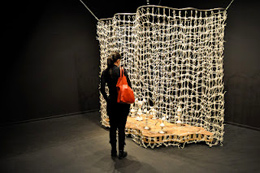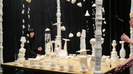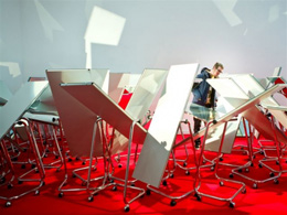 SUPERBODIES: 3RD TRIENNIAL FOR CONTEMPORARY ART, FASHION AND DESIGNPATRÍCIA ROSAS2012-04-26SuperBodies 3rd Triennial for contemporary art, fashion and design Hasselt, Bélgica 4 de fevereiro a 27 de maio 2012 SuperBodies é o título da terceira edição da Trienal de arte contemporânea, moda e design, que ocorre em Hasselt, e Peter T’Jonck é o curador da mostra que está patente em cinco espaços da cidade belga. A primeira edição intitulou-se Super!, a segunda, introduziu o tema SuperStories, e nesta última edição o destaque recai sobre o corpo humano. A grande particularidade desta Trienal depara-se com o elevado número de obras que requer a participação do público. O “corpo” do visitante é convidado a envolver-se, em geral, com o espaço e, em particular, com as obras. Neste sentido, o público é de certa forma obrigado a pensar o seu corpo, ou o seu corpo em relação com algo. No catálogo, Peter T’Jonck rejeita a separação absoluta entre corpo e consciência. O nosso corpo é indissociável dos pensamentos, sentimentos e ideias. O corpo reage positivamente ou negativamente a estímulos que partem da consciência e o mesmo acontece inversamente: o corpo ao mudar com o passar do tempo estimula uma reação mental, ou seja, somos diferentes conforme as situações, ou em diferentes alturas da vida, numa dependência do espaço e do tempo, ou seja, do lugar e da época. É mediante a consciência do nosso corpo e da sua ambiguidade que esta trienal é pensada e apresentada ao público, procurando que o visitante reflita a sua relação com o corpo e propiciando-lhe também novas experiências e perceções físicas e mentais. Neste contexto, SuperBodies explora as diversas manifestações do corpo humano, apresentadas em diferentes meios artísticos, agrupando obras das décadas de sessenta e setenta – época em que se destacou a relação do corpo com o público –, e confrontando-as com trabalhos recentes, alguns deles produzidos especificamente para a trienal. Os anos sessenta foram, imperativamente, a década que marcou o século XX na relação do indivíduo com o corpo, influenciando inevitavelmente os processos artísticos. Nesta década, a revolução sexual foi marcada, por exemplo pelo acesso generalizado da pílula contracetiva. Estes fatores foram incontornáveis para uma profunda mudança nos processos criativos, quer na dança, quer nas artes visuais através de propostas de novas experiências com o corpo, incluindo a body art, um dos expoentes máximos desta revolução. Segundo Peter T’Jonck, em 2012, o interesse sobre esta época é evidente, manifestando-se, por um lado, através da renovada profusão de estudos sobre a igualdade de género e a identidade sexual, que se debruçam fortemente sobre imagens e sensações do corpo; e por outro lado, pela relação que temos com o virtual atualmente, que contrapropõe uma atenção ao não-virtual, sobretudo numa dedicação particular ao corpo através das sensações. Com efeito, os artistas procuram uma “realidade” experienciada com o corpo, ou uma relação entre a experiência real e virtual, incluindo nas suas produções o público comum – como interveniente da obra – e o público participante: “tocar” uma obra, seja um têxtil, um ecrã, ou um objeto, torna-se um pré-requisito para entendê-la e finalizá-la. Rudi Laermans, professor de teoria social, crítico e ensaísta de dança, apresenta no catálogo uma renovada definição para a body art, que parte da designação bodyhood – “ser corpo” – baseada, claramente, no ensaio de Michael Fried “Art and Objecthood” (1967). O crítico norte-americano refere que o “ser” de um objeto o transcende, devido à duração da experiência do observador que é vista por Fried como uma duração teatral, cujo tempo de experiência do público é indispensável e faz parte do Ser da obra. O observador é um experimentador e a relação entre o observador e a obra com o meio envolvente – sendo que esta experiência ocorre num tempo presente – tem um efeito teatral, presença de cena, isto é, ocupa um lugar na duração e cumplicidade com o observador. Logo, esta ideia é adotada na trienal numa relação emergente entre o visitante, o seu corpo e a obra. Acompanhando esta relação do observador-experimentador com as obras, destacamos três espaços da Trienal: o Museu da Moda - Modemuseum, o centro de arte Z33 e o Cultural Center. Um trabalho em vídeo produzido pela dupla Lemm&Barkey especificamente para a trienal dá o mote para a exposição no Modemuseum, reunindo nesta obra performance, design e dança em suporte vídeo. O coletivo constituído por Lot Lemm e Grace Ellen Barkey mostram neste museu um conjunto de trabalhos que se relacionam de alguma forma com a cidade de Hasselt, devido à utilização da porcelana nas suas instalações. A cerâmica de Hasselt alcançou o auge em 1897 na Feira de Arte Mundial em Bruxelas, quando teve oportunidade de ser exposta. Lemm&Barkey apresentam The Porcelain Project, de 2006, instalação constituída por centenas de objetos de porcelana, que se mexem, como se de uma coreografia se tratasse. O som da porcelana que ouvimos no vídeo junto da instalação destaca a fragilidade dos objetos, que na obra Tritafel é evidente quando observamos os objetos caídos e partidos no chão. Neste museu, a dança ganha um papel primordial com a apresentação do vídeo Accumulation with Talking Plus Water Motor, de 1986, de Trisha Brown, que evidencia uma série de exercícios corporais, movimentos consecutivos, repetidos e acumulados, que dificultam e complexificam os próprios movimentos. Estes, transpostos para linhas que experimentam o espaço no papel, estão reunidos num conjunto de desenhos da coreógrafa norte-americana também aqui expostos, datados de um período que vai dos anos 70 ao presente. A reação do corpo à água ou a existência de uma “falsa” segunda pele 