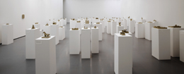 55. BIENNALE DI VENEZIA. IL PALAZZO ENCICLOPEDICOSOFIA NUNES2013-06-27De tempos em tempos, no mundo da arte contemporânea, surgem exposições de grande formato que perspetivam a curadoria como um campo de reflexão resultante de uma investigação profunda que determina, explora e complexifica um problema preciso, despoletado pelos próprios objetos apresentados, ao mesmo tempo que reinventa a sua prática. A exposição central da 55ª Bienal de Veneza, O Palácio Enciclopédico, comissariada por Massimiliano Gioni (Busto Arsizio, 1973) é uma dessas exposições, sendo portanto exÃmia e muito estimulante do ponto de vista curatorial. O seu ponto de partida é uma maquete de um museu imaginário concebida por Marino Auriti, um artista autodidata, em 1955. Nesse enorme museu, que dá tÃtulo à bienal, mas que nunca saiu de projeto, caberiam todos os saberes do mundo e conquistas da humanidade, desde a roda, ao satélite, passando pelos artefactos e as vanguardas artÃsticas. Um sonho que Auriti partilhou, nas palavras do curador, com “muitos outros artistas, escritores, cientistas e profetas auto-proclamados que tentaram em vão, construir uma imagem do mundo que captasse a sua infinita variedade e riqueza.†Recuperar esta utopia requer, porém, que a olhemos a partir das condições históricas atuais e extrair certas consequências, como Gioni o faz. Assim, se hoje o sonho pelo saber universal e o acesso a toda a história parecem ter-se atualizado à luz da cultura da hiperconetividade e da profusão de imagens e informação via google/facebook, nunca, por outro lado, a capacidade de inventar novas imagens nos pareceu tão parca e, simultaneamente, urgente. Neste sentido, esta é uma exposição que considera aquela contradição para reativar a importância da esfera da imaginação, perscrutando os lugares da imagem na relação com a experiência do mundo. Gioni, prefere, por isso, considerar a imagem como uma noção elástica e pluriforme, que tanto pode ser trabalhada do ponto de vista bidimensional, tridimensional ou corporal, por artistas profissionais, autodidatas e não artistas (mas artistas dentro da exposição). Paralelamente, opta por uma narrativa de corte histórico sincrónico que abrange o século XX e primeiras décadas do XXI, onde diferentes gerações de artistas dialogam entre si e a problemática central surge tratada de modo prismático. Como tal, as múltiplas cosmologias pessoais que se vão sucedendo ao longo da exposição, vão também conferindo diferentes ordens discursivas à imagem. A exposição abre, não por acaso, com o Livro Vermelho, 1914-30 de Carl Gustav Jung, um manuscrito iluminado que reúne um conjunto de interpretações das suas visões e fantasias mais profundas. Assente na técnica da “imaginação ativaâ€, o manuscrito constituiria um exemplo de como o “inconsciente individualâ€, imprescindÃvel à sua teoria da individuação, se manifestava em imagens, narrativas ou simbólicas, e como através destas, o homem podia aceder à totalidade da psique. Ora a atenção dada aos sonhos, intuições, visões e alucinações é, assim, levantada para de seguida assumir centralidade junto da maioria dos trabalhos apresentados no Pavilhão Central, que somam também outros interesses ligados, concretamente, à tentativa de compreensão de fenómenos imperceptÃveis e estranhos ao conhecimento [1]. Entre esses trabalhos, encontramos os esquemas a giz sobre cartolina negra, feitos por Rudolf Steiner durante as aulas que deu nos anos 1920, dedicadas ao estudo da Antroposofia e à interpretação do mundo através de experiências espirituais e mÃsticas de base cientÃfica. A coleção de pedras raras de Roger Caillois, cujos padrões variados e a riqueza cromática permitiram-lhe, com base no seu modelo de “ciência diagonalâ€, traçar analogias semânticas entre o mundo mineral e o mundo animado e meditar sobre os fluxos de energia em toda a matéria. As aguarelas coloridas de 1938 de Aleister Crowley, mago e ocultista que visitou Fernando Pessoa em 1930, pautadas por uma linguagem de influência art deco e simbolismos diversos impulsionados pelas práticas do ocultismo, budismo e consumo de alucinogénios. Ou os desenhos geométricos de Emma Kunz, iniciados em 1939, no contexto das suas sessões terapêuticas, que apontam para o poder paliativo da imagem fundado numa ideia de consciência superior que apreenderia as forças invisÃveis do mundo visualmente perceptÃvel. Já em João Maria Gusmão e Pedro Paiva, representados numa grande sala do Arsenal com várias projeções de filmes 16mm (2007-2013), algumas destas preocupações reaparecem desviadas pelo pensamento ficcional da “abissologia†que ambos engendram, jogando sistemas de devires paradoxais contra sistemas de crença (racionalista ou mÃstica) [2]. À medida que avançamos no Arsenal, as investigações em torno da imagem direcionam-se progressivamente para a questão do digital, do excesso de informação que povoa o quotidiano e para a indagação de formas de conhecimento e experiência organizadas pelas novas tecnologias. A este respeito salientam-se os vÃdeos: The Trick Brain, 2012 de Ed Atkins, uma filmagem da coleção pessoal de André Breton que estabelece uma analogia entre a imagem digital/código e a ideia de morte associável à ideia de coleção. Kempinski, 2007 de Neïl Beloufa, onde o presente é tido pelos intérpretes como um tempo preenchido de virtualidades tangÃveis: a telepatia, carros com voz, viagens à s estrelas num segundo. Das Hole, 2010 de Jos De Gruyter e Harald Thys, uma conversa interpretada por três manequins que ironiza a aceitação e incorporação imediatas do digital tanto na vida como na arte. Grosse Fatigue, 2013 de Camille Henrot, que apresenta a subjetividade enquanto terreno inimigo dos diferentes sistemas arquivÃsticos inventados pelo homem através de uma narrativa assente em texto/poesia lido em voz off