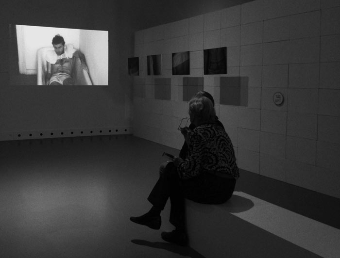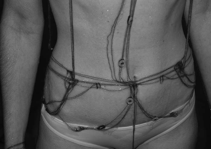 Recorri ao contexto académico por estar, de alguma forma, numa posição mais protegida da lógica de mercado do que a minha anterior posição enquanto designer para marca própria, ainda que tivesse tido sempre uma forte componente de investigação no meu trabalho. O projeto apresentado nesta exposição intitulado An impossible wardrobe for the invisible de 2011, foi desenvolvido no âmbito do mestrado com apoio da Bolsa da Fundação Calouste Gulbenkian [de especialização e valorização profissional em artes - estudos no estrangeiro], este questionava o papel do designer através da constituição da produção para a inexistência de produto. A instalação vídeo mostra a documentação de sete ações, previamente planeadas, onde um guarda-roupa arquétipo era criado para ser vestido e destruído pela água. Embora planeadas, qualquer uma das ações tinham um resultado imprevisível. Significando que cada peça é única e não poderia ser repetida e que cada registo do acontecimento tem a sua própria duração e reproduz o evento (memória). A projeção vídeo mostra sequencialmente os seguintes filmes: 1. Woman in the water (vídeo, 4’25”) 2. Two man hug (vídeo, 5’30”) 3. Man sinking to the floor (vídeo,3’17”) 4. The older man sitting (vídeo, 5’44”) 5. Young couple (vídeo, 4’49”) 6. Women crossing the water (vídeo, 1’33”) 7. Self portrait (vídeo 3’04”)