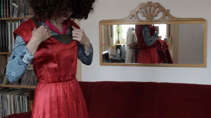 Foi desenvolvido em colaboração com uma pequena equipa: Pedro Fortes como corealizador e os performers Joana Areal, Miguel Bonneville, Diogo Bento, Yann Gibert, Eduardo Petersen, Sofia Dias, Vítor Roriz, Andrea Brandão, Liz Vahia, Sofia Pimentão, Teresa Nobre e eu. A minha prática tem sido caracterizada pela utilização de processos onde o acaso e o fracasso foram assumidos como parte do desenvolvimento do trabalho. Veio a ser realizada, enquanto investigação, como uma prática ‘desmaterializada’ no sentido amplo do termo remetendo para as práticas artísticas da década de 70. Refere-se a um processo de desmaterialização que enfatiza a impermanência de todas as coisas. Presentemente, no desenvolvimento do meu doutoramento assente na prática, procuro uma estratégia de ‘desfazer’, privilegiando processos de criação deambulatórios, erráticos através dos quais é realizada a gravação, edição e reedição de vídeo. As imagens produzidas ou recolhidas, são constantemente coladas às anteriores, ou seja, explicando de uma forma simples faço uma colagem mais ou menos aleatória de alegorias, preocupações e pensamentos que refletem acerca do que pode ser hoje o design de moda. Esta metodologia apropria-se livremente da ‘desconstrução’ ou ‘desconstruções’ de Jacques Derrida, não no sentido filosófico do termo, mas sim como uma forma de compreender um processo e de desenvolver uma estratégia que permite uma multiplicidade de olhares sobre as mesmas preocupações. As ações, às quais estou a chamar de momento ‘coreografias’: coreografias da produção; coreografias do consumo e coreografias do vestir são registadas em vídeo e fotografia. O uso destes meios permite a dita reflexão, já aqui mencionada, utilizando o vídeo como pensamento: vídeo-pensamento. Esta estratégia permite descrever as relações dentro do sistema da moda e compreender como o próprio sistema se constitui, recorrendo ao mínimo de meios possíveis e simplificando-o, sendo que para o fazer é necessária a sua desmontagem, o seu desmantelamento analítico e posteriormente a sua reconstrução imaginária. O termo ‘desconstruir’ em si, evoca a imagem de uma estrutura ou um objecto suspenso no ar, com todas as suas partes visíveis . Esta imagem invoca algo prestes a colapsar. Não completamente destruído mas que se vai desfazendo. Desconstruir, sugere também que destruir permite compreender. A questão de linearidade narrativa foi-se tornando para mim uma questão secundária e interessou-me mais a densidade de associações que uma imagem permite, a ideia da imagem dialética de Walter Benjamin (Penksy, 2004). Considerando que uma consciência crítica dos processos de produção e consumo é inerente à atual problemática do design, como podemos, no contexto de uma crescente preocupação com o ambiente e alterações climáticas, conciliar o carácter efémero da moda com a sustentabilidade e equidade social? O papel do designer evoluiu desde o seu surgimento com a Revolução Industrial. Não estando exclusivamente ligado à produção e consumo massificados, o design está profundamente envolvido na produção de cultura e significado, e a ele acresce a responsabilidade política e social. Tendo encontrado algumas limitações nos meios utilizados anteriormente, e perpetuando a minha constante errância entre disciplinas, encontrei no vídeo-ensaio um meio que permite uma relação simbiótica entre o texto escrito da tese e a minha prática. Expandindo o género documentário, o vídeo-ensaio é um híbrido, que oscila entre a ficção e a realidade. No campo expandido do design de moda, onde existe a necessidade de reflexão e crítica, esta é explorada através da associação livre de uma narrativa fragmentária. O formato é fluído e informe, remetendo aos cuts-ups de William Burroughs ou ao improviso musical. Assumindo a forma de pequenos poemas visuais e desenvolvido de forma contínua, o vídeo permite não fechar a leitura e sim iluminar o caminho do espectador, deixando-o por sua conta no encontro com as preocupações com a sustentabilidade, produção e consumo. O filme é desenvolvido numa prática colaborativa, na qual o trabalho com Joana Linda e Sónia Baptista tem sido essencial bem como as colaborações pontuais com Liz Vahia, João Caldas e Gonçalo Birra. Estou ainda a articular pensamentos entre si (eles estão em formação), a pensar através do vestuário e do filme (algumas imagens abaixo podem ilustrar o texto e permitir compreender melhor do que falo). Notas [1] Lippard, L. R. (1973) Six years: the dematerialization of the art object from 1966 to 1972, London, Studio Vista. ::: Bibliografia