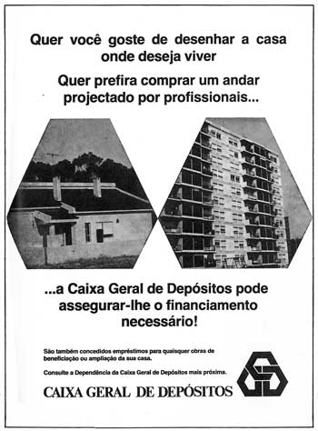 Às duas “cidades” que delimitam a panorâmica anterior – o edifício de rendimento e o grande empreendimento – podemos fazer corresponder uma evolução das condições e formas de consumo que influenciam as bases da formação do gosto que a publicidade, frequentemente, opera. De facto, tendo como ponto de partida a valorização do funcional (no limite havia, neste momento, a difusão de um certo “conforto construtivo” [Fig.9]), verificamos o crescente evoluir para a sofisticação do “desejável”; à medida que o consumidor-utilizador conquista os seus bens essenciais, a publicidade torna-se mais inventiva e persuasiva, ora anunciando outros (novos) produtos [Fig.10] ora mostrando as “novas qualidades” dos já existentes [Fig.11].