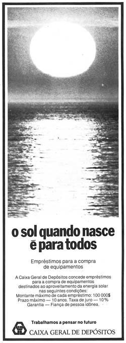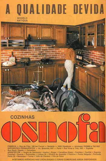 Já nos anos de 1980, assiste-se ao surgimento da temática ambiental, com uma valorização crescente de publicidade destinada a equipamentos energéticos [Fig.17]. Publicita-se igualmente o financiamento para aquisição [Fig.18], não apenas de habitação, mas também dos próprios “extras”: a garagem com duas portas (Pornorma [Fig.19]) que pressupõe espaço para o “luxo” de se possuir um segundo automóvel; ou a cozinha da casa de campo (Osnofa [Fig.20]), que anuncia “a qualidade devida” (não apenas a boa vida, mas um melhor e devido devir). Aqui reside, exemplarmente, a grande provocação deste período: a habitação não sendo apenas um bem essencial, configura, agora, um objecto personalizável e passível de ser entendido enquanto objecto de consumo, merecido e conferidor de individualidade.