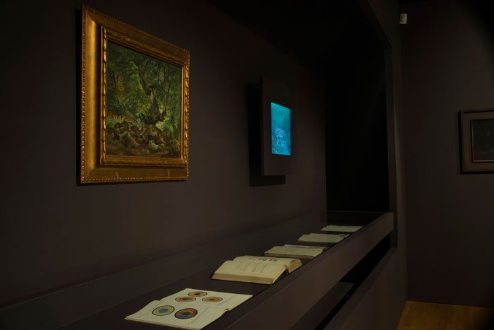 O tema da cegueira é um tema clássico que perpassa a história e a arte. A cegueira pode ser total ou parcial, mas é ela que impede a luz de entrar, impossibilita a definição dos contornos, a revelação da verdade. A sombra inerente à obra (aqui por estar escondida do olhar humano) vem dar lugar a uma vontade de se mostrar e de revelar. Desvenda-lhe o pormenor, devolve o fragmento ao seu lugar originário importante na fruição e compreensão da obra. Os diapositivos de Paulo T. Silva reinterpretam as pinturas e desenhos de Boudin, Guardi e Domingos Sequeira. Aqui as possibilidades da tecnologia dão a ver ao olho humano o que este normalmente não poderia alcançar: ou por mera incapacidade ou por falta de atenção. O pormenor esconde-se na imensidão e é necessário iluminá-lo para que ele também possa dar um outro sentido ao todo. É como a floresta: densa, fechada e escura que vamos encontrar na sala do primeiro andar. Mas também a floresta que inspira o artista (o próprio Courbet tem várias obras sobre o tema). O olhar que perscrute aquela árvore, aquele fio de luz enfiado num ramo, um charco castanho e quase impercetível.
