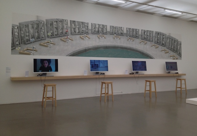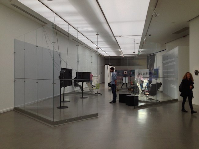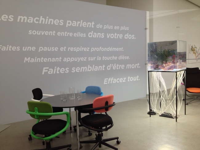 CO-WORKERS: CONTAMINAÇÕES ENTRE TECNOLOGIA, INTERNET E O ANTROPOCENO.FILIPE AFONSO2016-03-17Na exposição “Co-Workers – Le Réseau Comme Artiste”, terminada recentemente no Musée d’Art Modernne de La Ville de Paris (MAMVP) e com curadoria de Angeline Scherf, Toke Lykkeberg e Jessica Castex, a tónica era acentuada no modo como a comunicação e o trabalho em rede contemporâneos influenciam o espaço, a arquitectura, os ambientes naturais, culturais e sociais e as relações entre os seus sujeitos. E/ou vice-versa. A maior parte dos artistas da exposição foram formados na década de 2000 e muito influenciados pela internet e ambientes digitais. A exposição foi dividida em duas partes distintas: “Le Réseau Comme Artiste” no MAMVP e “Beyond Disaster” no Bétonsalon - Centre d'art et de recherche. “Co-Workers – Le Réseau Comme Artiste” re-pensa o próprio espaço do museu, mas não o actualiza. O design e cenografia da exposição pelo colectivo DIS não vai muito além da sugestão e da encenação: sofás e coffee shops são elementos figurativos e sem um sentido prático. As obras aqui ultrapassam a escala humana e investigam a forma como a inteligência e a consciência podem ser expandidas para incluir máquinas, animais e outros organismos vivos. O computador ou o ecrã surge aqui como um elemento central, sublime: ele é, de todos os objectos contemporâneos, aquele que atrai mais atenção, aquele com mais energia, mais luz e mais “vida”. É, por consequência, o nosso maior objecto (ou ser?) de desejo e aquele com quem partilhamos uma grande parte dos nossos afectos. Através da internet, ele oferece possibilidades infinitas com recursos intermináveis de imagens, textos, vídeos, sons e links. Nós, a maioria de nós, passamos em frente dos ecrãs uma grande parte do nosso tempo, é normal por isso que sejamos influenciados pelos seus likes, pins, tweets, pixels, gifs e que iremos repetir esses comportamentos nos ambientes do "mundo real" (Bailenson e Yee, 2005 [1]). É talvez necessário questionar o conhecimento da sociologia tradicional de que o ser humano é o centro de tudo o que está a acontecer na medida em que outras forças e desejos agem sobre ele, questionando a sua autonomia (Goffman, 1999 [2]). "A Internet das Coisas" gira em torno da ideia de que os seres humanos não são mais as entidades de pensamento único - que as coisas em seu redor estão interligadas e comunicam entre si e constituem um ambiente denominado de "Inteligência Ambiental". Vivemos num mundo onde o digital é largamente integrado nas nossas vidas diárias. As tecnologias digitais estão tão presentes que passaram a ser quase invisíveis ou percebidas como naturais dando lugar, pela observação de alguns, a um certo desencanto: vigilância, controlo de informação, insegurança… A exposição documenta e antecipa uma ansiedade que não é talvez ainda totalmente presente: na corrente paisagem antropocénica, o ser humano vê-se acompanhado por outros seres, objectos e forças que exercem a sua presença no mundo e cujo controlo está, cada vez mais, fora do seu alcance. Animais, plantas, pedras e outros elementos naturais; objectos, arte, computadores, tablets, telemóveis e outros instrumentos de comunicação: todos eles ganham uma nova dimensão no presente momento e são destacados na exposição através da exploração do animismo e da adoração e consumo de objectos e marcas, da inteligência artificial e da autonomia das máquinas, do pensamento ameríndio e da vida dos fenómenos naturais. É esta passagem antropomórfica – o aspecto “humano” da máquina – que fascina mais os artistas que trabalham com esta tecnologia, já anunciado na obra influenciadora de Donna Harraway: A cyborg is a cybernetic organism, a hybrid of machine and organism, a creature of social reality as well as a creature of fiction. [3] Na eminência da digitalização de tudo, uma nostalgia pelos objectos e pela natureza reaparece, seja em ambientes digitais ou em ambientes físicos (se ainda faz sentido esta distinção). Sistemas sociais, políticos e económicos são repensados e reconfigurados para incluir as máquinas e os novos desenvolvimentos tecnológicos. Neste sentido, vários centros co-existem. A comunicação torna-se realmente global, as formas de co-presença são mais eficientes e o “born in” e o “based in” já raramente coincidem. Várias perspectivas de ver o mundo se sobrepõem. A da máquina, o computador, é aquela que exerce mais potência e, neste caso, sendo central aqui, ela vai contaminar os outros elementos. Immaterial labor has led to a flexible but precarious existence in which, for the young at least, “permanent nomadism” is not so far from the truth. Objects, meanwhile, are dematerializing into live streams, downloads, e-books, smartphone apps, and the so-called “sharing economy.” We have witnessed the primacy of software over hardware. [4] Este posicionamento que coloca o computador e a máquina inteligente como objecto central e maior de desejo faz parte de uma situação muito contemporânea, em que o ser humano, muito por via da globalização, se vê rodeado de outras entidades cuja força disputa a sua centralidade anterior. Não é uma exposição isolada, vejamos alguns exemplos: “Electronic Superwhighway” na Whitechappel Gallery (Londres, 2016); “Simon Denny: Products for organising” na Serpentine Sackler Gallery (Londres, 2015-16) assim como “Simon Denny: The Innovator's Dilemma” no MoMA PS1 (Nova Iorque, 2015); Cao Fei no MoMA PS1 (Nova Iorque, 2016) e “GCC: Achievements in Retrospective” no mesmo museu (Nova Iorque, 2014); “Rachel Rose: Everything and more” no Whitney Museum (Nova Iorque, 2015-16) e “Laura Poitras: Astro Noise” também no mesmo museu (2016); “New Museum Triennial: Surround Audience” (Nova Iorque, 2015); Pierre Huyghe no Centre Pompidou (Paris, 2013-14) e Philippe 