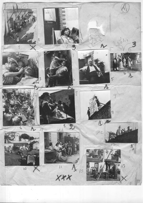 Uma palavra sobre a fotografia... simultaneamente ponto de chegada e ponto de partida. A fotografia cruzou todo o percurso multidisciplinar de Ernesto de Sousa (1921-1988), funcionando simultaneamente enquanto documento e pensamento, sem definição de fronteiras entre o registo das experiências de outros e os objetos artísticos que compuseram a sua bio-bibliografia. Os materiais fotográficos inéditos desta exposição demonstram o seu continuado interesse pela arte popular e a escultura portuguesa de expressão popular durante os anos sessenta. Sem prejuízo da especificidade desses mesmos objetos, evidenciamos o uso da fotografia enquanto ferramenta e expressão do seu pensamento, através de três assemblagens de meios e objetos: a realização de um filme, a curadoria de uma exposição e a edição de um livro. Esta análise confronta o olhar do autor com o objecto (referente) fotográfico e com os meios de produção e edição da imagem fotográfica, num exercício que revela a intimidade do trabalho de Ernesto de Sousa, tanto na aproximação às temáticas de estudo como nas condições materiais do seu trabalho, testemunhando a complexidade e experimentalismo do seu universo visual. Encontram-se em exposição as fotografias rasuradas da rodagem do filme Dom Roberto (1962), as fotografias da exposição Barristas e Imaginários: quatro artistas portugueses do Norte organizada na galeria da livraria Divulgação (Lisboa, 1964), fotografias publicadas no álbum Para o Estudo da Escultura Portuguesa (Lisboa: ECMA, 1965) e material ainda inédito do levantamento sobre a “Escultura Portuguesa de expressão popular, histórica e atual”, que Ernesto de Sousa compilou durante os anos em que foi bolseiro da Fundação Calouste Gulbenkian (1966-68). A prática fotográfica de Ernesto de Sousa e a representação gráfica dos pequenos contactos em páginas soltas compiladas em álbuns remonta à transição dos anos quarenta para os cinquenta do século passado, constituindo possíveis guiões visuais para os documentários e filmes publicitários que realizava para a Shell e para a Ford, muitos dos quais ainda se encontram por identificar. São documentos amadores, que transmitem uma narrativa social e política e já demonstram um sentido estético. A simbiose que o cinema documental opera entre diferentes artes e disciplinas: entre a fotografia e a literatura, entre a investigação social e histórica, levaram Ernesto de Sousa a desistir do Curso de Ciências Físico-Químicas e a ir estudar História do Cinema e Cinematografia na Sorbonne (Paris) entre 1949 e 1952. No plano teórico, a reportagem e edição fotográficas relacionar-se-iam diretamente com o seu envolvimento profissional, já enquanto chefe de redação, em revistas especializadas em “Fotografia, Cinema, Som, Rádio, Artes Gráficas e Propedêutica da Publicidade”, como a Plano Focal, da qual se publicam apenas quatro números entre Fevereiro-Maio de 1953. No ano seguinte, dirigindo a segunda série da revista Imagem [1], Ernesto de Sousa documenta fotograficamente uma série de reportagens jornalísticas sobre filmes e realizadores e entrevistas a atores que realizara em Paris. Foi em Fevereiro de 1959 que Ernesto de Sousa publicou uma das fotografias (não identificada) que primeiro nos remetem para a temática da arte popular: uma imagem da guarita do bonecreiro António Dias (1920-1983). A fotografia é publicada juntamente com um conto inédito de Leão Penedo, dando continuidade à publicação de uma série de textos que a revista Imagem iniciara com as crónicas de Eurico da Costa (Diário de Férias) e de Alves Redol (Carnaval na Nazaré), a pretexto de “atrair a atenção para uma realidade nacional [que estaria] na base de um cinema verdadeiramente português e novo, e [que queria] mostrar, também, como essa realidade [era] rica, atraente e, sobretudo, imperiosa.” [2] Em Maio de 1959, Leão Penedo registava o título Dom Roberto, que se destinava ao argumento cinematográfico com a realização de Ernesto de Sousa. A associação entre ambos ficaria registada graficamente através da associação entre texto e imagem, na pág. 467 da revista Imagem. [3] No final dos anos cinquenta Ernesto de Sousa dedicava um dos seus estudos sociais e etnográficos aos espetáculos de fantoches e particularmente a António Dias, cuja guarida publicitava o “Teatro Dom Roberto”. Esta e outras fotografias estão agora expostas na XIX Bienal de Cerveira, juntamente com um conjunto inédito de fotolitos [4], para onde Ernesto de Sousa transferiu mais de uma centena de negativos que retratam a rodagem de Dom Roberto, com o propósito de destruir, de forma experimental, o seu suporte e enquadramento pré-definido. A intervenção química na imagem fotográfica é abrupta. Numa atitude claramente crítica da capacidade interventiva dos media, Ernesto destrói o múltiplo fotográfico e provoca um recuo perante um mundo falsamente real. Contemporaneamente, e até ao início da rodagem de Dom Roberto (Agosto 1961), Ernesto publicou regularmente as suas fotografias numa série de 15 artigos que dedicou aos “Aspectos da Escultura em Portugal” na revista Seara Nova (entre Março 1959-Agosto 1961). Desta forma, começou por enumerar alguns exemplos da escultura portuguesa de expressão popular; domínio das artes que considerava histórica e esteticamente menos estudado. Assume assim à escala nacional o seu interesse pelo espaço social da arquitetura e pelo carácter discursivo da escultura que lhe está associada. Ernesto de Sousa incorporou estas fichas num estudo mais amplo apresentado na publicação Para o Estudo da Escultura Portuguesa (1965), um álbum onde o estudo imagético e a análise estética se complementam. Afirmando uma iconografia que não é objeto da crítica e da especialização historiográfica, Ernesto de Sousa consegue ser “visualmente polémico”. A arte popular permite- lhe explor