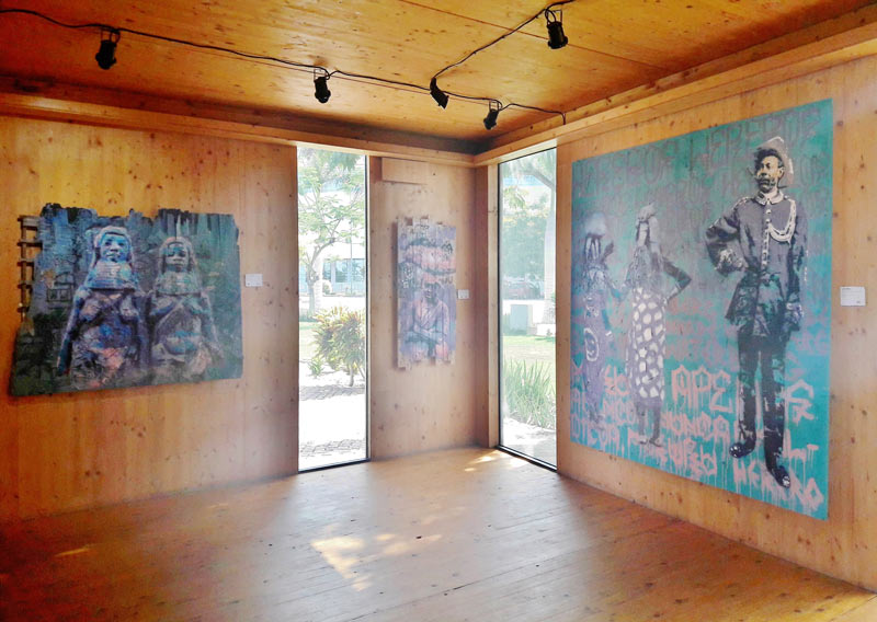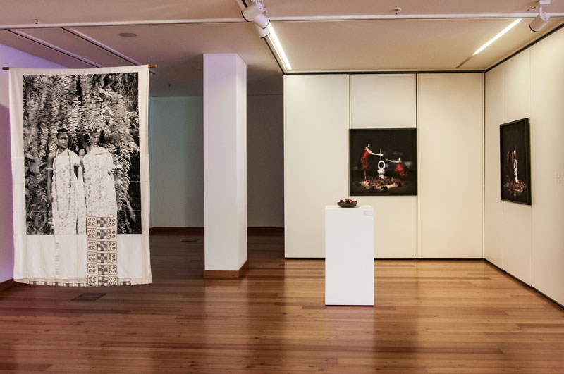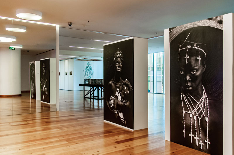 No final de 2017, tive a oportunidade de visitar algumas exposições em Luanda. Dentre uma série de visitas a espaços museológicos e galerísticos, arquivos, estúdios de artistas e outros locais de interesse no espaço urbano da cidade, e para além de outros eventos relevantes (como a estreia do documentário Do Outro Lado do Mundo, 2017, de Sérgio Afonso, no Centro Cultural Brasil – Angola), destaco uma exposição colectiva e três individuais: Being Her(e), comissariada por Paula Nascimento (Angola) e Violet Nantume (Uganda) na Galeria do Banco Económico (23 Novembro de 2017 – 31 de Janeiro de 2018), um projecto itinerante da plataforma !KAURU – Contemporary Art from Africa (África do Sul), em parceria com a galeria angolana This Is Not a White Cube (TINAWC) e com Beyond Entropy Africa (Angola), entre outros parceiros, e que contou com mesas-redondas a 24 de Novembro de 2017 e a 29 de Janeiro de 2018; 50 Anos Vivendo, Criando, de António Ole (Angola), no Instituto Camões (7 de Novembro – 21 de Dezembro de 2017); Luvuvamo + Nzola | Paz + Amor, de Paulo Kapela (Angola), no ELA – Espaço Luanda Arte (24 de Novembro – 13 de Dezembro de 2017); e Senhores do Vento, de Thó Simões (Angola), na galeria Mov’Art (27 de Outubro – 24 de Novembro de 2017). De regresso a Lisboa e já em 2018, ainda fui a tempo de ver Fuck It’s Too Late!, a primeira individual de Binelde Hyrcan (Angola) em Portugal, com curadoria de Ana Cristina Cachola (Portugal), na galeria Balcony (16 de Novembro de 2017 – 13 de Janeiro de 2018). Selecciono estas cinco exposições por motivos bem específicos, que passarei a explicitar. Todas elas assumem uma relevância particular, no âmbito mais alargado da pesquisa que me tem ocupado nos últimos anos em torno da arte contemporânea produzida e disseminada em vários contextos, nomeadamente, embora não exclusivamente, africanos e diaspóricos. Fundamento as razões que presidiram à selecção, reconhecendo que qualquer gesto de escolha é inevitalmente subjectivo e implica a exclusão de outras iniciativas que teriam merecido atenção. Being Her(e) reúne obras de catorze mulheres artistas oriundas de sete países africanos a trabalhar no continente e/ou na diáspora: Stacey Gillian Abe (Uganda), Phoebe Boswell (Quénia), Mimi Cherono Ng’Ok (Quénia), Eurídice Kala (Moçambique), Lebohang Kganye (África do Sul), Keyezua (Angola), Immaculate Mali (Uganda), Mónica de Miranda (Angola / Portugal), Nandipha Mntambo (África do Sul), Zanele Muholi (África do Sul), Aida Muluneh (Etiópia), Zohra Opoku (Gana), Jessica Atieno Ounga (Quénia) e Ana Silva (Angola). O projecto teve início em 2016 com a exposição colectiva Being and Becoming: Complexities of the African Identity, comissariada por Paula Nascimento e Rafael Chikukua (Zimbabwe) na galeria UNISA em Pretória. Continuou em 2017 com Being Her(e): Meditations on African Femininities, comissariada por Refilwe Nkomo (África do Sul) e Thato Mogotsi (África do Sul), sob orientação de Paula Nascimento e Violet Nantume, no Constitution Hill em Joanesburgo. A sua presença em Luanda, sob a forma desta nova exposição, constitui a primeira instância de uma dinâmica de itinerância através da qual a !KAURU pretende fortalecer redes de colaboração artística a nível regional e continental. Ao contrário da exposição de 2016 em Pretória, as iniciativas em Joanesburgo e Luanda em 2017 e 2018 foram compostas exclusivamente por obras de mulheres artistas, com o intuito de examinar as complexidades das identidades africanas no feminino e de fazê-lo a partir da noção fundamental de corpo, ou seja, de uma subjectividade que se assume como simultaneamente corpórea, psíquica, social, política e historicamente inscrita. Falar de identidade africana e de identidade feminina – de qualquer tipo de identidade – implica uma conjugação no plural e no gerúndio, ou seja, o reconhecimento da forma como cada sujeito, tanto individual quanto colectivo, é constituído por uma multiplicidade de posicionalidades identitárias, cuja concretude e especificidade (being) não comprometem o seu potencial de transformação e abertura (becoming) [1]. Esta exposição assume uma relevância particular por três razões essenciais. A primeira, de pendor feminista, diz respeito ao facto da exposição abrir um espaço decisivo de visibilidade para vozes femininas não só curatoriais e galerísticas, mas acima de tudo artísticas – algumas das quais já mais do que estabelecidas no panorama artístico internacional, e outras emergentes – num contexto que, tal como muitos outros, tem sido caracterizado por uma predominância da presença e das vozes masculinas. A segunda razão, de inspiração pan-africanista, concerne o facto da exposição conceder essa visibilidade a obras que, muito embora valham por si, individualmente consideradas, são curatorialmente colocadas num diálogo regional, continental e diaspórico. Este gesto é tanto mais significativo quanto certos legados históricos e certas realidades económicas têm implicado demasiadas vezes o privilegiar de ligações à Europa e a consequente falta de comunicação, de circulação e de conhecimento mútuo entre os agentes culturais do continente. Em terceiro lugar, nota-se uma preponderância da fotografia, do vídeo, da instalação e da performance, o que, neste contexto artístico, adquire especial relevo, já que constrasta com uma frequente ênfase local na pintura e na escultura. A arte contemporânea angolana que se internacionalizou tem sido profícua no que aos lens-based media diz respeito, mas isso nem sempre se traduz numa presença suficientemente forte destes meios quando se olha para lá do que uma geração e um circuito artísticos mais internacionalizados têm produzido. Apesar desta preponderância, a exposição não abdica de uma interessante diversidade de meios. Às obras fotográficas e videográficas de Abe,