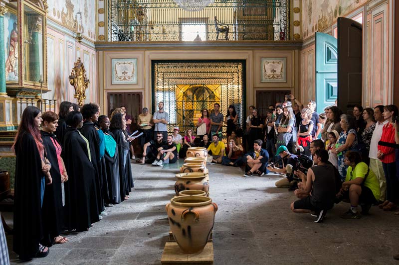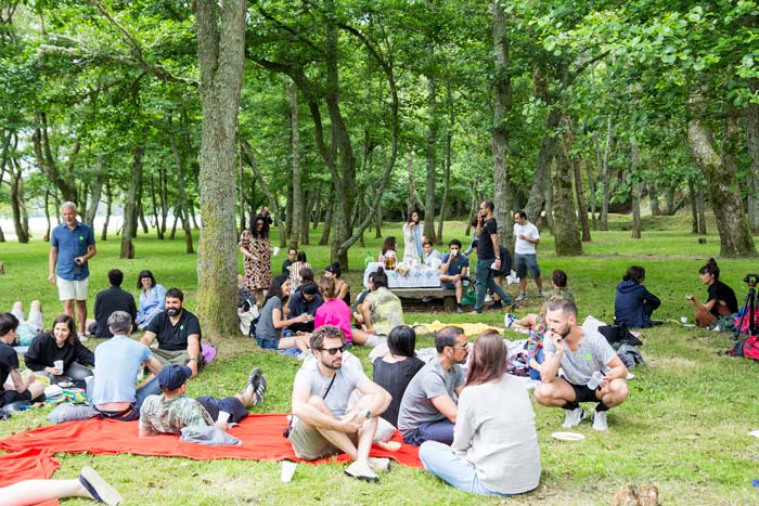 Foi crucial que eu participasse do passeio promovido pela Talkie-Walkie - projeto das arquitetas Ana Vieira e Matilde Seabra, baseadas no Porto, e organizadoras de expedições pela ilha com profissionais locais – para que eu soubesse de informações como as citadas acima. Num dia chuvoso de muita neblina, eu estava entre as dez pessoas que aceitaram visitar locais com vistas panorâmicas sem poder vê-las (voltei num dia ensolarado), mas que tiveram informações privilegiadas compartilhadas pelo vulcanologista Rui Coutinho. “Imagine o que esta experiência não desperta num artista?”, disse-me Matilde Seabra, segurando pedras basálticas nas mãos. Eu estava pensando a mesma coisa em todo o percurso: naquele lugar mágico, tesouros estavam por todo o lado. Em outro passeio, desta vez com o grupo repleto do Walk&Talk – cerca de cinquenta pessoas para o final de semana de abertura – fizemos um piquenique gigante na Lagoa de Furnas, muito bem organizado pela equipa. Depois de um banquete do cozido no vapor do vulcão (é uma mistura de carnes com vegetais deliciosos), pude conversar com artistas do mundo todo, enquanto descansávamos nas toalhas estendidas: alguns participantes do já citado circuito de exposições, outros do circuito de performances, alguns ainda planeavam as suas obras a serem produzidas no circuito ilha e, por fim, artistas que iniciavam as suas residências e que irão trabalhar em obras para serem apresentadas na próxima edição do festival. Conversando com alguns membros do coletivo londrino The Decorators, Carolina Caicedo e Mariana Pestana, entendi que o trabalho deles para o circuito ilha foi convidar sete artistas que abordassem o tema expedição: a taiwanesa Rain Wu, por exemplo, descobriu que, em 1811, a formação de uma nova ilha açoriana foi descoberta por um navegador inglês que pediu à rainha para poder batizá-la de Sabrina; quando ele voltou para fincar a sua bandeira a ilha não estava mais lá (a obra que ela desenvolveria nos próximos dias seria baseada em factos curiosos como esse). Entre essas e outras histórias, eu nem reparava no forte cheiro de enxofre que emanava dos buracos dos “restaurantes” administrados por locais que foram nas primeiras horas da manhã preparar o cozido. Mesmo cansados, o destino da noite era sempre o pavilhão W&T. Era ponto de encontro de públicos de diferentes idades, que assistiam a DJs e performances como a do Colin Self, vestido de peruca e maquilhagem para uma apresentação de temática queer - abordagem provavelmente não muito comum para os velhotes locais, mas eles também dançavam animados. Numa noite dessas, conheci um casal de irmãos adolescentes vindos de Brasília, que moravam em Ponta Delgada há 3 anos. “Durante o ano, frequentamos três bares e vemos sempre as mesmas pessoas. Adoramos que esse festival traga tantas caras novas”, exclamaram. (Nas três noites seguintes eles “bateram cartão” no pavilhão). Outros jovens locais trabalharam voluntariamente no festival, num programa oferecido pelo Walk&Talk. “Nós fazemos tudo aqui: montamos a loja do festival, arrumamos o jantar, produzimos obras...é uma oportunidade única para conhecer e conversar com tantos artistas”, disseram os amigos António e Mitó, ambos de 18 anos, que também participavam das festas e jantares. Tudo resultado de uma direção artística cuja grande preocupação é aproximar o cenário internacional da arte dos jovens, levar o festival para outros cantos da ilha, trazer artistas para as escolas locais e incorporar jovens artistas açorianos ao festival. Desde o ano passado, o Walk&Talk tem o apoio da DGArtes, o que sem dúvidas facilitou na organização. “Quando isso aconteceu, tivemos duas opções: a de aumentar a escala do festival e investir em mais obras ou a de melhorar as condições de trabalho de artistas e curadores. Nós escolhemos a segunda”, conta Sofia Botelho, diretora do evento. A escolha acertada é perceptível em cada mínimo detalhe. Nos últimos 9 anos, a persistência de Jesse James, um dos fundadores do evento aos 22 anos de idade, foi crucial para que ganhasse cada vez mais fôlego: “A pergunta que queríamos responder ao criar o festival era: como fazer da periferia um centro? Queríamos abrir a ilha para o mundo e vice-versa. E fizemos!”. O reconhecimento do seu esforço vem estimulando também o crescimento do cenário de arte local, a exemplo do Arquipélago – Centro de Artes Contemporâneas, criado em 2015, e da Oficina Ateliê e Galeria, onde Leonor Pereira expõe e comercializa trabalhos sobre papel feitos por ela e outros artistas. “Por conta das linhas aéreas que agora chegam aqui, é cada vez mais fácil decidir-se por ficar na ilha. O lado de fora não é tão fora assim”, afirmou a artista. “Então as pessoas não vêm mais apenas para realizar projetos pontuais mas vivem e passam o ano aqui. E isso estimula a sensibilidade dos habitantes perante a arte, já que lidam com sua produção durante o ano todo”. Comandado por Bernardo Brito e Abreu, o Pico do Refúgio é uma residência artística e hotel charmoso, na quinta que herdou da família e datada do início do século XVII. Marinheiro durante 20 anos, Bernardo é hoje um dos agitadores culturais da ilha e recebeu-nos com queijos, vinhos e uma morcela deliciosa para contar sobre a residência inaugurada em 2015, que já recebeu mais de vinte artistas. “Eu achava que sabia tudo sobre a minha ilha até que artistas vindos do mundo inteiro chegavam aqui e me mostravam olhares totalmente diferentes sobre ela”, conta. Caminhamos alguns metros até a obra do sul-coreano Lee Hun Chung que, durante uma residência artística no local, construiu como site-specific uma cadeira de barro gigante com vista para o horizonte. E esse horizonte infinito é também o futuro que vejo para o Walk&Talk – que venha a próxima edição junto à comemoração de uma década de existência!