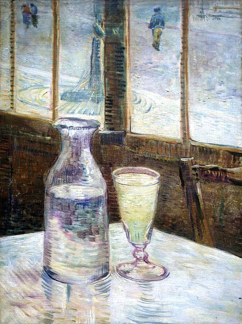 Terence McKenna (Food of the Gods, 1992), com formação em história da arte antes de se dedicar à etnobotânica, aponta uma singularidade arquitectónica da civilização Micénica (1600–1100 AC.) que precede a grega: as colunas dos palácios e templos em Knossos são em forma de cogumelos e há representações de papoilas e vagens de ópio em pinturas ou estilizações em altos relevos. A particular teoria da evolução de McKenna assenta na possibilidade de que a ingestão por macacos durante milhões de anos de cogumelos com agentes psicoactivos (Psilocybin) ter mudado o curso da civilização: melhor visão (contornos e distância), exponencial actividade copulatória (sucesso no grupo), consciência (liderança) e duplicação do tamanho do cérebro. O mundo começa a ser pintado em 33.000 AC. (Chauvet) e a escrita é inventada em 8.000 AC. coincidente com o fim da pintura em rochas e do degelo, que fez subir 100 metros o nível da água do mar (Idade do Gelo II). Os gregos e romanos tinham os deuses Baco e Dionísio a trabalhar no ministério do vinho e da fermentação. Na Grécia o assunto era tão importante que havia um extenso vocabulário para designar assuntos relacionados com a bebida: kraipale que significava grande bebedeira e grande ressaca, karebaria (cabeça pesada de beber), apokraipalismos (curar a ressaca) ou oinopoleion para taberna. O vinho na Grécia antiga só era bebível misturado com água, mel e outros preparados, incluindo cogumelos. Uma bebida mais antiga de composição desconhecida, a que também chamavam vinho (Kikeon), tinha constituintes químicos ativos de alcaloides alucinogénicos muito próximos do LSD. 3.000 anos depois... no final do séc. XIX, a ideia do artista como boémio estava liquefeita no imaginário da época. A poção mágica que alimentava a intoxicação dos humanos era o absinto. A Fada Verde, por causa dos efeitos alucinógenos que produz: fractais, separação de cores, fragmentação da percepção, etc. Édouard Manet pinta em 1859 Le Buveur d'absinthe e Edgar Degas L’Absinthe em 1876. Vincent Van Gogh executa uma pintura essencialmente modernista, L’Absinthe (1887) onde o objeto de representação está focado numa garrafa e num copo de absinto — apenas dois personagens numa única pintura — inédito. Por saber se não terá sido Paul Gauguin a cortar a orelha do amigo numa terrível discussão sobre pintura alimentada por absinto. Toulouse-Lautrec, desde que foi para Paris, nunca mais saiu de Montmartre e parava em todas as tascas de absinto para étouffer un perroquet (matar o bicho) a caminho dos bordeis que frequentava diariamente. Mandou fazer uma bengala oca que podia conter meio litro de absinto cuja tampa era um pequeno copo em vidro. O modelo do artista boémio é durante o séc. XX transposto e melhorado em Inglaterra e EUA a partir dos anos 20. Francis Bacon afirmava que era alcoólico desde os 15 anos e foi membro fundador em Londres do clube privado The Colony (1948). Os membros tinham de ser artistas e serem first and foremost raging alcoholics — os YBA foram todos sócios invertebrados do clube até fechar em 2008. O FBI (e o álcool) inventaram o expressionismo abstracto para afirmar a liderança da arte americana internacionalmente. Em Willem de Kooning, Franz Kline ou Jackson Pollock já não há representação mas a própria intoxicação, conflito, urgência, grito e autenticidade mediúnica da tinta debatendo contra o suporte (ARGH!). Pollock tinha o hábito, socialmente aceite, de ir a jantares de colecionadores no Upper East Side e urinar piamente nas suas lareiras (uma reminiscência do pai Leroy que fazia desenhos com urina na terra ou a invenção do dripping?). De Kooning só conseguia acordar depois de beber uma garrafa de whiskey e Jasper Johns glorificou a cerveja transpondo para bronze duas latas da Ballantine Ale (1960). Atualmente o mundo da arte contemporânea tem um poderoso propulsor intoxicante: a indústria do álcool. O champanhe é a água no calendário infindável de feiras, inaugurações, leilões, prémios, private-views e bienais. A saber: Dallas Art Fair - Ruinart; Art Basel Hong Kong, Basel e Miami - Ruinart (Host Partner); o Turner Prize tem desde 2004 o Gordon's Gin como o patrocinador principal num contrato de 15 anos, tendo pago 1 milhão de libras nos três primeiros anos; ARCO Madrid, Ruinart e Cervezas Alhambra; ARCO Lisboa, Ruinart e Esporão; Bienal de Veneza - Prosecco Canella; Frieze - Ruinart e Bombay-Sapphire; o prémio Absolut Vodka Art Award; a FIAC Paris tem a Pernod-Ricard com parceiro principal... Os indícios apontam para uma forte amizade histórica entre intoxicação e arte mas também na consistente empatia entre galerias e garrafas. Aparentemente as grandes marcas de bebidas encontraram ouro no mundo da arte. Vendem o lifestyle do artista e o álcool serve para celebrar vendas ou afogar fracassos. Fundamentalmente todos podem ser artistas: bebendo.