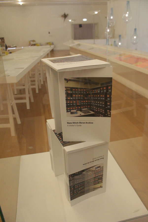 O arquivo vivo Em Arquivo Perpétuo: as publicações e os projetos editoriais de Hans Ulrich Obrist [1]: Hans Ulrich Obrist tem na sala de exposições da Biblioteca de Serralves até agosto uma exposição do seu arquivo. Este é um todo um projeto em si mesmo cujo processo é possível conhecer através do seu blog. Obrist é um curador marcante, importante e inegavelmente inteligente. Trabalha com os temas vanguardistas da arte em qualquer que seja a década, sendo a vanguarda muitas vezes a sua voz, mas o seu vincado interesse em publicações é para mim o que o torna um curador exemplar, aquele que enverga o ‘Obrist factor’. Numa era em que tudo se torna digital, numa era em que até as experiências táteis ou sensoriais se querem digitalizadas através de capacetes de realidade virtual e sensores 3D, o meu saudosismo pelo poder da palavra tátil leva-me a investigar e refletir sobre a tenacidade desde curador e de Sónia Oliveira, coordenadora da Biblioteca de Serralves. Este é um tema que me preocupa, a vida e relevância do arquivo, do acesso às publicações, do acesso tátil aos livros de artista e material impresso, e a disseminação real (versus virtual) do seu conteúdo. Em outubro de 2019, escrevi aqui mesmo na Arte Capital, ‘Problemas na Era da Smartificação: o arquivo e a vida artística e cultural regional’ e coloquei várias questões que esta exposição museológica do arquivo de Obrist respondeu, expandiu ou agravou. Vou revisitar estas questões. 2019: Pergunto-me qual é o valor que a correspondência entre e sobre artistas terá num futuro não tão distante? 2019: Como valorizar a vida pessoal do artista? 2019: Caberá, hoje em dia, ao artista imprimir esses e-mails importantes para marcar esses momentos? 2019: Será a imortalidade virtual o advento do novo formato de arquivo? O Point D’Ironie foi dos poucos objetos nesta exposição que me senti convidada a tocar. Trouxe também (não sei se com autorização) uma cópia de ‘Hurricane’ de HUO e Rirkrit Tiravanija, editado por Danny Snelson & Kenneth Goldsmith, e publicado por /ubu editions. No entanto após verificar no seu site a ubuweb afirma: ‘o nosso servidor e banda larga é doada por um grupo de intelectuais que pensam da mesma forma e acreditam no acesso livre ao conhecimento’ [4]. São praticantes abertos de pirataria artística e acreditam na disseminação da obra de arte, por isso, penso que ninguém virá correr atrás de mim à procura de um poema lascivo impresso ou fotocopiado em folhas de escritório A4. A questão que daqui emerge é mesmo se a valorização e disseminação são objetivos que se impedem. O projeto Point D’ironie tem uma relevância única pelo feito histórico da aproximação industrial à obra de arte e a pura dimensão relativamente à quantidade de pontos de distribuição. As correspondências pessoais por detrás de uma redoma são valorizadas através da sua museificação. E então este poema Hurricane? E então o livro ‘Hans Ulrich Obrist archive: A visitor’s guide’ cujo valor é guiar o visitante pela exposição, mas estava interdito o seu acesso, por culpa da redoma museológica? A verdade é que o material impresso tem uma dimensão distinta do livro, sendo Point D’Ironie e Hurricane híbridos, não consigo responder a esta questão.