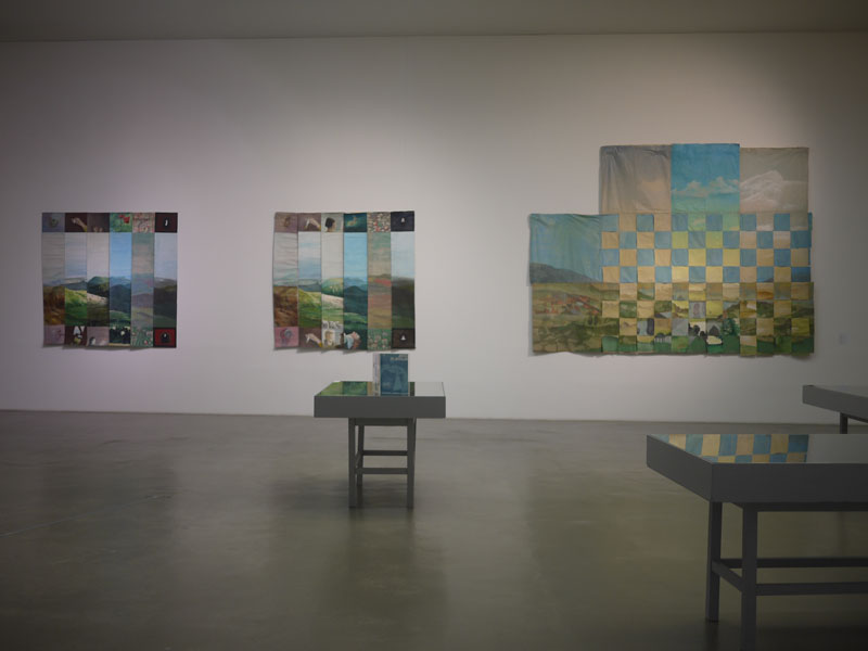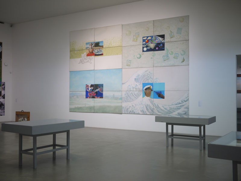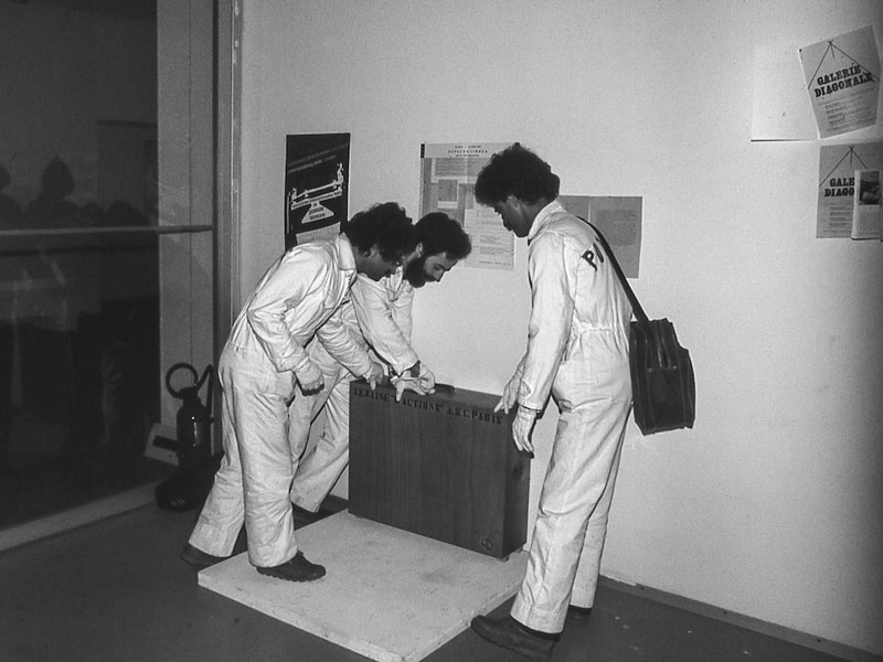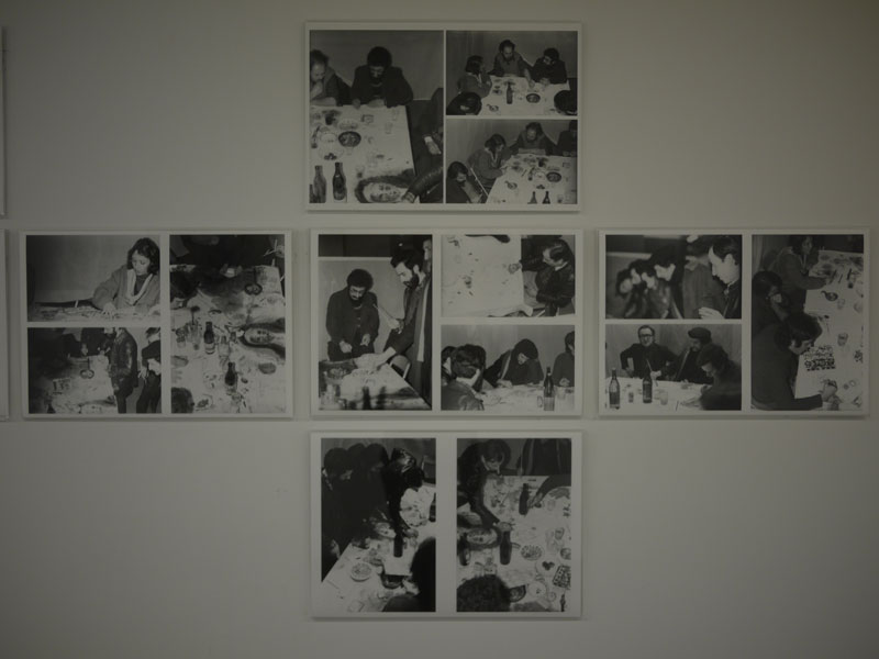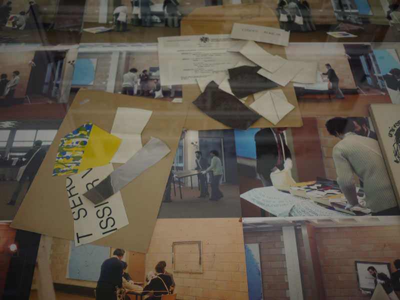Entre a Bandeira Nacional (1976), símbolo por excelência da “convenção coletiva” e os vestígios dos desentendimentos que marcaram as diferentes formações do grupo (no limite representações das “consciências individuais”); entre a mala do ARC (Museu de Arte Moderna de Paris, 1980) em que recolheram vestígios da sua participação além fronteiras e os relatórios enviados pelo grupo para o Serviço de Belas Artes da Fundação Calouste Gulbenkian, onde se incluem pedaços de pinturas performativamente reduzidas a arquivo institucional, e relatórios escritos na “primeira pessoa do plural”, esta exposição retrata a instabilidade política da democracia e a necessidade de reflexão e experiência instaurada pela mudança, apresentando-se como uma oportunidade para um estudo visual e cultural dos diversos registos que compõem a trajetória do grupo Puzzle. A recolha de arquivos fotográficos e fílmicos, e a compilação de recortes de jornal, catálogos, cartazes, correspondência, sons e outros materiais documentais, permite revisitar o trabalho performativo do grupo Puzzle, e também expor a proliferação e o desenvolvimento dos meios de documentação e debate cultural surgidos com a democracia. Além de devolverem o contexto em que estas obras surgiram, estes materiais visibilizam um duplo movimento: a grande curiosidade e atenção de artistas internacionais às mudanças do período pós-revolucionário, e a internacionalização de artistas portugueses através da participação em festivais. Produzidos no novo contexto de liberdade, estes documentos retratam igualmente o impacto social da aproximação da arte às populações mais periféricas. A sua reinscrição na história da arte em Portugal depende, tanto deste enquadramento político, social e cultural alargado, como de uma nova perspetiva historiográfica, centrada numa análise visual e material do conjunto da obra. A materialidade da pintura coletiva do Grupo Puzzle assenta no trabalho individual dos seus artistas, mas a sua singularidade como obra depende da participação coletiva. É a essência da sua estratégia performativa que nos remete para a complexidade de um espaço partilhado que só pode ser entendido em constante permuta. Só a justaposição das diversas obras e contextos lhes restitui a abertura e novidade discursiva com que merecem ser olhadas.