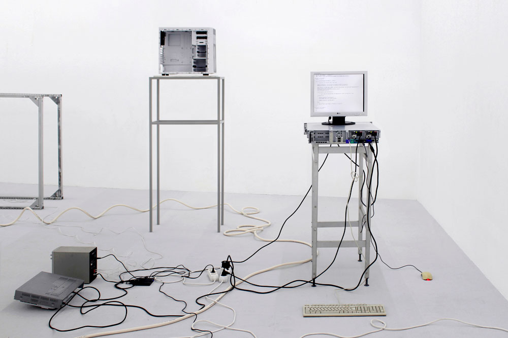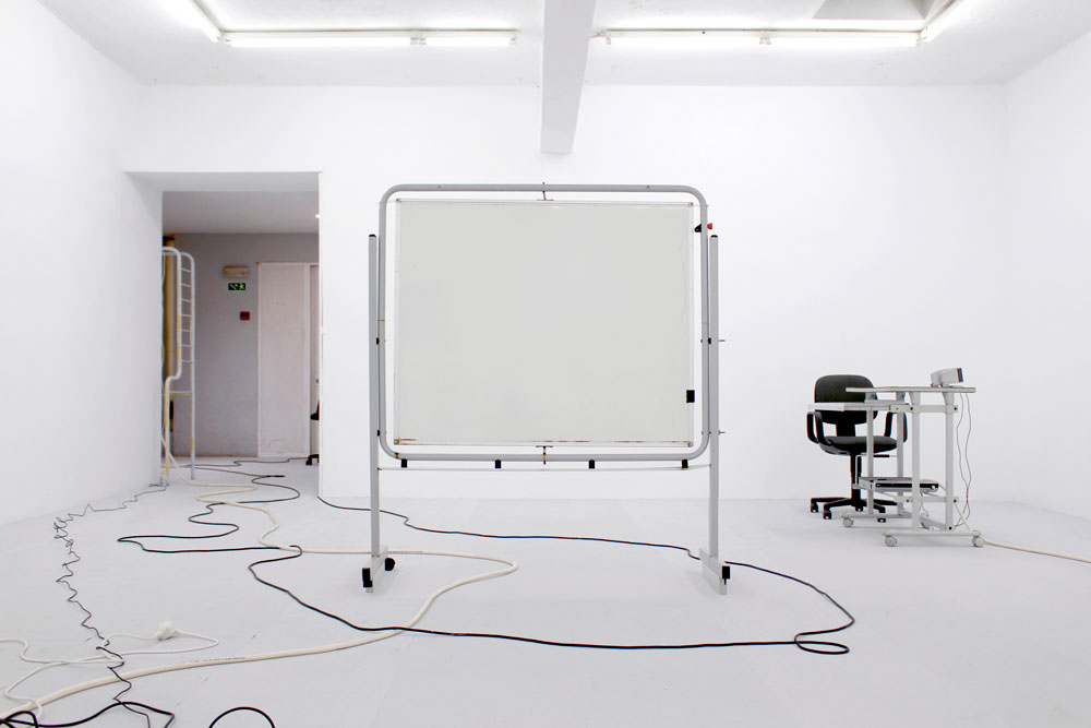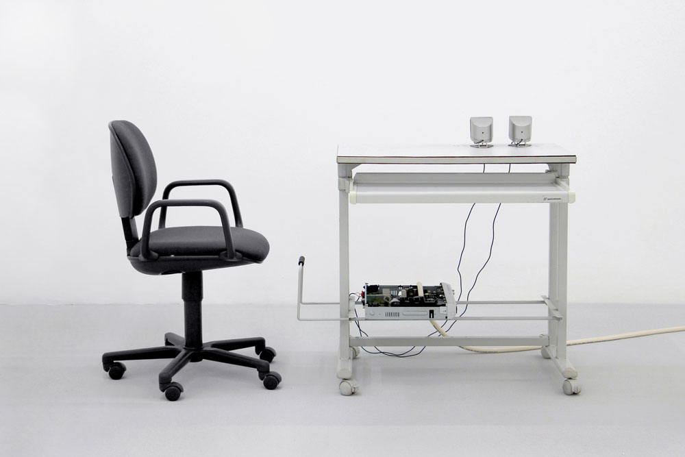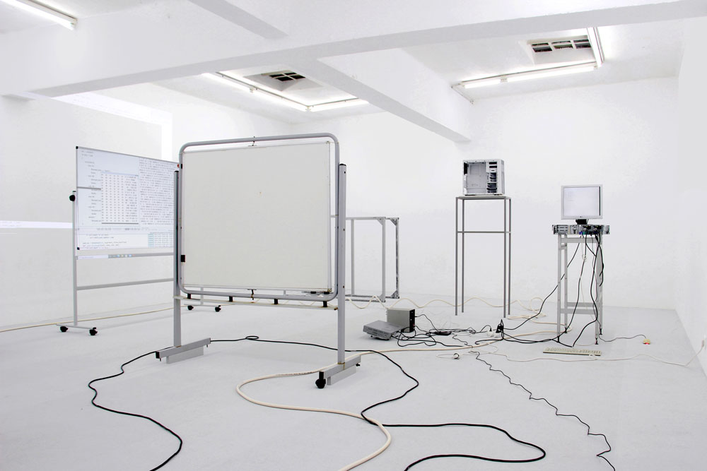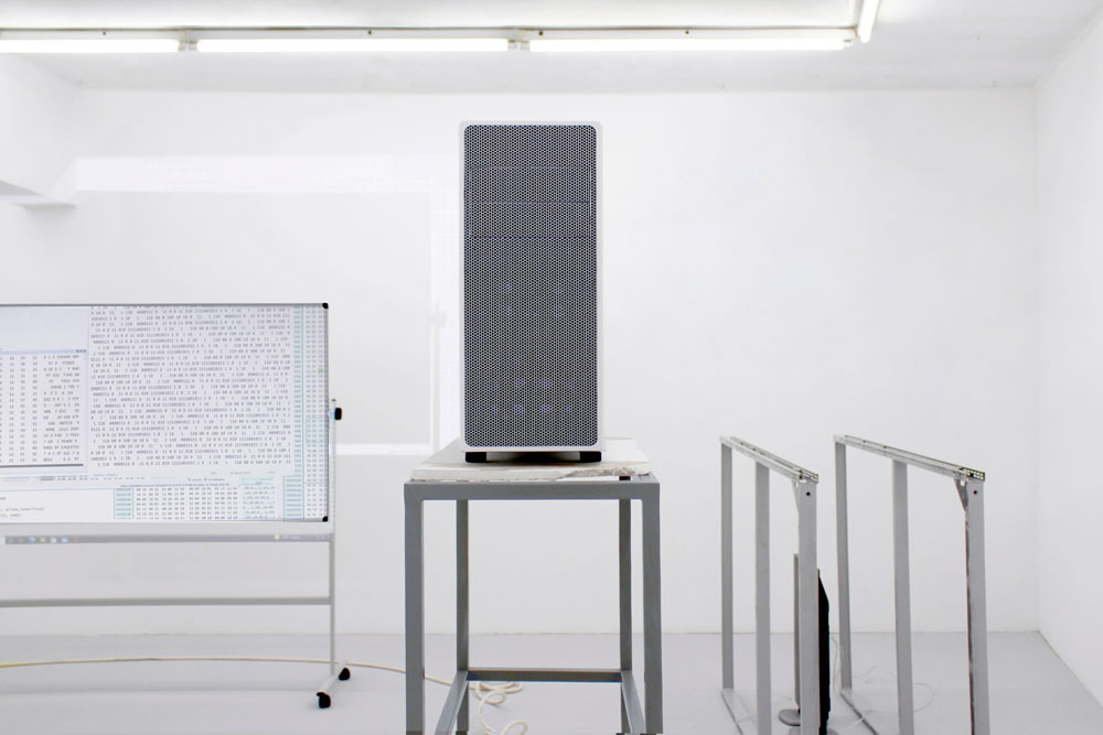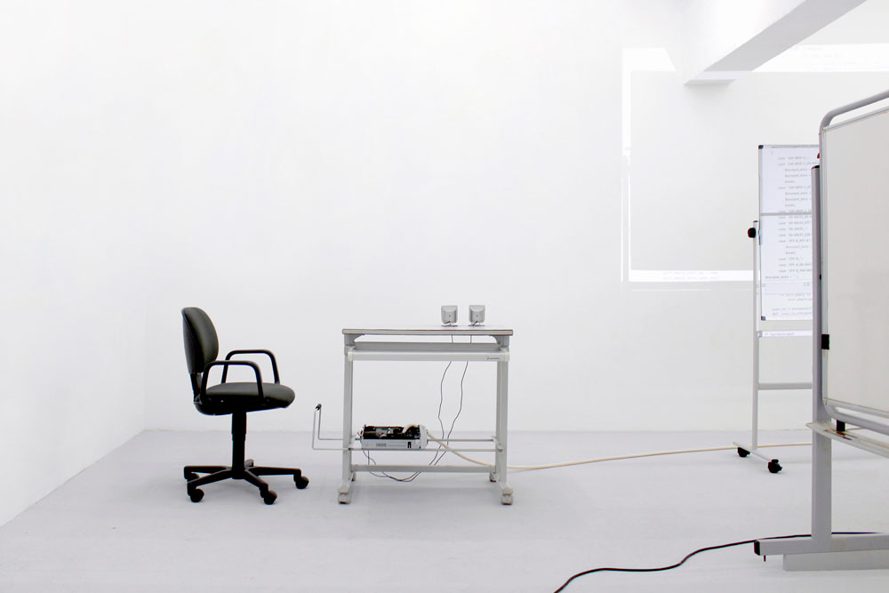 O nome Yota Ayaan, por exemplo, foi escolhido ao acaso e não tem um significado particular, exceto a aleatoriedade em si que, para o artista, tem mais significado do que aquilo que as palavras poderiam alguma vez transmitir. Yota Ayaan é o nome que se encontra na porta do escritório onde tanto o artista como amigos e colaboradores deste trabalham. O artista é, portanto, um funcionário da sua própria corporação. Este escritório, ao contrário da maioria das corporações, está mais preocupado com a conceptualização e a produção artística em si do que com a reivindicação de qualquer autoria sobre ela. Esta produção inclui aparelhos híbridos para a conversão de som em dados e vice-versa, paisagens ciborgianas áridas, sites de hacking ético2 [2], e uma conta de instagram em branco. É possível associar a aleatoriedade à incerteza e, ao mesmo tempo, à necessidade de controlo num processo de tomada de decisão. Uma das questões culturais e políticas mais urgentes do nosso tempo é, precisamente, a forma como a tomada de decisões está a ser conduzida na era digital. Esta é uma questão com que muitos artistas e filósofos, bem como economistas e políticos, se têm debatido atualmente. Em Machine Dreams, Philip Mirowski (2002) argumenta que na teoria da economia política, por exemplo, a dificuldade que existe na tomada de decisão resolve-se retirando os humanos da equação. Se a racionalidade humana é um problema para a tomada de decisões económicas, substituam-se os humanos pela computação, por não-humanos racionais, e veja-se o que acontece - é assim que Mirowski coloca a questão. A fórmula mais difícil de criar e acrescentar a esta equação é, no entanto, o algoritmo da aleatoriedade. Operações algorítmicas são o modelo em código daquilo que devem duplicar, e o que elas duplicam é precisamente tudo, assim como tipos muito específicos de aleatoriedade que existem no mundo. Esta introdução pode ajudar-nos a compreender o que Yota Ayaan é, de onde vem, e no que visa. Primeiro, é o resultado de um tipo específico de algoritmo para a aleatoriedade - um algoritmo que poderia ser criado a partir de um sonho ou ao caminhar com os olhos fechados. O que propõe com produções artísticas como Plant Data (2021), The Basket (2021) ou Postscript (2022) - para mencionar apenas três projetos recentes - é tornar visível diferentes tipos de representação algorítmica e, ao mesmo tempo, compreender o que eles estão a tentar duplicar. Esta é uma preocupação partilhada por Hito Steyerl no seu livro Duty Free Art: Art in the Age of Planetary Civil War, quando ela observa: "Se os modelos para a realidade consistem cada vez mais em conjuntos de dados ininteligíveis para a visão humana, a realidade criada depois deles pode ser parcialmente ininteligível também para os humanos" [3] (Steyerl 2017, 71). Traduzir dados em expressões audiovisuais é, em parte, um motivo que Yota Ayaan usa para perturbar algo que se normalizou no mundo - uma vez que, como Steyerl também observa: "Não ver nada inteligível é o novo normal. A informação é transmitida como um conjunto de sinais que não podem ser captados pelos sentidos humanos” (Steyerl 2017, 47). [4] Mas é também um motivo para Yota Ayaan procurar acrescentar ao mundo algo que está em falta - pelo menos ao nível da lógica e da inteligibilidade humana. Plant Data faz uso de tecnologia avançada para a gravação de dados de áudio captados a partir das emissões acústicas de plantas, dados estes reproduzidos pela primeira vez neste projeto. The Basket explora a telepatia, a visualização remota e a inteligência extra-sensorial, para redefinir os limites da nossa compreensão acerca do que é a consciência e a comunicação humanas; e Postscript é uma instalação que inclui um multicanal de som e vídeo em loop durante 9 minutos, mobiliário de escritório, computadores, servidor de Internet, monitores, altifalantes, cabos eléctricos, routers wi-fi e papel de parede para criar um ambiente propício à audiovisualização de dados, fórmulas codificadas e expressões algorítmicas. Em todos esses projetos aquilo a que temos acesso é o proxis, ou seja, a lógica algorítmica de algo - sejam elas plantas, a consciência humana ou os próprios computadores. Esta lógica algorítmica torna-se uma espécie de essência, em termos heideggerianos. Algo que atravessa toda a matéria, e não-matéria. O mais recente trabalho de Yota Ayaan, Postscript, mantém uma ‘estética do escritório’ que se tem tornado a marca registrada dos ambientes onde este artista e sua corporação operam. O espaço do escritório funciona como um proxi para o estúdio de artista, transformado a partir de dentro pelo próprio algoritmo. Este é uma espécie de habitat natural do algoritmo, da informação na sua forma mais pura, na sua forma vetorial. O escritório representa para a classe dominante do nosso mundo globalizado, o lugar de excelência para se "fazer dinheiro”; é o lugar onde se podem acompanhar todas as transacções comerciais no mundo graças às cadeiras estofadas, às mesas de design, aos computadores poderosos e às salas climatizadas com ar condicionado automático a que obrigamos o nosso corpo a adaptar-se. O escritório pode também ser visto como o local de nascimento daquilo a que McKenzie Wark no seu livro Sensoria chama de ‘classe vetorialista’: "Enquanto que a classe capitalista possuía os meios de produção, a classe vectorialista possui o vector de informação. Esta é a classe dominante do nosso tempo" (Wark 2020, 56). [5] É seguindo esta lógica que o escritório na instalação artística de Yota Ayaan se pode tornar uma espécie de espaço reservado para o caos da guerra da informação que acontece todos os dias. Quanto à instalação audiovisual de Postscript, Yota Ayaan revela adoptar um processo criativo interessante: sistemática e obsessivamente grava sons, 