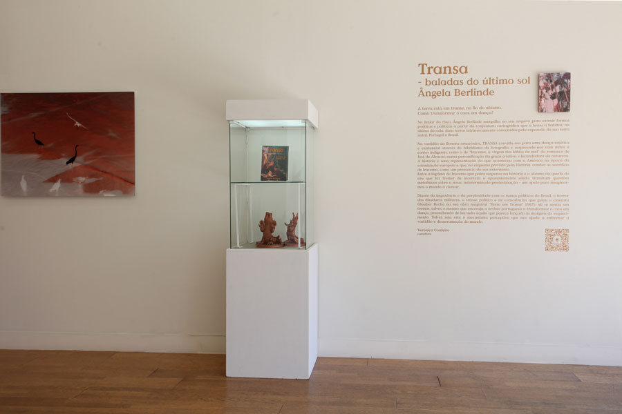 Em Transa_ Baladas do último sol, Ângela abre-se à experimentação para criar uma obra híbrida e multidisciplinar que recorre à fotografia, à literatura, à banda desenhada, à pintura e ao cinema, incorporando diversos recursos artesanais, digitais, analógicos e escultóricos, construindo um trajeto inspirado pela estética do afeto mas, também, possivelmente, inverso à sua obra anterior “Coração de Índio”. O olhar da artista é retrospectivo e experimental, o que implica um movimento perceptual dual de dentro para fora, e de fora para dentro. Nessa cartografia híbrida, móvel, o ecossistema dominante é o do espaço “entre”: entre-tempos, entre-técnicas, entre-etnias, entre-espécies, entre-linguagens, entre-formatos, entre gritos e sussurros, realidade e ficção, tristeza e exaltação.