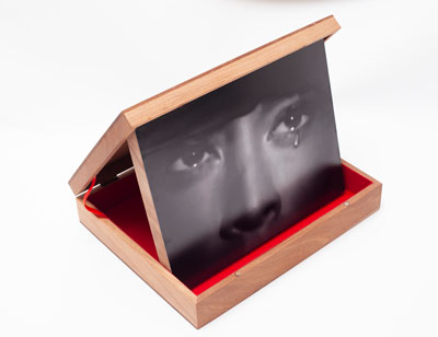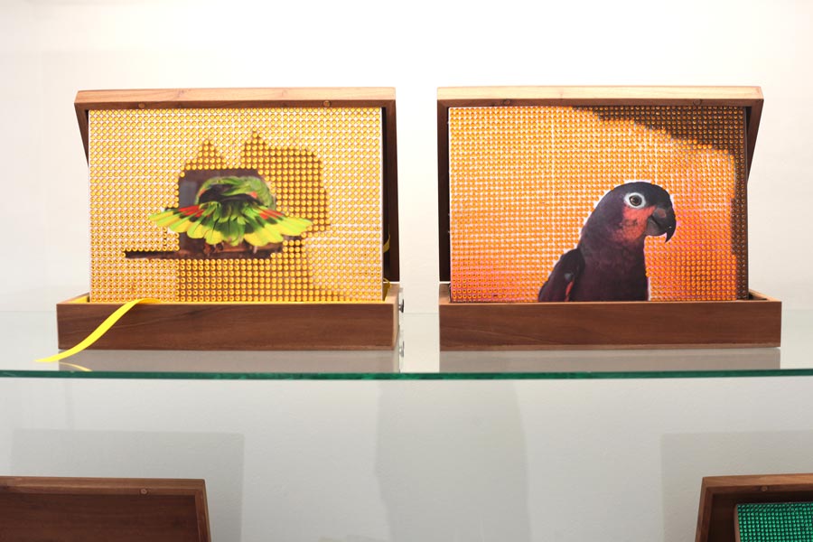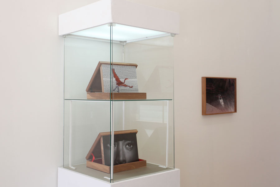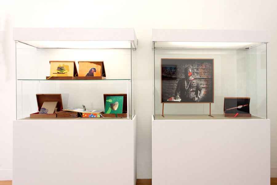Alegoria, história e ficção do real invadem o presente e ali ficam, para embaralhar a linearidade da História ocidental e reabrir a história mal contada e resolvida. A fotografia aqui entra como ferramenta de seleção, enquadramento, corte, registro e dispositivo de livre apropriação, ressignificação, transferência espacial e reconstrução pictórica de uma obra que nasce no imaginário europeu colonial na selva colonizada, e retorna, agora, em imagens pictóricas, apontando a flecha do nativo cativo de volta ao seu progenitor, ou, quem sabe, a quem? Eis a questão. Uma obra repleta de ironia, e assim mesmo, imensamente amorosa. Eis uma resposta. A utilização de elementos ornamentais e de pigmentos e minerais em estado natural interrompe a continuidade plana da superfície bidimensional da imagem fotográfica e dirige o olhar ao significado do estranhamento. A lágrima de Iracema nos conduz diretamente ao final trágico de sua história, e assim sendo, à atualidade da condição indígena e ecológica no Brasil. As imagens contidas em caixas que à sua vez contêm pó de urucum, entre outros pigmentos nativos, instauram um jogo com as possibilidades da percepção do olhar, e da imaginação. Mexendo as caixas para os lados, cobrimos mais um lado da imagem e desenterramos outro, e vice-versa. A história está viva e em constante reconstrução. Assim, nesta obra, os elementos que hoje lutam contra a ameaça de sua própria extinção foram transformados em raios X, radiografias das almas que irão sussurrar em nossos ouvidos sobrevoando as terras queimadas e aplanadas da Amazônia, vazias de sua densa fauna e flora tropical, se as coisas continuarem a andar na direção em que estão indo. Claudia Andujar luta há mais de cinco décadas pela proteção do índio e do ecossistema sadio, natural da Amazônia, do Brasil, do mundo. O fúcsia infravermelho de sua inesquecível obra-grito de 1976, a maloca do rio Catrimani rodeada por uma selva tão protetora quanto vulnerável, vem à mente nas imagens que, aqui, Ângela assinala por meio do mesmo bramido estético.