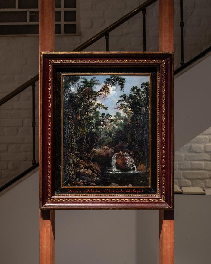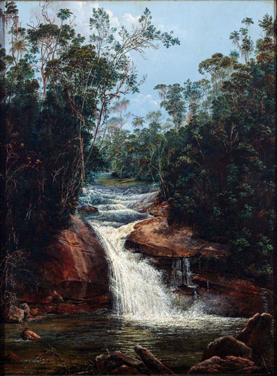 Nicolau Facchinetti, O Paquequer em Theresópolis - Cascata na Fazenda Soledade, 1880. Óleo sobre madeira, 26 x 38 cm. © Jaime Acioli