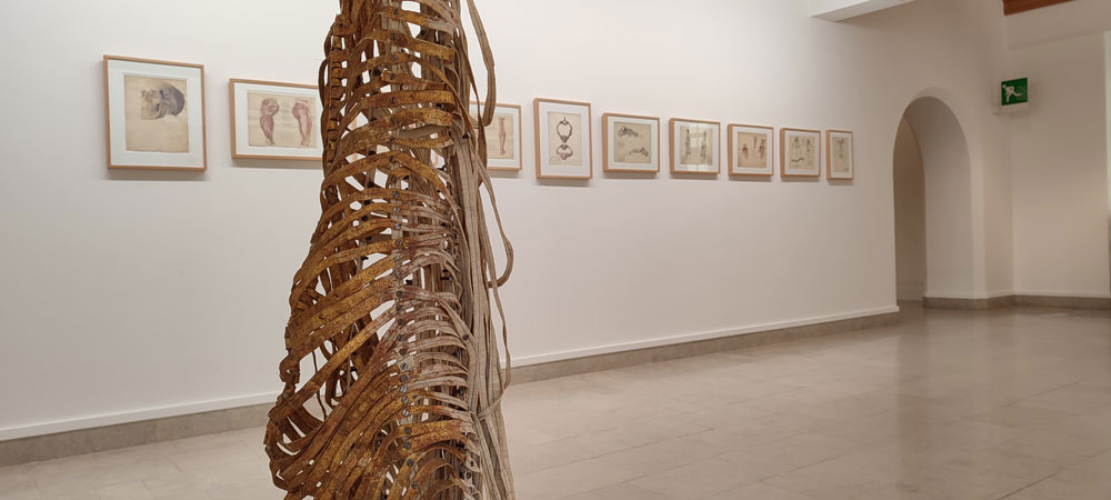 O corpo é desde as pinturas rupestres uma das temáticas mais prevalentes na história da arte. E assim o vai continuar a ser. Somos corpo, vivemos nele, ele possibilita, facilita, impede e dificulta. Ele vive, regista, expõe e fala. Somos esculturas de matéria andante e a natureza mimética da arte puxa-nos a trabalhar este blob de matéria, da forma como a nossa identidade, personalidade e biologia comanda. O nosso corpo não é alheio a discussões menos físicas, com implicações psicológicas, emocionais, sociopolíticas e espirituais da nossa vivência. Também não é alheio ao nosso corpo, nos compararmos com outros corpos, até de outros seres, e por extensão a outras matérias. Podemos dizer o corpo de tantas coisas porque o corpo é na realidade uma definição quer formal quer de conteúdo, representando e contendo ambas a figura que delineia e o seu interior simultaneamente. É um território. Em agosto de 2023, em Lisboa, puderam-se visitar (pelo menos) três exposições sobre o corpo. Enquanto artista, editora e escrevente que enfrenta problemas de saúde, pratica performance e escultura, e acabou de visitar um festival de dança, música e corpo, foi claro para mim o chamamento a visitá-las e assim refletir sobre ‘O teatro anatómico’ na Fundação Arpad Szenes Vieira da Silva de Maria José Oliveira e Vieira da Silva com curadoria de João Pinharanda, ‘Todo o Corpo é Político’ na Sociedade Nacional de Belas Artes com curadoria do grupo de pós-graduação em Estudos Curatoriais da Universidade Nova de Lisboa, FCSH, e por último ‘A Sphere of Water Orbiting a Star’ no Hangar – Centro de Investigação Artística, dos Otolith Group (Anjalika Sagar e Kodwo Eshun) com curadoria de Margarida Mendes. O título ‘Teatro Anatómico’, enigmático, excitante e carregado, atraiu-me imediatamente. Imaginei logo uma encenação de alas cirúrgicas de hospitais antigas onde desde a idade média se operava com um público espectador presente, em ambientes não tão estéreis quanto deviam, recheadas de esculturas e desenhos destas duas artistas portuguesas. Avivada estava também a minha atenção por ver frente a frente o trabalho de duas artistas cujo corpo de trabalho se conta na história da arte portuguesa. João Pinharanda menciona no texto que acompanha a exposição, um aspeto interior para o exterior, manifestando-se enquanto a observação de Vieira da Silva e o sentir do seu próprio corpo de Maria José Oliveira. Este aspeto – ainda que para mim não da forma como o curador sugere – transborda em toda a exposição. Mesmo sendo o desenhar de Vieira da Silva um observar, são maioritariamente desenhos ósseos e esqueletares que estão em mostra, e é sobre o esqueleto que se constrói o corpo muscular, e por isso é uma das massas mais interiores dentro do nosso corpo. No momento que vi estes desenhos, início uma escavação dentro do meu próprio corpo, e movo a minha mão, sinto as minhas costelas e olho para a minha pélvis. ‘O esqueleto é o princípio anatómico do artista: depois de o ter construído, resta-lhe apenas vesti-lo’ (Lombardini, 1903). Por outro lado, e em mais detalhe descrito belissimamente pela Joana Consiglieri aqui na Artecapital, o corpo matéria que Maria José Oliveira apresenta é um ‘corpo sem órgãos’ (Deleuze e Guattari em Consiglieri, 2023); no entanto, enquanto Consiglieri aproxima este conceito ao de fragilidade, efemeridade e até morte, a sensação com a qual eu saí desta exposição foi de um transbordo quase vulcânico de emoções do interior (entenda-se o coração e o intelecto) para o exterior (entenda-se o meu próprio corpo, a energia manifestada, o ritmo e a batida do meu andar, o vigor das minhas palavras ao falar) traduzido em vitalidade. Um dos aspetos mais persistentes da obra de Maria José Oliveira revolve em torno do ‘objeto-tempo’ (Eglantina Monteiro, 2002), e ainda que a suposta efemeridade dos materiais em uso remeta para um fim, a mim pareceu-me que esta efemeridade tem mais que ver com a apreciação do ciclo de vida, da dor da transformação e das forças que não se explicam que invadem a carne. A mestria de Maria José Oliveira reside exatamente no facto que o espaço vazio, onde morariam os órgãos, é o espaço deixado para nós enquanto espectadores deixarmos as forças que não se explicam encher os nossos pulmões, e sentirmos o coração a inchar, a circulação a bombear, o nó na garganta a crescer e os olhos a encherem-se de água salgada. Podíamos também falar de uma nova materialidade, emergindo do pensamento (ecológico) contemporâneo, em que a efemeridade da matéria não se traduz na sua morte, e que é na transformação da matéria que reside precisamente a sua qualidade vital (Jane Bennett, 2010). Ver o uso de materiais considerados não nobres no contexto expositivo, aproxima a nossa humanidade ao sujeito, ao trabalho artístico feito por uma pessoa. Os bronzes sempre me distanciaram do artista, enquanto que ver telas usadas de outra forma que não estendidas para serem pinceladas, transporta-me para o atelier do artista, o corpo do artista, a trabalhar as peças que apresenta.