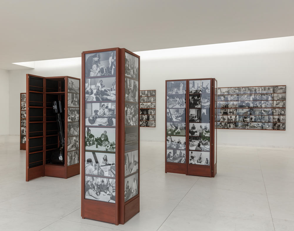 Fotógrafa, book maker e artista offset – numa alusão à técnica de impressão mais utilizada no domínio da edição – Dayanita Singh (1961) tem desenvolvido, nos últimos quarenta anos, um corpo de trabalho que desafia a convencional abordagem à fotografia, medium que lhe ofereceu um caminho de liberdade com o qual determina as regras da sua vida e se liberta das convenções sociais. Esbatendo os limites entre livro – publicação – exposição, e questionando como pode o livro ser um museu e um museu pode ser um livro, a exposição Dançando com a minha câmara assume-se enquanto retrospetiva e a mais importante mostra dedicada à artista até à data. Comissariada por Stephanie Rosenthal, organizada pela Gropius Bau, em colaboração com o Museu Villa Stuck e o MUDAM – Musée d´Art Moderne Grand-Duc Jean, o Museu de Arte Contemporânea de Serralves, no Porto, é a última paragem da exposição e segundo a artista o melhor final por estar neste edifício, um tributo da arquitetura do Porto. Sinto que foi feita para este museu [1]. Entendendo a fotografia como uma matéria-prima, a partir da qual diversas expressões podem ser libertadas, Singh apresenta-nos as suas imagens numa infinidade de formas, desde museus móveis a livros-objetos, permitindo ao público participar ativamente de cada experiência e evento fotográfico. Avessa à ideia de ter a sua obra fossilizada num museu ou galeria, Singh pretende que as suas imagens possam ser movimentadas e ajustadas aos espaços que as recebem, motivo pelo qual no início da década de 2010, passou a incorporá-las em estruturas móveis de madeira, foto-arquiteturas, através das quais explora inúmeras possibilidades narrativas por meio de montagem e justaposição. Designadas de museus, as estruturas podem assumir diversas configurações, sendo exploradas, percorridas e dançadas pelo público que tem a oportunidade de as vivenciar e de estabelecer diferentes conexões.