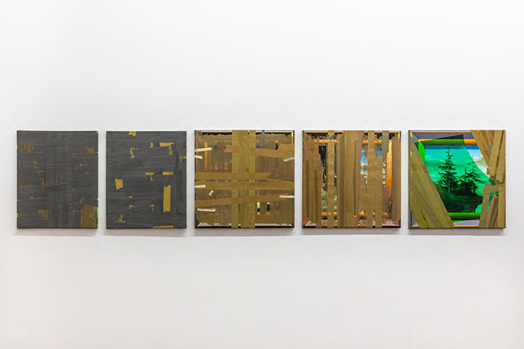 A exposição “Aparato” do pintor eborense Rui Macedo é uma das mais recentes ilustrações sobre a obsessão do ofício da pintura da qual Gerhard Richter se refere nas suas notas de 1973, em The Daily Practice of Painting: “uma vez obcecados, somos levados em última instância ao ponto de acreditar que podemos mudar os seres humanos através da pintura." [1] Por isto, esta exposição, patente no Centro de Arte e Cultura da Fundação Eugénio de Almeida até 7 de abril do próximo ano, arrisca-se a ser considerada a melhor de 2023 para quem acredite que a pintura como meio artístico ainda tem uma palavra preponderante a dizer no curso da contemporaneidade. Nestas obras, todas elas terminadas este ano, Macedo lançou-se num trabalho de minúcia quase monástico unindo um grande rigor técnico à transmissão do zeitgeist contemporâneo. Tal empenho desembocou num conjunto de trabalhos representativos de um conhecimento transtemporal ao ressuscitar os temas-mortos da pintura antiga para a realidade virtual segundo a perspetiva de um futuro enigmático. O elogio às suas capacidades não é exagerado quando se pode com o seu trabalho refletir ao mesmo tempo e em larga escala sobre a encenação, a pintura como ofício, a diversidade da natureza ou sobre o belo, isto pelo lado da história antiga; e sobre o fragmento, o tratamento da obra de arte como mercadoria, o acesso à contemplação como produto de elite até ao seu quase desaparecimento na idade da plena virtualidade de 2023, isto pelo lado da história atual. E não é menos impressionante que tenha conseguido transformar qualquer sensação de destruição, quebra, divisão, obstáculo e ilusão em perfeitas imagens harmoniosas. Em suma, Rui Macedo interpela a pintura e a história da pintura a partir da sua condição contemporânea, como é, assim, apresentado pelo curador desta exposição José Alberto Ferreira. A exposição começa com uma composição de uma visão pouco comum: a do topo de umas escadas em caracol, chamada “Grandioso-Oco” que ao se inspirar possivelmente nos interiores da pintura holandesa do séc. XVII, joga com a mistura de uma sensação física e outra emocional. A intensidade da luz natural vinda do exterior sugere uma enorme vontade de avanço que choca, em sentido contrário, com a escuridão sinistra da descida, qual vertigem para o abismo! A representação é a de uma verdadeira imagem dramática sem intervenientes humanos por isso merecedora de um título em cartela como qualquer pintura seiscentista. Mas, neste caso, a cartela foi pintada sem qualquer texto, porque nenhuma palava poderá exprimir a totalidade da composição. Ao lado desta temos o primeiro sufoco contemporâneo: a mesma tela é repetida, mas, revestida na maior parte da sua superfície por fita grossa, daquela que é usada nas obras públicas. O desconforto produzido é evidente nesta simbiose entre a representação clássica de contraste claro-escuro e da sugestão da obra de arte como mercadoria. Este elemento da fita – nas restantes obras é castanha - aparece em quase todos os trabalhos da exposição. Por vezes anuncia-se discreta numa só tira, outras vezes numa tela quase completamente coberta, entre a ameaça de um artigo inacessível à garantia de um produto viável em termos comerciais como sugere a obra “Volubilíssimo-Requintado #3”. Esta última torna-se particularmente paradigmática no que respeita ao acesso à arte, diga-se, ao acesso à arte do belo e do sublime. Não estamos mais perante um objeto para gozo de alguém com poder, nem de uma pequena minoria letrada como tivemos até ao séc. XIX. Assume-se antes como um produto comercial, mas, cujas massas de hoje apenas poderão ter acesso através de pequenos fragmentos da composição total, como um troço de um fundo de paisagem idílica que apenas podemos desfrutar como migalha de um todo contemplativo. Rui Macedo parece-nos chamar a atenção não mais para a obra de arte que perdeu a sua aura, se reproduziu e se vendeu como uma mercadoria de massas pronta a ser rentabilizada, na senda do pensamento de Walter Benjamin. Esse fenómeno já faz parte do passado. Agora é apenas um fragmento da própria contemplação que pode ser adquirido, em maior ou menor tamanho, segundo o poder aquisitivo da bolsa de cada um. A questão é que estas fitas castanhas, umas verdadeiras e outras pintadas, nos vedam a todos a composição total das peças, porque efetivamente a arte já morreu. O que podemos hoje adquirir é apenas uma ideia de arte concebida numa sociedade reduzida ao fetichismo total. Resta-nos ver um pequeno pedaço da ideia de uma obra de arte, porque, há que pagar um valor para desvendar e desfrutar do que ela outrora fora. E é esta ideia que nos lança numa outra fase da contemporaneidade que tem de ser estudada, tenha o artista criado esta imagem deliberadamente na mesma linha de pensamento ou não.