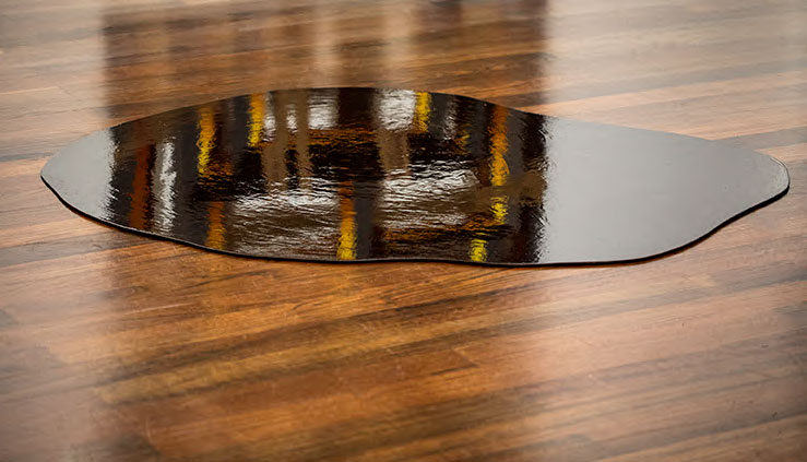 O omnitalento de Rui Macedo não se fica por aqui. A obra “Vazio-Aparatoso”, é talvez a mais ousada das propostas do artista, pela sua subtileza e capacidade laboral. A obra corresponde ao difícil enunciado de tentar representar nos dias de hoje o sublime em pintura. Tendo em conta o que o filósofo Marc Jimenez considerou como sublime – disforme, caótico, conflito das nossas faculdades, no seu livro “O que é a estética?” -, esta composição onde a resina que representa um vidro partido sobre um fundo azul transparente, sem mais nada, é, na verdade, uma obra plena concebida a partir de elementos mínimos, por isso, tão perfeita, tão excelsa, justamente tão sublime. Ela tem paradoxalmente tudo e nada: tem moldura, passe-partout, um fundo sóbrio de várias matizes azuis-esverdeadas, sombras, reflexos, a simulação da transparência e ao mesmo tempo um vazio de conteúdo onde nada é representado. Porém, tudo foi pensado como uma análise laboratorial. “Celebérrimo-absurdo” é uma obra-símbolo daquilo em que nos metemos como humanidade. Estamos num hipnótico labirinto emoldurado, que não importa a estrutura quadrangular em que caímos, o abismo será sempre certo, uma eterna queda livre. Onde quer que caíamos, a saída aponta para o interminável simulacro. Não parece ser este o enigma do séc. XXI caraterizado por um conjunto de formas rígidas que se espelham ad infinitum fazendo-nos perder o norte? Há muito que caímos na armadilha do excesso do qual vai ser muito difícil sair. Mas, não menos angustiantes são as placas espalhadas pelo chão, chamadas de “Inutilidade-Magnífica”, cuja amálgama de resina e acrílico lembram magnificamente as nossas memórias contemporâneas: amorfas, indefinidas, meros resquícios derretidos pelo tempo. Rui Macedo lança-nos ainda uma última provocação. Andamos tão iludidos, em relação a tudo, a nós mesmos, ao que desejamos e ao que devemos ser, que não sabemos mais distinguir uma coisa, de outra coisa que se assemelhe. Pobres de nós! Pobre de mim, que se não lesse todas as legendas, me quedaria na ilusão ótica - qual trompe l´oeil contemporâneo - de que os ventiladores do museu seriam três na parede da direita e não dois. O terceiro é, afinal, um óleo sobre acrílico chamado “Inútil-Magnifico”. O terceiro não é, e eu talvez também já não seja o que penso ser...porque, a pintura que me reflete, representa a minha mudança como ser humano.