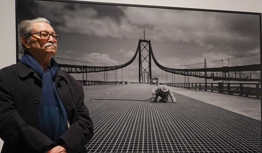 Que outro espaço tão nobre e que marcou a história do trabalho da Marinha poderia ser mais adequado à exposição Factum, de Eduardo Gageiro, do que as amplas paredes da antiga Real Fábrica da Cordoaria da Junqueira– as mesmas que já receberam Genesis, de Sebastião Salgado, em 2015, ou Icons, de Steve McCurry, em 2022, para referir apenas grandes mestres da fotografia documental? Neste lugar onde até 1998 a força do trabalho humano construía cabos necessários para aparelhar os navios, hoje, descobrimos as cerca de 170 fotografias de dimensões variáveis que o mestre Gageiro resgatou do passado e que agora apresenta por ocasião dos 50 anos do 25 de Abril. Algumas dessas imagens – as preferidas do autor – são os ícones da Revolução de 1974, mas também se identifica um olhar atento às condições de vida da classe operária, na linha do construtivismo russo, de Aleksandr Ródtchenko, às desigualdades sociais representadas pela corrente neorrealista e a força visual da fotografia humanista francesa. O que encontramos em Factum é a história e os diversos retratos de um país antes, durante e depois da Revolução, mas é, acima de tudo, a projeção de todos os valores que conduziram Eduardo Gageiro à fotografia e, particularmente, a lealdade às causas que acredita, assim como pelos ideais que o acompanham desde sempre. Num constante regresso ao passado, todos os sábados desde que a exposição estreou, Eduardo Gageiro tenta explicar aos visitantes mais curiosos como brotou o interesse pela fotografia. Nesses instantes, recupera a génese da relação umbilical que mantém, desde a adolescência, com a sua arte. E talvez Gageiro não fosse Gageiro se a sua história de vida tivesse outros contornos. Apesar de o pai não lhe ter permitido prosseguir os estudos, o espírito curioso e inquieto depressa galgaria barreiras: “Quando terminei a 4ªclasse, queria estudar, mas o meu pai não deixou. Como tinha um pequeno restaurante, disse-me que iria para o balcão aviar. Fiquei profundamente magoado. Aos 12 anos, mandou-me para o escritório da Fábrica de Loiça de Sacavém, acreditando que ali é que estaria o meu futuro. Fui furioso, mas passado pouco tempo constatei que não era assim tão negativo. O meu contacto com os operários passou a ser mais intenso, mas também com muitos artistas. Comecei com uma máquina pequeninha a fazer fotografias. Como andava de secção em secção a levar papéis, convivi com aquela gente toda, incluindo os grandes artistas.” Entre os mestres, estava o escultor Armando Mesquita que se dispôs a ver as fotos do pequeno Eduardo: “Ó miúdo, tu tens olho, mas não percebes nada de composição. Por isso, vais ao meu atelier, ao final da tarde, que te dou umas lições”. A primeira coisa que ele fez foi um retângulo aos quadradinhos: ‘Esta é a regra de ouro. Deves tentar colocar sempre o assunto principal ou do lado esquerdo ou direito, sobretudo, do direito. A vista tem tendência a olhar para a direita. Nunca ao meio. De forma que tens de encontrar vários elementos de composição também para o lado esquerdo, para equilibrar, mas o motivo principal fica quase sempre do lado direito.’ A partir daí, comecei a fotografar de maneira diferente.” Eduardo Gageiro nunca mais esqueceu a lição. Entre 1947 a 1957 manteve-se na Fábrica de Loiça de Sacavém até que começou a trabalhar no laboratório do Diário Ilustrado, onde revelava as fotografias de outros. O início não foi fácil, mas não demorou muito tempo a furar o forte corporativismo que encontrou na redação, sobretudo, entre os responsáveis pela fotografia, numa época em que esta editoria era formalmente inexistente em Portugal. Agarrou uma oportunidade, fintou o destino e mostrou o que valia: “O Diário Ilustrado tinha um suplemento literário no qual escreviam intelectuais e professores universitários. Não eram empregados do jornal. Lá fui eu fazer umas fotografias, se a minha memória não me falha, a Ferreira de Castro. Já conhecia toda a obra de Ferreira de Castro. Estava muito preocupado porque era o meu primeiro trabalho. Ouço o que ele diz, faço duas ou três fotografias. Depois, realizo uma diversidade de fotografias para tentar aproveitar o ambiente onde ele trabalhava e vou revelar o rolo no laboratório com o todo o carinho, pois eram as minhas fotos. Faço umas ampliações e mando para a redação. Fui chamado ao diretor. ‘Eh pá. Tu tens olho. Fotografas de outra maneira. Vais passar a ser o fotógrafo do suplemento literário’. E foi a minha sorte.” As fotografias que encontramos no Torreão Nascente da Cordoaria Nacional pertencem a outra fase da vida de Eduardo Gageiro, já ao serviço do jornal O Século e do Século Ilustrado. Com curadoria de Sara Antónia Matos, da EGEAC/Galerias Municipais, e legendas de Sérgio B. Gomes, mas com depoimentos na primeira pessoa, a exposição abre com cinco fotografias de uma família cigana captadas no Cais do Sodré, em Lisboa, no ano de 1973. Da ausência de figuras humanas até à união de uma família num banco de jardim, todas elas sugerem laços afetivos profundos, ao mesmo tempo que remetem para a fragilidade da condição humana. A escala do homem tão diminuto quando comparado com o espaço que habita, trabalha ou onde se move é evidenciada nas fotografias a contraluz de duas crianças que brincam em cima de monte, em Sacavém (1952), ou do agricultor que com o seu cavalo lavra a terra, em Mourão, Alentejo (1981). Num jogo de luz e de sombra, Eduardo Gageiro recorda, na série de cinco fotografias registada entre as décadas de 60 e 70, os milhares de portugueses que partiram das estações de Santa Apolónia para cruzarem as fronteiras rumo ao incerto em Vilar Formoso. Em destaque, surge o retrato de uma mulher de lenço na cabeça e de olhar perdido, captada através da janela do comboio. Seguem-se fotos dos que ficaram nas ruas de Lisboa, do Chiado a Alfama, evidencia