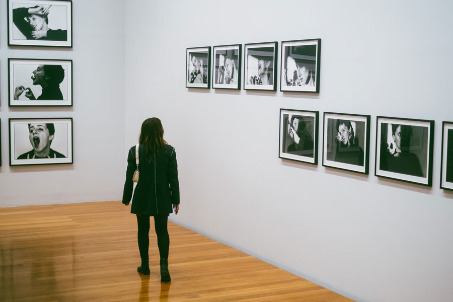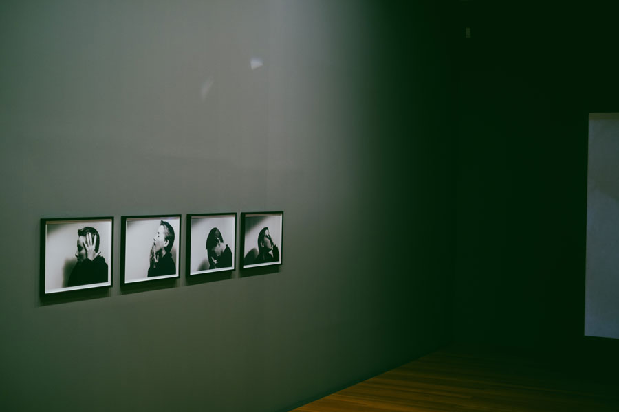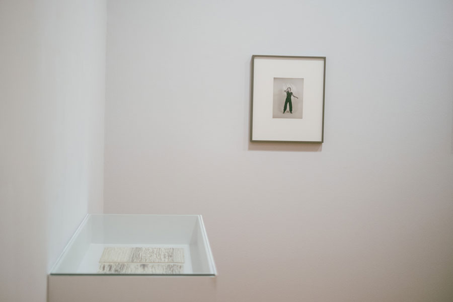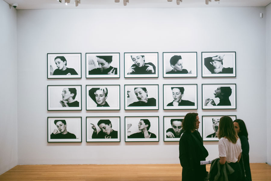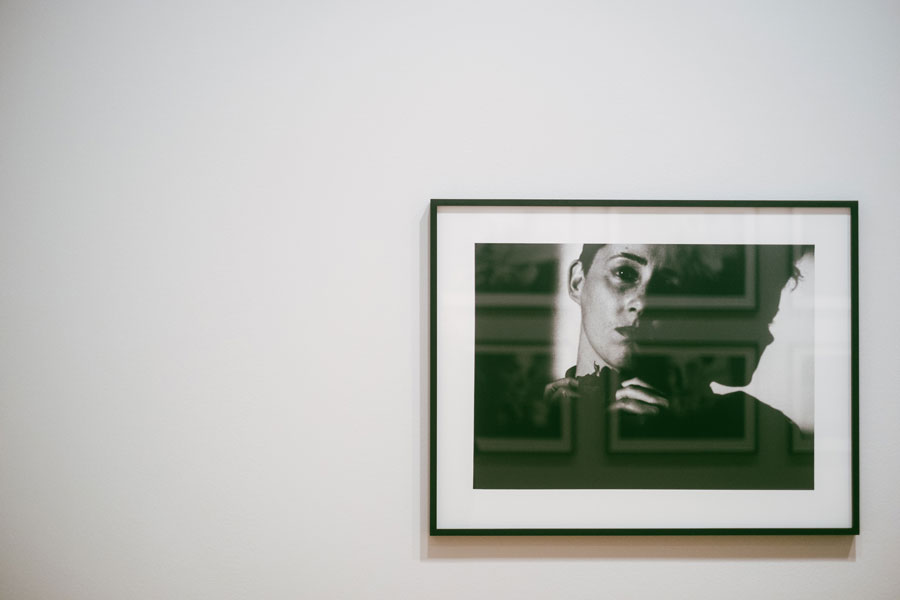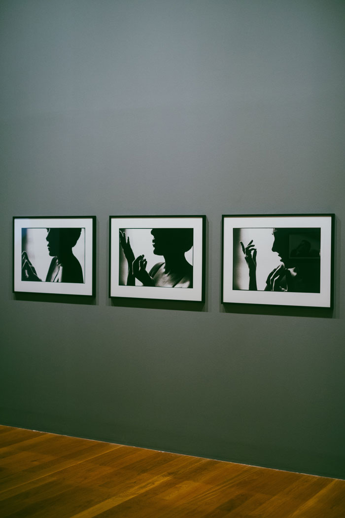 A hipótese construção/desconstrução no percurso da exposição parece ilustrado pela museografia de descida/subida. Constrói-se em duas fases e um interlúdio – a descida introdutória (de que estas Mãos fazem ainda parte, e encerram) o interlúdio (com Place of Enlightnement, Double Bound e Body Mapping Space na planura do corredor fundeiro da Culturgest, a raiz) e a subida que, por fim, a despe, vulnerabiliza. Nestas Mãos, o que as revela, como personagens que ainda são, não é a sua imagem, a sua gestualidade codificada (diria, até, bressionana) mas o que fora de campo as rodeia – as séries fotográficas sem título, do final da década de 70, onde estas se sobrepõem ao corpo, como se o controlassem, espelhassem (a lembrar Jorge Molder) – do lado esquerdo, como se o moldassem em expressões de angústia, ou poder (tacteando-o, primeiro, para depois o submeterem), ou do lado esquerdo, numa dança triunfal – a mão sedutora, que chama, embeleza, bêbada de poder e magia. Será a mesma mão que segura a rosa, numa ficção mais reveladora. Ou não? Voltemos ao princípio, aos modelos, às representações – não está ali a artista. Why? Something is escaping me at the moment, i almost reached it. Num dos Modèles, um rosto de diabruras, com a língua erecta – como o gozo do prazer que aniquila, e lembra a impossibilidade de decifração. Nas suas brincadeiras, finalizadas na troca de olhares da última sala (a série Sem Título (FHTE) que finaliza a exposição é de uma embriaguez sublime, a translucidez das sombras como se chorasse aquele rosto inibido), há uma a que nunca se atreve: o olhar a porta de saída.