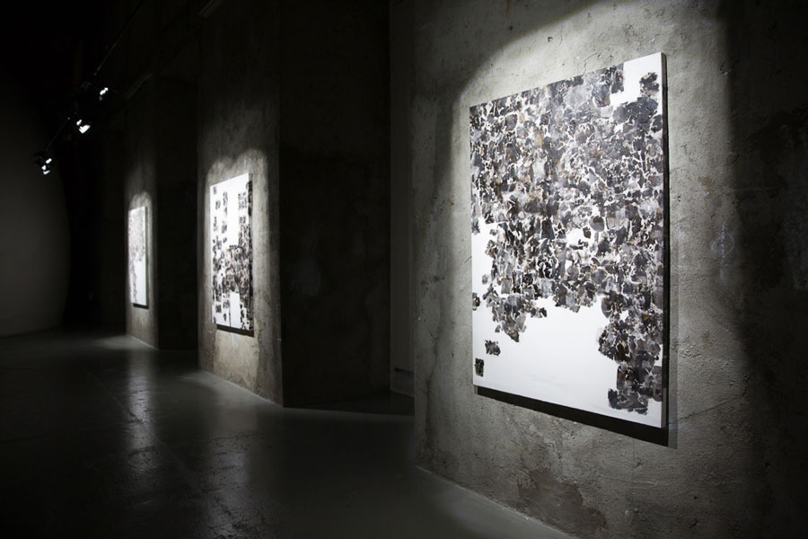 SOBRE A TECHNE Diane Giraud, de herança multicultural, com formação na University of the Arts London em Design de Moda e na Université Paris X Nanterre em Direito Empresarial, formou-se como designer de moda sob a orientação de alfaiates de Savile Row, tendo trabalhado nos ateliers de alta-costura de designers como Alexander McQueen e prestado consultoria a várias empresas startup – é uma artista multidisciplinar autodidata. Atualmente sediada em Lisboa, tem colaborado e mostrado o seu trabalho na Culturgest, no Museu Nacional de História Natural e da Ciência, nos Estúdios PADA e no Museu do Teatro Romano de Lisboa, com o apoio da Câmara Municipal de Lisboa, da assessora cultural Dr.ª Catarina Vaz Pinto, do Ministério da Cultura e da Fundação Gulbenkian. A história de Giraud com os materiais ou a materialidade dos materiais atesta a qualidade interdisciplinar do seu trabalho – invocando a sua compreensão da técnica e da prática. Convida o público a uma exploração tátil, cinestésica e filosófica com o trabalho (pinturas, instalações, performances, situações), do espaço em que entram, do eu e das experiências relativas à condição humana. Confessadamente, como leitora precoce de uma constelação de livros ecléticos, desde a ficção científica do século XX até à literatura francesa e partes da antologia La Comédie Humaine de Balzac, a sua relação com o pavor existencial, a tragédia e a comédia da existência humana, sugere a influência da filosofia francesa dos séculos XIX e XX nas suas obras. Ao mesmo tempo, revelando taticamente a cacofonia cultural – francesa, vietnamita e grega – que é, a sua prática manteve-se fiel aos espaços intermédios – as questões relativas às perspetivas que resistem aos dualismos. Escusado será dizer que a tarefa aqui é resistir a atirar Diane para o nebuloso discurso da ‘cidadania global’ ou a traçar contornos fixos em torno do seu trabalho. A tarefa, enganadoramente despretensiosa, é revelar como a precisão da sua habilidade liga multidões de uma forma a que vale a pena prestar atenção. E assim, volto-me para as questões relativas à técnica e à prática de fazer desta artista-artesã que foge à objetividade acentuada assumida nas formas. Enquanto a ouço falar, seguindo a sua variedade de pensamentos durante as várias vezes em que nos encontrámos em cafés, inaugurações ou celebrações, ou através das notas de voz que, por esta altura, posso assumir que começam com “Heyy Aishwarya…”, reparo numa parte do icebergue que retrata um compromisso rigoroso com o valor inerente à perceção visual – resistindo à influência do dogmatismo linguístico – que levita em torno de questões relativas à realidade. Ao revisitar constantemente os temas, mas também os materiais com os quais Giraud pensa sobre os temas, não só é a sua técnica como a de um escultor – um processo de encontrar a forma para sempre num horizonte – mas também se assemelha à prática dos filósofos para alguns dos quais a repetição é uma disciplina – uma recursividade incorporada com uma diferença. Este movimento em direção a um horizonte, que no caso de Diane é um horizonte de liminaridade, tem levado a criações e recriações que contemplam o valor latente e potencial dos materiais e das questões. Sentada n’A Padaria Portuguesa da Graça, no dia 10 de outubro, pedi à Diane que me ajudasse a compreender este processo. Depois observei como ela conseguiu, com uma atenção forense, transmitir a sua intenção e a sua prática que opera através da exploração da interioridade da condição humana – de processos, hábitos, conceitos e pensamentos, tão específicos dos seres humanos – diferentes dos restantes e particulares do eu, que transcendem temporalidades individuais e culturalmente específicas sem sugerir superioridade em relação a outras espécies – “Construímos sistemas complicados que nos separam, mas é sempre a mesma coisa”. Queimar papel, revisitar temas, reformular ideias, tudo isso parece ser o desejo de se livrar desses sistemas. Enquanto me dá a conhecer uma constelação de referências da moda, da arte contemporânea, da literatura, do cinema independente e dos estudos culturais, pergunto porque é que o que emerge destas influências é não-referencial, e Giraud exclama: “Não estou a tentar esconder-me, mas também não quero formatar a tua maneira de pensar. Estou a tentar construir uma relação contigo”. Por isso, deixa o artista falar contigo, da forma que ele sabe. Integrada no processo de conversação está a noção de tempo, um elemento que é incorporado no tema e na forma como Giraud coreografa a exposição. Como testemunhado na declaração curatorial da série A Private History: Fragments (2015-2016), apresentada no Museu Nacional de História Natural e da Ciência, que é “uma série de experimentações que levaram à utilização de processos meticulosos, incluindo a gravação e o empréstimo da técnica de colocação de folha de ouro para aplicar papéis queimados e cinzas, peça por peça, nas telas”, o tempo torna-se um ator crítico na realização da série. Para além da natureza óbvia do tempo no processo, Giraud examina a sua relação e identidade em diferentes momentos da sua vida, o que, juntamente com os materiais com que trabalha, é experimentado – “A artista optou por queimar alguns livros da sua própria coleção, incluindo romances literários e antologias, ensaios de direito comercial e ciências políticas, bem como revistas de moda. Através de tentativas, a artista desenvolveu uma compreensão da textura, cor e tamanho dos fragmentos que queria obter. Nalgumas telas, os restos das peças originais, embora pouco reconhecíveis, surgem em fragmentos de palavras ou imagens. Nunca completos, são deixados para os espectadores descobrirem e vaguearem nestas existências invisíveis, justapondo 