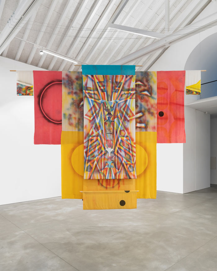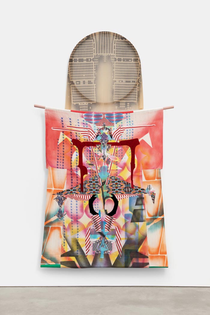 Sobre a exposição ‘Portals’ A grande maioria das exposições que visitamos são sempre melhores ao vivo do que por imagens. Mas depois há aquelas exposições que ao vermos as imagens ficamos imediatamente com vontade de estar presente perante a obra, e que depois de visitarmos, a sensação com que ficamos é de que algo mudou, não sabemos bem o quê, mas algo mudou. Já desde os primeiros dias da minha escrita que defendo que a arte ensopa um certo vudu que os artistas jorram na obra, e a exposição ‘Portals’ de Laleh Khorramian e Alia Farid com curadoria de Margarida Mendes na Galeria Francisco Fino que esteve patente entre Dezembro e Janeiro, é um caso em que tal vudu transbordou e me molhou. A estrutura da galeria, o edifício, possibilita imaginarmos que esta foi feita de propósito para a obra de Laleh Khorramian, sendo que os seus tetos altos e fisionomia pontiaguda, protagonizaram a verticalidade de toda a exposição. Senti que estava numa catedral minimalista gótica, e que havia muita intenção para que o trabalho artístico me elevasse. A obra de Alia Farid, omnipresente através da sublime música árabe, ecoou nas naves da galeria e rematou toda a atmosfera, transportando-me para um local de encontros áuricos, em que o individual e o coletivo se sentiam ao mesmo tempo, em harmonia, sem interrupções. No trabalho de Khorramian, vemos uma tradição familiar têxtil muito evidente quer através da sua técnica, quer através das escolhas de tecidos e efeitos fabris e suturais. Pregas sem bainhas escolhidas deliberadamente, pespontos expostos, bainhas perfeitas, duplas costuras para dar estrutura às composições, máscaras debruadas, todo o seu trabalho de costura é muito intencional do ponto de vista técnico, no entanto, não nos dá essa sensação quando vemos as peças, pois estas respiram uma leveza orgânica. Como um balão de ar quente que me puxa para cima. Algumas das peças que vimos nesta exposição são parte de uma obra intitulada ‘Myth Maker’. Este título, quis-me parecer, traduz-se na obra artística como um mito autobiográfico. Com as primeiras obras que vi (She is Not One of Us, She is Home, Wonder Wonder, Anima), comovi-me, pois parecia que estava a ver uma radiografia da alma da artista, composta pelas suas experiências emocionais, interiores. Nas obras seguintes (Guardian of Tulips, Infinity Face in the Company of Others, Egg Rig), vi um sentido coletivo, em que criaturas participavam na vida do jardim. No entanto todas estas criaturas que conheci, ainda que espectrais, tinham a tez das sedas, camadas de tecido sobrepostas, buracos que funcionam como máscaras que escondem coisas para não serem vistas, remetendo-me para O Jardim das Delícias Terrenas (1510) de Hieronymous Bosch. The Bones in The Garden, o painel à entrada da galeria, aludia à estratificação da terra, mas as suas cores emanavam um conforto que só o êxtase pode entregar. Nesta combinação telúrica e cosmológica vislumbrei até algumas arcanas maiores do baralho de Tarot, que não se impunham, simplesmente espiavam a minha curiosidade.