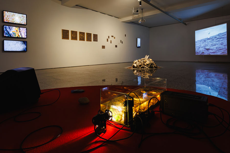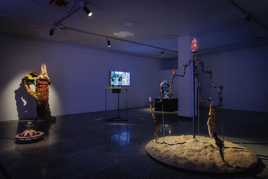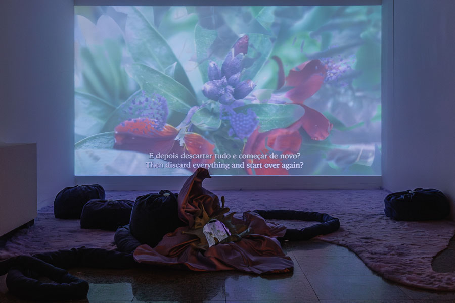 Como resolver então este conflito que aflora de um interior abandonado - “para onde é que o fulgor se foi?” - que precisa de ser tomado de súbito e expelir, por via da criação, uma energia vital capaz de sair do corpo e se encarnar noutro? Definido por um brilho intenso e instantâneo, o fulgor é metáfora de momentos de revelação e percepção ampliadas, de carácter transformador. É evidente que a sua natureza se identifica com a da criação e experiência artísticas (não necessariamente epifânicas. Queremo-lo prolongado). E quando Manuel Santos Maia diz que “ser fulgurante é criar a partir da potência - daquilo que ainda não se tornou ato”, projetando um “futuro que não é antecipação nem desejo”, lembro-me de uma entrevista ao escritor e artista Camille de Toledo: “o que tem sentido é olhar o contemporâneo do futuro. É a isso que chamo “potencial””. Acrescenta que a arte contemporânea apresenta similitudes com o género do romance, ambos termos vagos que exigem ser reinventados, deslocados e transformados, ambos territórios de recepção que não param de se interrogar. [3] Não deixa de ser curiosa esta coincidência em que nos encontramos: o romance, a escrita, a arte, a potência, o futuro. Questiono: que futuro é esse que o fulgor pode futurar? O fulgor constitui uma espécie de alegria criativa fundamental que tanto alimenta como consome, sendo que a forma mais pura de alegria é a interrogação. [4] Visualiza-se um fervilhar, um jorro, uma condensação. O mundo em estado líquido. 51 artistas participam na bienal [5] e a seleção - que derruba fronteiras etárias - justifica-se pela partilha de uma intensidade refulgente que dá a ver novos reais possíveis e novos modos de sentir, ativos pelo dom poético da imaginação (e não tanto pela razão), e alia-se à já habitual atitude transdisciplinar e multi-discursiva do evento, cruzando linguagens e saberes que vão desde as artes populares e tradicionais às académicas e de manipulação digital. Depois de Ágora (BACM21) e Foi para caminhar que aqui cheguei (BACM23), sustentadas pelo compromisso da arte na construção de uma sociedade politicamente ativa e livre, com o alargamento das práticas artísticas a potenciar novos caminhos de acção e pensamento, esta bienal propõe essencialmente pensar o humano nos mais diversos estratos que definem a sua existência: na relação consigo próprio (a psique, o corpo), com o outro (a comunidade, a fauna, a flora), com o tempo (herança passada e futura, potencialmente circular e inacabada), com o meio envolvente (paisagem), o surreal (o místico, o fantasioso, o pós-apocalíptico), a criação (arte). Dizê-lo assim, segmentando a humanidade em meia dúzia de tópicos, é pobre e injusto dada a sua complexidade e tentativa de harmonização do viver individual e coletivo. É a partir do gosto pela viagem da descoberta, aglutinada à alegria da interrogação por si só, que os artistas operam, resistindo à normalização de um mundo (des)feito. Estamos longe de compreender a totalidade do que é ser humano e o porquê lógico das suas criações/acções. Hoje, quando consideramos que pilares como a liberdade, a igualdade, a justiça, estão vincadamente fundados pelo estudo da história e registos da memória, o mundo consegue-nos surpreender pelo derrubar consecutivo dessas estruturas, sem que com elas tivesse aprendido os horrores e os efeitos da guerra, da violência, por uma ordem de poder descontrolada. A memória, enquanto veículo de aprendizagem, perde força a cada dia e a história parece inútil. Este é um tempo carregado de repetições e a arte, cuja força é levianamente subestimada e até rejeitada, mantém-se indelével no seu desígnio. Também ela é uma forma de história, que observa, analisa e traduz a experiência humana em novas concepções. Muitos não o sabem, mas a arte é sentinela e a sua dádiva, como refere a socióloga Sheila Khan, reside na ubiquidade. [6] O poder da arte contemporânea em propor possibilidades de mundo(s), sem rótulos e sem negar qualquer meio de formulação do sensível, torna político o seu ato de liberdade e libertação. A pergunta é sempre a mesma: o que pode a arte hoje?