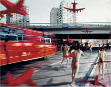 CHINA NOWNUNO LOURENÇO2007-12-02Depois de um séc. XIX predominantemente francês, de um séc. XX sob o signo da coca-cola, a China, o tão falado monstro económico, prepara-se para nos achinesar como uma invasão de baratas. Já no piso baixo do museu Cobra, Museum voor moderne kunst, mostram-se em pequenos quadros os alinhavos de certas linhas mestras da arte chinesa contemporânea. Os restos de Mao-Tse-Tung são chamados de “Thing” por Zeng Tu, e Hong Hao impõe uma “New World Order”, onde quase toda a Europa se chama Moçambique, a China se torna dividida em países como os E.U.A. ou Portugal; São Marino e Andorra são agora o novo Canadá e a Antártida compõe-se de cidades-estado como Nova Iorque ou Londres. Será isto um prenúncio? Na sala de cima descobrimos que a arte é a vida de todos os dias de uma cidade como Pequim, projectando-se nos testos de um tacho onde um cozinheiro prepara um refogado. Os seus ritmos repetem-se gradualmente em imagens desmultiplicadas nas paredes. A arte afinal não é para as massas, ela é as massas. E assim não sendo, como se explicaria então o realismo artístico imposto desde a Revolução Cultural de 1966? Simplesmente agora, há uma ironia suave que surge de dentro das artes do povo. Muitas das figuras de mulheres representadas continuam lutando invencíveis para sempre nas suas fardas apertadas mas, elas agora são tão felizes como operárias, que são também bailarinas. O punho erguido de um trabalhador chinês é a própria convicção que suplanta as formas de um corpo asiático para ser mais forte que o mais bravo dos vikings. Uma ironia suave…ou os efeitos da censura? Os sinais da oposição exprimem-se num ritmo equivalente ao carácter milenar desta civilização; como formigas que picam ao de leve, até alastrar uma vasta imensidão. Trata-se de uma oposição em primeiro lugar inócua, tal qual uma enorme fotografia da exposição, onde insectos voam entre montes e vales, mas que de perto são rabos alçados. Depois como insectos que vagueiam entre caras, cabelos e restos de carne de pessoas comuns, cujas patas são coleccionadas como símbolo tradicional de longevidade, incomodando quem os sente e olha. E no final, como um vídeo de outro artista registando o movimento de um esforço milimétrico: as formigas devoram tudo quando já não há resistência, nem o controle da última estátua do regime. Aqui e ali, vemos fotos de fábricas e salas de comícios sindicais abandonados às brumas do esquecimento. As fotos das próprias pessoas são cinzas queimadas na praia, onde nem os ossos restam e o pó evapora-se. Este exercício de paciência chama-se China, que não é mais que a própria natureza na sua dimensão em períodos longos. Depois dos dias finais da decadência, uma nova vida se anuncia. Ao lado do monumento dos Heróis do Povo, um bebé enorme caminha anunciando prosperidade. A prosperidade do consumo, do cruzar dos mundos onde a maioria dos produtos são Made in China. Não é por acaso, que em estilo de veneração, bonés, botas ou telemóveis se apresentam em material de louça sanitária. Outro tipo de prosperidade cujo o futuro se faz acompanhar de uma velocidade arrepiante, arrastando um bilião de chineses que correm nus pelas ruas das grandes metrópoles com a mesma determinação da sua paciência. Uma liberdade frenética que como tudo também terá o seu fim. Até ao momento de caírem do céu pessoas, umas atrás das outras, em vez de gotas de chuva. É, exactamente aqui, que temos que entender a cultura de um povo. Mesmo que a morte seja massiva, que só haja lodo em nosso redor, tudo renasce e prospera. Por isto, o denominador comum da sua arte é uma pintura de uma mulher e de um rapaz, feitos de loiça, que parecem, por fora, a tudo resistir. Mas que ao próximo milímetro de esforço poderão estalar pela pressão das suas quase lágrimas e do seu ténue sangue aguado. E se estalarem…o mundo não acabará por aqui. Eis uma resenha de uma exposição colectiva patente em Amstelveen, cidade subúrbio de Amesterdão, até 27 de Janeiro de 2008 com obras de artistas como Zhang Bin, Song Dong, Wang Guangyu, Yang Shaobin, Chi Peng, Zhang Dali, Zhang Xiaogang, Zhang Huan, etc. Nuno Lourenço |
