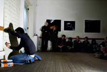 ESPAÇO AVENIDAMIGUEL CAISSOTTI2008-02-12Talvez sejam seis, possivelmente sete, mas o número exacto poderá até ser acertado para valores acima ou abaixo das expectativas. Até Junho, o Espaço Avenida tem já um conjunto de projectos expositivos em agenda. A incerteza quanto ao número exacto advém de um conjunto de características intrínsecas à informalidade com que esta plataforma se tem dado a conhecer à cidade de Lisboa, ou melhor, a “uma certa cidade” de Lisboa. Trata-se de uma proposta de programação cultural que, pelas suas características, suscita dois ou três pontos de reflexão, reflexão essa que bem pode começar no exterior, em frente da porta do nº 211 da Avenida da Liberdade, um edifício de primeira linha em pleno coração de uma das zonas empresariais mais cobiçadas da cidade. A pressão e os ritmos citadinos e desgastantes do quotidiano laboral não passam, no entanto, para o interior do prédio onde, instalado ao longo de todo o primeiro piso, se desenvolve um conceito de trabalho singular. Aliás, mais do que uma proposta de programação, este primeiro piso do nº 211 da Av. da Liberdade (treze salas e mais de seiscentos metros quadrados) é uma proposta em que a vertente de disponibilização ao público dos projectos artísticos ali desenvolvidos surge como um momento quase secundário de todo o processo. Sem os normais constrangimentos institucionais gerados por expectativas programáticas, calendarizações, prazos, avaliação de resultados e um sem número de outros pequenos factores que configuram uma pressão à própria criatividade, o Espaço Avenida permite algum do lastro que nem sempre os artistas encontram na preparação e concepção de uma exposição. A estruturação das propostas a calendarizar vai sendo resultado da reunião de vontades dos artistas, alguns deles permanentemente envolvidos em todo o processo do Espaço Avenida e outros, consoante os projectos em que estejam directamente envolvidos e em que assumem, de acordo com os seus próprios ritmos e dinâmicas, toda a faceta que está para além das condições disponibilizadas e que, grosso modo, se resumem ao espaço e ao espírito de “porta aberta”, quase comunitário. Toda a estrutura de produção (simplesmente inexistente) terá assim que ser forjada e desenvolvida pelos vários intervenientes dos projectos que, para além de artistas, conciliam também esforços para ensaiar todo o tipo de estratégias de curadoria e montagem, promoção e comunicação, angariação de apoios e soluções técnicas, definição de datas e, invariavelmente, o escalonamento que permita assegurar sempre a assistência ao visitante. E enquanto, no exterior, o ritmo alucinante impõe um andamento impessoal à avenida, as tarefas em curso pelas várias salas do EA vão decorrendo, a um tempo que é de cada um, respeitando sensibilidades e metodologias de reflexão e trabalho. Cada exposição em curso acaba por transportar também o seu próprio processo de construção e essa é, para a maioria dos artistas envolvidos, uma experiência muito positiva. Ciclicamente, Lisboa (como de resto, uma parte significativa das grandes cidades) assiste ao surgimento de espaços cuja categorização foge a enquadramentos mais cristalizados. Constituem, de uma ou outra forma, estruturas alternativas ao tipo de ofertas que as cidades disponibilizam. São espaços cuja lógica cumpre mais um princípio de ocupação do que de programação e desse princípio se retira também uma permanente precariedade, quer da estrutura organizativa (quando assim possa ser referenciada), quer dos projectos apresentados, quer ainda dos próprios espaços, frequentemente devolutos e, por vezes, envoltos em demorados e complexos processos de alteração arquitectónica e, por conseguinte, também funcional. Para artistas jovens, sem recursos ou enquadramento galerístico, estas oportunidades afiguram-se como autênticas pérolas. Afinal, ainda são estes espaços que asseguram propostas continuadas de projectos emergentes. Mais do que alcançar modelos e resultados finais de intervenções artísticas acabadas, o que se procura estará mais perto de uma ideia de suspensão de um processo de produção em plena reflexão, e a sua partilha, durante os dias em que essas exposições (ou acontecimentos) estão visitáveis. Em Portugal, ainda é no Porto que se verifica uma maior preponderância deste tipo de propostas, mas o EA, também pela sua localização, adquire um simbolismo particular. “Centro e periferia”; “sistema das artes e suas marginalidades”: Ao assumirem-se como espaços colectivos de experimentação in situ, o que se traça são linhas de sustentabilidade, também elas precárias, pois, não consolidando qualquer solução organizativa, estes projectos vivem a incerteza de não se comprometerem com percursos tendencialmente institucionalizáveis e, por conseguinte, não conseguirem consolidar estruturas de trabalho estáveis que permitam projectar e executar programas específicos. “Em trânsito” (em vez de “precariedade”) parece ser uma noção muito recorrente nas artes e muito desse fascínio passará por uma questão (convicção) de posicionamento livre, não balizado por correntes ou malhas de influência. Em Abril de 2007, Ricardo Jacinto levou o projecto “Parque” ao Espaço Avenida. De lá para cá, a adesão de artistas e público tem sido crescente. O balanço, passado quase um ano deste o acolhimento do projecto de Ricardo Jacinto pode ser manifesto pela indicação dos acontecimentos que se seguiram: “Rasura” (Samuel Alcobia, Pedro Barateiro, Daniel Barroca, Paulo Brighenti, Carlos Correia, Cecília Costa, Romeu Gonçalves e Marta Moura); “Ushakovskoye” (Fernando Mesquita, João Ferro Martins e Rodrigo Tavarela Peixoto); “Private Office” (Catarina Saraiva, Jorge Santos, Miguelangelo Veiga, Paula Prates, Pedro Valdez Cardoso e Rui Mourão); “Antes que a prod