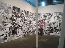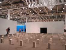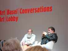 39ª ART BASEL SEGUNDO CAPíTULO AS METÁFORAS NA ARTESÍLVIA GUERRA2008-06-09“Passo a minha vida a evitar metáforas, porque usar metáforas implica aceitar os valores da estrutura que cria a metáfora. Eu não aceito a metáfora” Laurence Weiner em conversa com Jorge Pardo na Art Basel Conversations (4/6/08) Estas palavras foram proferidas por um dos maiores artistas conceptuais vivos, que utiliza a linguagem como media. É o reiterar de uma declaração de intenções (que data de 1968) deste escultor de palavras: “ART IS NOT A METAPHOR UPON THE RELATIONSHIP OF HUMAN BEINGS TO OBJECTS & OBJECTS TO OBJECTS IN RELATION TO HUMAN BEINGS BUT A REPRESENTATION OF AN EMPIRICAL EXISTING FACT” e acrescenta “IT DOES NOT TELL THE POTENTIAL & CAPABILITIES OF AN OBJECT (MATERIAL) BUT PRESENTS A REALITY CONCERNING THAT RELATIONSHIP.” São 10 horas da manhã e estou dentro do segundo enorme edifício da Art Basel, onde se expõe a Art Unlimited (Arte sem Limites …) com obras de grande escala, de cerca 60 artistas, vindos de 28 países (Portugal está representado por João Onofre com “Box sized Die featuring (band to be announced)” e Carlos Bunga com “Ruin” (representado pela galeria espanhola Benitez). Além das criações mais recentes encontramos clássicos como o “penetrável” de Jesús Rafael Soto (“BBL bleu” 1999-2007), a imensa pintura de Tom Wesselman (“Still Life”, 1976) ou o “Andy Warhol and Members of the Factory, New York City, october 30”; e todo o espaço é vigiado pelo “Oval Buddha” ( 2007), uma gigantesca escultura com a altura de uma torre de Takashi Murakami. É sob os olhos fechados deste Buda japonês que é apresentado o programa de conversas da manhã (o que demontra que definitivamente não estamos em Portugal) e da tarde, com o Art Lobby. O espaço é aqui muito mais amplo do que no outro edifício onde cada stand se encontra sobrelotado de obras. Aqui a ocupação do espaço é irregular e encontram-se representados alguns dos artistas com a mais alta cotação nos últimos anos. O Zeitgeit ou o famoso espírito do tempo está presente nas obras expostas. E se o diálogo pretendido pelos organizadores da feira, entre pares de obras, talvez não seja evidente, as peças reflectem as questões com que a arte se debate hoje. As galerias continuam a ser o primeiro destinatário da actualidade artística, e essa energia sente-se nesta amostragem do mercado, a mais importante a nível internacional. Para além do Buda-troféu de Murakami que, parece fazer eco à recente exposição patente no Centre Pompidou em Paris “Les traces du sacré” e ser o símbolo do poder do capital, para mim, o símbolo da Art Basel deste ano é a obra que foi a sensação do ano passado nos cinemas europeus e americanos, “Zidane, a 21st Century Portrait”, de Douglas Gordon e Philippe Parreno ( 2006). Estamos em pleno campeonato europeu de futebol e apesar do entuasismo dos suíços ser menos generalizado do que o dos portugueses, na cidade, os slogans de “Força Suiços!” é mais evidente do que a publicidade à Art Basel, sobretudo nas instituições hoteleiras. O filme da dupla de artistas é projectado em dois ecrãs gigantes, com dois filmes diferentes, e constitui realmente o retrato do herói do nosso tempo; a reflexão que o visionamento dos 90 minutos nos permite fazer, da política, da tentativa de equiparar as diferentes sociedades europeias pelo desporto, do retorno a um certo pós-autoritarismo político é incrível. Todas estas imagens circulam na nossa mente enquanto observamos Zidane e a sua epopeia em campo. Pergunto-me se não será esta uma metáfora artística? Outra obra que reflecte a sociedade urbana europeia e oriental é o último vídeo de Emanuelle Antille. Projectado em 12 ecrãs de televisão, intitula-se “Editing Rooms/ Editing Territories” (2008). Com som criado pelas duas personagens neo-punks (?), esta obra conta-nos a vida nas cidades onde o amor deixou de ser reprodutivo. Peter Coffin, conta-nos a vida animal através dos 30 ecrãs de “Untitled” (2008). Na sala ao lado temos mais uma obra vídeo, poética, de Apichapong Weerasethakul que continua a trabalhar a imagem invadida pela voz off de personagens que contam lendas e histórias tradicionais tailandesas em “Morakot” (Esmeralda). Na área do vídeo estava ainda presente Karen Kilimnik com “Heathers” (1993/1993), ou a vida no tempo que um afterword de soap opera americana nos traz. Eu passei um óptimo momento dentro da instalação vídeo e sonora de Diana Thater & Kelly Mason, “Relay” (2007) que embora pareça ter uma filiação na obra de Christian Marclay entra em relação com a reflexão de Laurence Weiner sobre o objecto artístico, mas na forma mais anti-conceptual que existe, num concerto de guitarra eléctrica amplificado por fortes colunas Marshall, e onde se projectam frases como “an ideia in 3 dimensions is an object”. Outro dos meus pequenos fetiches pessoais, que encontrei exposto na Art Unlimited, é a série “The blue period” (2007) de Jon Kessler. Pelo azul Klein? Pela manicure? Pela peruca de pai natal da rapariga? Porque gostamos de uma obra de arte, é claro que a resposta não existe, mas eu compraria uma destas instalações de Kessler para minha casa, sobretudo se morasse numa montanha suíça. Nota-se um certo revival pop em toda a feira deste ano, pontuado pelo reaparecimento de Warhol, de Wesselman entre outros. Mas os best-sellers em popularidade foram duas obras vindas da China: O hipnótico comboio fantasma de Qui Anxiong, “Staring into amnesia” (2007), uma instalação dentro de uma carruagem de comboio da antiga República Chinesa onde em cada janela encontramos uma projecção que conta a narrativa e o sentimento de uma história que atravessou um país; e o rio dos panfletos revolucionórios do colectivo Yangjiang Group. Mais um reflexo dos tempos… E falta-me ainda ver a secção dedicada aos li