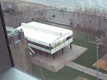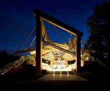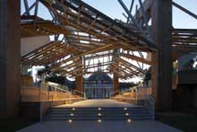 TEMPORADA DE PAVILHÕES: LONDRES, VERÃO 2008INÊS MOREIRA2008-08-11Diversos pavilhões foram montados na cidade de Londres desde o inicio de 2008. Temporários ou itinerantes, concebidos por arquitectos, artistas e designers, apresentados isoladamente no espaço público, ou montados como peças em exposição, ou ainda como encomenda programática, os pavilhões de Londres são estruturas espectaculares expostas e visitáveis que oferecem uma experiência espacial de “vanguarda”. É pois oportuno elencar e pensar este itinerário. Destacam-se o Serpentine Gallery Pavillion, uma peça desconstrutivista de Frank Gehry; a exibição da casa pré-fabricada modernista Maison Tropicale, de Jean Prouvé na Tate Modern; e o pavilhão lúdico-utópico Observatory, Air-Port-City, uma re-interpretação das arquitecturas visionárias dos anos 60 pelo artista Tomas Saraceno, montado na Hayward Gallery na exposição Psycho Buildings. E o que é um pavilhão? Usualmente com dimensões físicas reduzidas e tempo de utilização curto, projectam uma outra dimensão temporal e experiencial, o pavilhão é um espaço-tempo de excepção, uma fuga da realidade, uma para-arquitectura. Os pavilhões condensam no tempo a concepção, a construção e a duração da sua visita e existência. Proporcionam experiências físicas e sensoriais intensas aos visitantes: seja visual, acústica, térmica ou climatérica, existindo uma atmosfera de intimidade e de descoberta na visita a um pavilhão. Usualmente peças únicas, com linguagem autoral, não têm programas complexos e desenvolvem temas como a protecção interior, a luz/sombra, a relação com o ar livre, o percurso de ligação ao exterior, explorando a experiência da visita e a fisicalidade do visitante. A sua particularidade lúdica e semi-pública difere de outras pequenas construções, como a cabana de abrigo ou o módulo residencial replicável. A questão sensorial e simbólica é extremada, e a responsabilidade social de um pavilhão muito reduzida. Podem ser pavilhões de jardim, pavilhões de chá, pavilhões de exposição ou de feira, descomprometidos e vocacionados para a dimensão lúdica ora explorados como “laboratório de experimentação” espacial ou de soluções técnicas; ora são ensaios simbólicos, ora são ainda oportunidade de início de carreira ou reconstruídos como memorial de consagração da própria obra, como no caso do pavilhão de Barcelona de Mies van der Rohe, ou ainda um reaparecimento celebratório, como o Cabanon de Le Corbusier reproduzido pela Cassina. Os pavilhões que se sucedem, em Londres, com proveniências distintas, foram apresentados seguindo a tradição francesa das “folie” e das “maisons de plaisance”, construções de veraneio construídas nos séc. XVII a XIX pela burguesia para diversos encontros e prazeres nos jardins, como entretenimento, com algum exotismo e discrição. O novo: pavilhão de Verão A cidade semi-esvaziada de actividades, dá lugar às massas de turistas que chegam e consomem a programação de actividades que museus e galerias preparam para um público flutuante e pouco especializado. Uma das pequenas excepções de programação de eventos ocorre na Serpentine Gallery: a inauguração mais aguardada do Verão, o novo pavilhão da Serpentine Gallery criado por Frank Gehry com Arup no programa de encomendas a arquitectos iniciada em 2000. O mais famoso pavilhão de Londres celebra o Verão no exterior, na tradição de parques e jardins públicos, aproveitando o período de tempo em que o sol brilha e as noites são amenas. O pavilhão da Serpentine é sempre mais que um pequeno edifício: incorpora a expectativa da sua selecção e construção, e estende-se pelo programa de eventos nocturnos que alberga. A encomenda deste pavilhão é breve: o pavilhão é uma encomenda-consagração, um reconhecimento pela carreira de uma estrela internacional da arquitectura que até à data do convite não tenha construído no Reino Unido. É concedida a oportunidade de construir com grande visibilidade e meios cada vez maiores, um pequeno pavilhão temporário usufruindo da centralidade dos Kensigton Gardens. O programa é também simples: sombra, estadia, cafetaria e fruição do parque durante o dia; palco de eventos durante a noite. O pavilhão é um espaço público aberto e gratuito durante o dia, as suas noites são programadas por Hans Ulrich Obrist, num ciclo de eventos denominado Park Nights, culminando numa maratona em Outubro. É um pavilhão-evento. Em 2008, o primeiro projecto de Frank Gehry em Inglaterra oferece uma sombra e duas bancadas laterais para repouso. A sombra é criada por uma topografia de vidros gravados, suspensos por estruturas metálicas em quatro pilares de madeira gigantes (1x1m de base), que se entrecruzam num sistema de vigas cobrindo as bancadas. No centro um amplo corredor deixa uma praça para eventos nocturnos. A linguagem do pavilhão é indubitavelmente Gehry compondo com matérias naturais: uma complexa amálgama de vidro, madeira e sub-estruturas de metal fazem elevar e suspender a cobertura sobre o solo. Não existem formas sensuais, curvas ou concavidades, apenas planos secos e quebrados, com metais espetados conformando os planos interceptados. O conjunto assemelha-se a uma obra por terminar, e as representações da obra performam o edifício. A expressividade e a escala do pavilhão sobrepõem-se à galeria-mãe tomando todo o protagonismo. A exuberância das formas e o volume dos materiais empregues é desmedido relativamente ao espaço útil que oferece, assemelhando-se a uma grande montanha de materiais empilhados no parque. Gehry refere no desenho das estruturas de madeira dos seus pilares a influência formal dos desenhos da estrutura de uma catapulta de Leonardo da Vinci. Para a cobertura, cita um bando de borboletas. Contudo, parece ter sido o potencial destruidor dos mecanismos da catapulta que se plasmou na cobertura