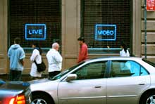 NOVA IORQUE: ART IN GENERALPEDRO DOS REIS2008-11-08CARLA HERRERA-PRATS – Prep Materials 27 SET – 13 DEZ 2008 >>A burocracia técnica, enquanto geradora de igualdade São raros os trabalhos que nos fazem reflectir sobre a verdadeira essência daquilo que chamamos democracia, ou de pensarmos até o que significaria não vivermos dentro dessa forma de organização polÃtica. Herrera-Prats dá a conhecer neste seu trabalho, a origem dos SAT – os testes que são o pesadelos de todos os norte-americanos que desejam entrar na vida universitária. A artista baseou o seu trabalho na investigação dentro dos arquivos das empresas que se destacaram no desenvolvimento do SAT, tais como a IBM, ETS (Educational Test Service) e o Measurement Research Center. A exposição é assim composta por várias fotografias, um desenho, uma projecção e uma brochura, com ilustrações feitas por si e baseadas em muitas das fotografias, que estão presentes no espaço expositivo. As fotografias seleccionadas dão uma visão cronológica do sistema, com detalhes subtis; variando entre a monumentalidade dos primeiros protótipos – quando um bom computador ou sistema de informação tinha obrigatoriamente de ocupar uma sala ou um edifÃcio; a uma ideia de que o sistema iria ser a solução para acabar com a descriminação sexual - mostrando várias imagens (quase como propaganda), em que a mulher ou usa ou faz mesmo parte do sistema de avaliação(como operadora); ou ainda a imagens que mostram alguns elementos do sistema, que hoje podemos considerar obsoletos, dadas as dimensões e o tipo de componentes utilizados (imagens de peças mais mecânicas, do que electrónicas e ainda com amplificadores a válvulas). Existe ainda um desenho na parede, que lembra que a investigação no desevolvimento do SAT deu tambem origem a outros progressos técnicos, como os sistemas de voto electrónico (trazendo à memoria os vários problemas que ocorreram com este equipamento, durante as últimas eleições presidenciais americanas) ou equipamento de digitalização de documentos (scanners). Herrera-Prats mostra ainda vários slides que vão sendo projectados e que contêm amostras de testes, que criativamente revelam mensagens subliminares (feitos a partir de selecções fictÃcias nos boletins dos testes). Apesar do esforço impressionante em meios técnicos, cientÃficos e humanos na criação e manutenção deste sistema, a artista desvela o carácter obsoleto do mesmo sistema pondo em causa a validade deste na manutenção dos princÃpios democraticos de educação e igualdade. CARLOS MOTTA – The Good Life 27 SET – 15 DEZ 2008 >>A subjectividade organizada, enquanto ferramenta crÃtica Passando quase despercebido, o trabalho de Carlos Motta na Art In General esconde-se por detras de um terminal de computador. Uma presença discreta, que contrasta com a riqueza de informação e do conceito por detrás do seu projecto. Interessado em escutar e dar voz à s opiniões pessoais de cidadãos anónimos, Motta entrevistou, entre 2005 e 2008, vários habitantes de cidades de paÃses da América Latina, de forma a entender as suas percepções sobre a influência dos EUA nos processos de democratização latino-americanos. Motta usa assim um processo de trabalho que se cruza entre o jornalismo directo, e os trabalhos do documentarista e o do sociólogo. As perguntas são dirigidas de forma directa aos seus entrevistados estando registadas, seguindo um métodologia cientÃfica. A interface web justifica-se então, pela grande facilidade de acesso a esta informação: as vÃdeo-entrevistas não estão classificadas - demonstrando que não quer influenciar a leitura do seu trabalho. Assim, Motta oferece a possibilidade de selecção das entrevistas, de acordo com escalões de idades, cidade/paÃs de origem e ocupação. Este tipo de selecção é importante, também para que o espectador entenda os diferentes pontos de vista, dependentes do nÃvel de educação e idade e não assista a uma visão unilateral, de geração ou escalão social. Ao mesmo tempo Motta revela uma preocupação que parece ir para além das perguntas que realizou. Prende-se sobretudo com a situação polÃtico-económica – normalmente bastante débil, normalmente traduzida pelo eufemismo de Terceiro-Mundo e que se revela através da pobreza, baixas taxas de escolaridade, emprego, protecção social e dependência desses paÃses face à ajuda exerna (sobretudo dos EUA). As origens são sobretudo de raÃz neo-colonialista, mas Motta acaba por direccionar a questão para as razões do insucesso das tentativas de democratização nesse conjunto de paÃses, durante o perÃodo da Guerra Fria, em que os EUA apoiaram muitos golpes de estado e ditaduras, que serviam melhor os seus interesses na região, na altura. O trabalho torna-se assim numa ferramenta polÃtico-social crÃtica, que organiza um discurso colectivo assente na subjectividade das respostas de cada um dos seus interlocutores; apelando, por outro lado, à necessidade de questionar a situação desses paÃses, pelas vozes da sua população anónima. O trabalho encontra-se disponÃvel, na sua totalidade, em: www.la-buena-vida.info JAN BARACZ – Reality Cinema/Live Video 27 SET – 13 DEZ 2008 >>O filme chamado quotidiano A sala poderia ser a de um pequeno auditório com cadeiras confortáveis. Apetece estar. Na tela passam imagens familiares – bastante familiares. Já estive nesta tela. Provavelmente, quando me dirigi ao espaço desta sala. Numa atitude “voyeuristaâ€, Jan Baracz retira-nos do quotidiano instalando-nos confortavelmente num cenário intimista, para de seguida nos voltar a colocar em contacto com esse mesmo quotidiano, desta vez reprocessado. As questões começam a surgir, quando nos apercebemos que fora do espaço da loja, onde criou a instalação, outras câmeras, em outros edifÃcios, estão dirigidas aos transeuntes – que passam sem se aperceber que estão a ser 