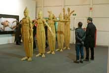 ARTE LISBOA 08 - SEM TERRAMOTOSÍLVIA GUERRA2008-11-25A minha chegada à ARTE LISBOA deste ano foi mais tardia, dois dias após a sua inauguração, e com um debate para moderar sobre as feiras de arte e a sua actualidade mundial. As novidades este ano são o aumento dos metros quadrados dedicados aos Project Rooms e Paco Barragán sucede a Isabel Carlos no comissariado de um espaço único horizontal, que faz eco à sua dedicação à pintura expandida. “Painting and other Stories...”, apresentava trabalhos de dez artistas: Rui Macedo, Rodrigo Oliveira, Toño Barreiro, Lidia Benavides, Chus García-Fraile, Sara & André, Fabrizio Matos, Inês Botelho, Ruth Root, Steve Schepens. Noto que a cenografia de exposição da ARTE LISBOA tem melhorado ano após ano. Fico agradavelmente surpreendida pelo novo espaço do bar, um espaço branco e recolhido com um belo design muito diferente do sombrio café do último ano, que parecia um bar de estação em dias de chuva. Encontro-me com os convidados nesse local e estamos de acordo para trocar ideias sem discursos institucionais. Considerado o número 25, no ranking mundial dos 100 mais poderosos no meio artístico de 2008 (pela revista britânica Art Review), Matthew Slotover aceita o desafio que lhe lanço e discute com Jennifer Flay da FIAC outras realidades artísticas nas feiras de arte. Paco Barragán defende as especificidades das feiras pequenas e descentradas mundialmente juntamente com Magda Danisz da Show Off de Paris. Todos discutem cenários possíveis para os próximos anos em que parece ter desaparecido a famosa “mão invisível” de Adam Smith. O que mantém vivas as feiras de arte? As feiras de arte enquanto locais de encontro e de trocas económicas e sociais; espaços de discussão do estado da arte, da sociedade e da economia. Continuo a defender que é também nestas imensas tendas de comércio artístico que encontramos alguns dos sintomas do tempo. Como o século passado nos legou a proliferação de objectos artísticos que irrompem de stand em stand, seja nas ricas feiras de Basileia ou na FIAC de Paris, neste fluxo que percorremos sem itinerário fixo, vendo e perdendo muitas obras, somos capazes de encontrar as marcas do contemporâneo pois “só se pode dizer contemporâneo aquele que não se deixa cegar pelas luzes do seu tempo e consegue vislumbrar nelas a parte de sombra, a sua sombria intimidade... como algo que lhe diz respeito e que não deixa de o interpelar, algo que mais do que qualquer luz, está directamente e singularmente virado para ele. Contemporâneo é aquele que recebe, em pleno rosto, o feixe de trevas que nascem com o seu tempo”. Esta citação de Giorgio Agamben ( em “Qu’ est-ce que le contemporain?”), define o que se procura também na arte contemporânea. E é por vezes no meio da confusão de uma feira e da sua oferta superlativa de obras que encontramos essas trevas. Nem sempre é fácil... Este ano e consultando as estatísticas com a sempre activa directora da feira, Ivânia Gallo, constatei que houve uma subida do número de visitantes apesar do receio inicial. Falando com galeristas da Módulo, da 111, da Sicart de Barcelona, soube que as vendas se mantiveram apesar do ritmo ter sido mais cauteloso. A palavra de ordem foi: lentamente. Os coleccionadores espanhóis continuaram a apreciar o programa que lhes foi dedicado e lhes permitiu ver o que se passava pelas instituições artísticas lisboetas. Num fim-de-semana de sol, com um pueril simulacro de terramoto que impedia a circulação nalgumas artérias da cidade, o Parque das Nações foi um destino para muitos visitantes nacionais e estrangeiros. Encontro com grande espanto a cineasta Agnès Vardà na exposição de Isaac Julien no Museu do Chiado, e talvez também se tenha passeado pela feira. E o que se podia ver na ARTE LISBOA: Três galerias coreanas, com peças cheias de glitters, que como diria Paco Barragán no livro que apresentou na ARTE LISBOA, “La era de la ferias”, oferecem um “mito de exotismo” aos coleccionadores. A Muvart, associação de artistas moçambicanos, também se encontra representada e como novidade visível pelo cuidado na apresentação do stand esteve a espanhola Heinrich Ehrhardt. E o que encontro na minha visita? As obras de Daniel Melim na Galeria Módulo que ressaltam pela técnica utilizada e por uma reinterpretação da iconografia medieval das iluminuras e seus soldados; também o artista Jarbas Lopes representado pela Baginski, que revisita este espaço de iluminura surreal onde frigoríficos navegam pelo espaço da Curimba ou seja do cântico religioso do Brasil. Nestes dois artistas encontramos um pouco destas trevas contemporâneas e note-se que a religião é o tema de exposições e ensaios neste final de 2008. Depois vejo as novas pinturas, em comunhão americana, de Hugo Canoilas na Quadrado Azul e o navio vermelho de Miguel Palma na Baginski. João Pedro Vale continua a reflectir as questões que eternizam a cultura portuguesa, apresentando “O Encoberto” (2008), uma instalação luminosa com luzinhas de natal. A feira na sua globalidade esteve melhor do que a do ano anterior e continuando a afirmar o seu território ibérico aumenta o espaço lusófono dos participantes. Uma feira atlântica que começa a discutir com o resto do mundo. Sílvia Guerra |