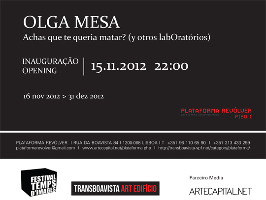 LabOratorio/labOfilm é um projecto de oficinas coreográficas gerador de instalações evolutivas (dípticos audiovisuais iniciado em 2011por Olga Mesa. Nesta dupla projecção poderemos ver dois pontos de vista, de uma única cena. Rostos e corpos de mulheres de várias idades encontram-se, escondem-se, ocultam-se, olham-se, tocam-se e confundem-se num labirinto imaginário de ressonâncias espaciais e evocações. O som, recôndito multiplica e impõe os espaços. A coreógrafa propõe a encenação do corpo Operador* numa rodagem. Num espaço labiríntico cheio de “fora de campo”, o corpo, a camara, o movimento, o som e a voz, traduzem a relação do ser com o mundo, com a realidade e a ficção, com o visível e invisível, com a memória individual e colectiva. Este corpo Operador* não hierarquizado constrói a sua identidade abandonado uma experiencia de relevo e intercambio dentro do grupo, onde observar e ser observado será tão importante como acionar; e onde o outro será o lugar a partir do qual se irá construir uma memória comum. *corpo Operador: corpo-olho que captura os seus impulsos e decisões num diálogo com a camara. Corpo que interpreta e realiza simultaneamente a montagem de uma sequência cinematográfica em tempo real, ou em diferido. Corpo num campo de batalha. É o ponto de contacto, e muitas vezes de choque entre o visível e o (in)visível, entre a ficção, o real e o imaginário. Em parceria com: Temps d’Images